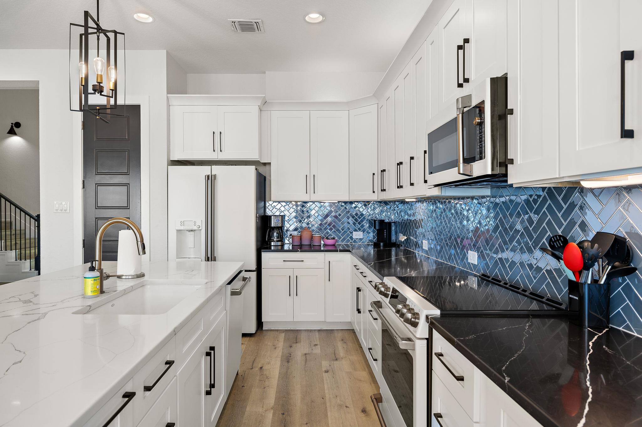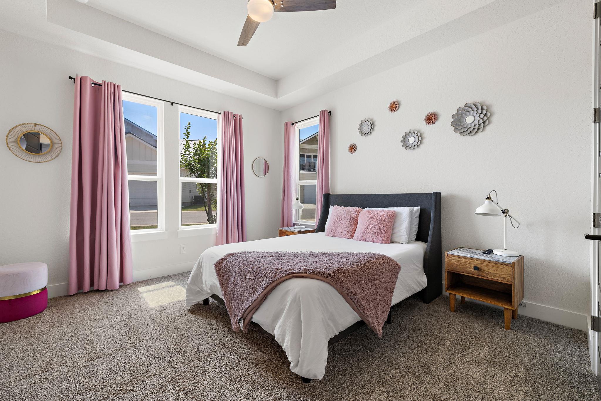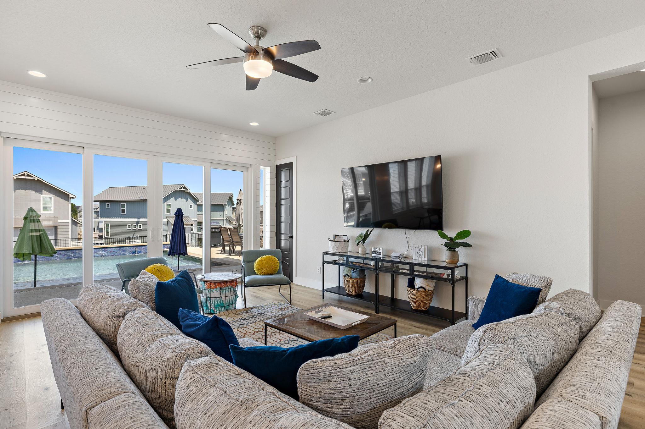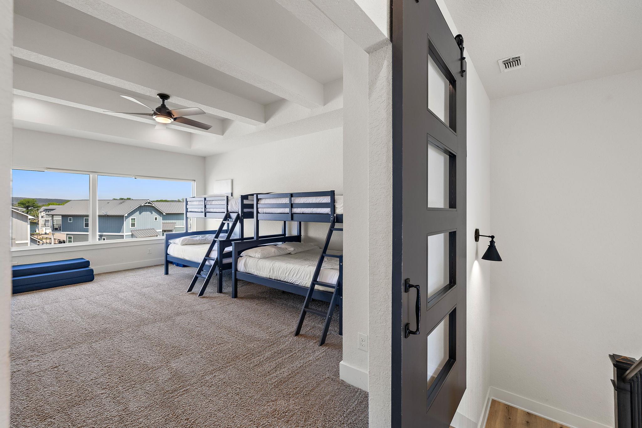 Located at 128 Village View DR, Kingsland, TX 78639 in the heart of Kingsland, this single family residence, which is currently used as successful short-term rental, is available for purchase with an option as fully decorated and furnished. Built in 2020, this residence presents an attractive opportunity in a desirable and gated residential area and is just one row of houses from lake LBJ. It offers modern living with a focus on comfort and style. The kitchen is designed for both culinary exploration and social gatherings, featuring a large kitchen island perfect for meal preparation or casual dining. With four bedrooms and four bathrooms, plus a two-car garage, this property offers space and comfort for a vibrant lifestyle. The primary bedroom offers a private retreat with an ensuite bathroom, creating a serene space for relaxation. The bathroom features a walk-in shower and double vanity, providing convenience and luxury for everyday living. The living room offers a relaxing place to unwind or entertain. There's a large upstairs game room with two bunkbeds, offering plenty of space. The spacious outdoor living area provides a private pool and outdoor dining, perfect for enjoying the Texas sunshine and creating lasting memories. The walk-in owner's closet offers ample storage. The community has a pool, pickleball, basketball, sand volleyball, and boat slips available for lease all within walking distance. This is a property ready for immediate enjoyment or continued rental success.