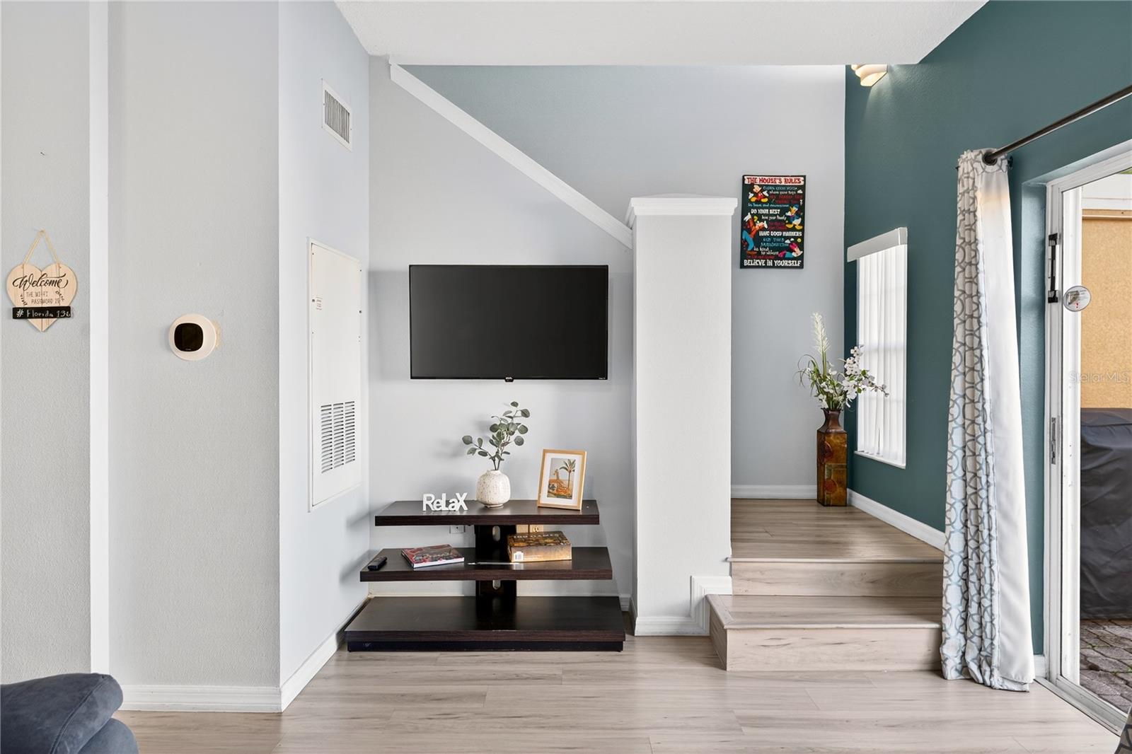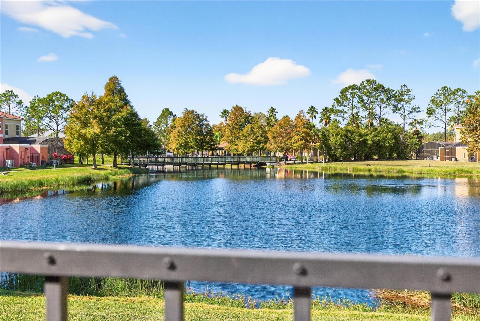 The bright and open living area flows effortlessly to the private outdoor patio—your tranquil retreat after busy days exploring the nearby theme parks with a beautiful water view from your hot tub. Whether enjoying morning coffee or relaxing under the Florida sky, this space offers the perfect blend of privacy and serenity.