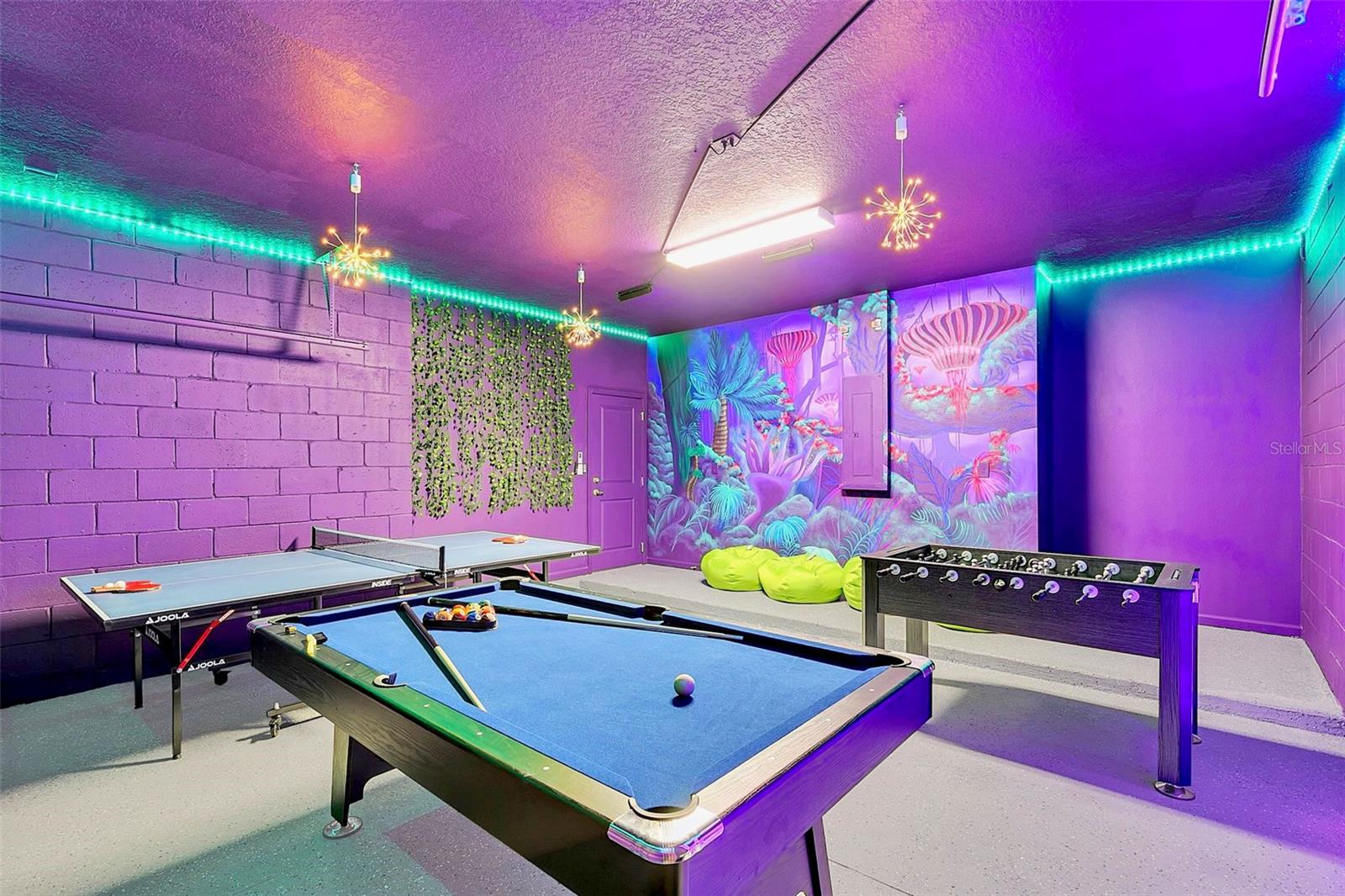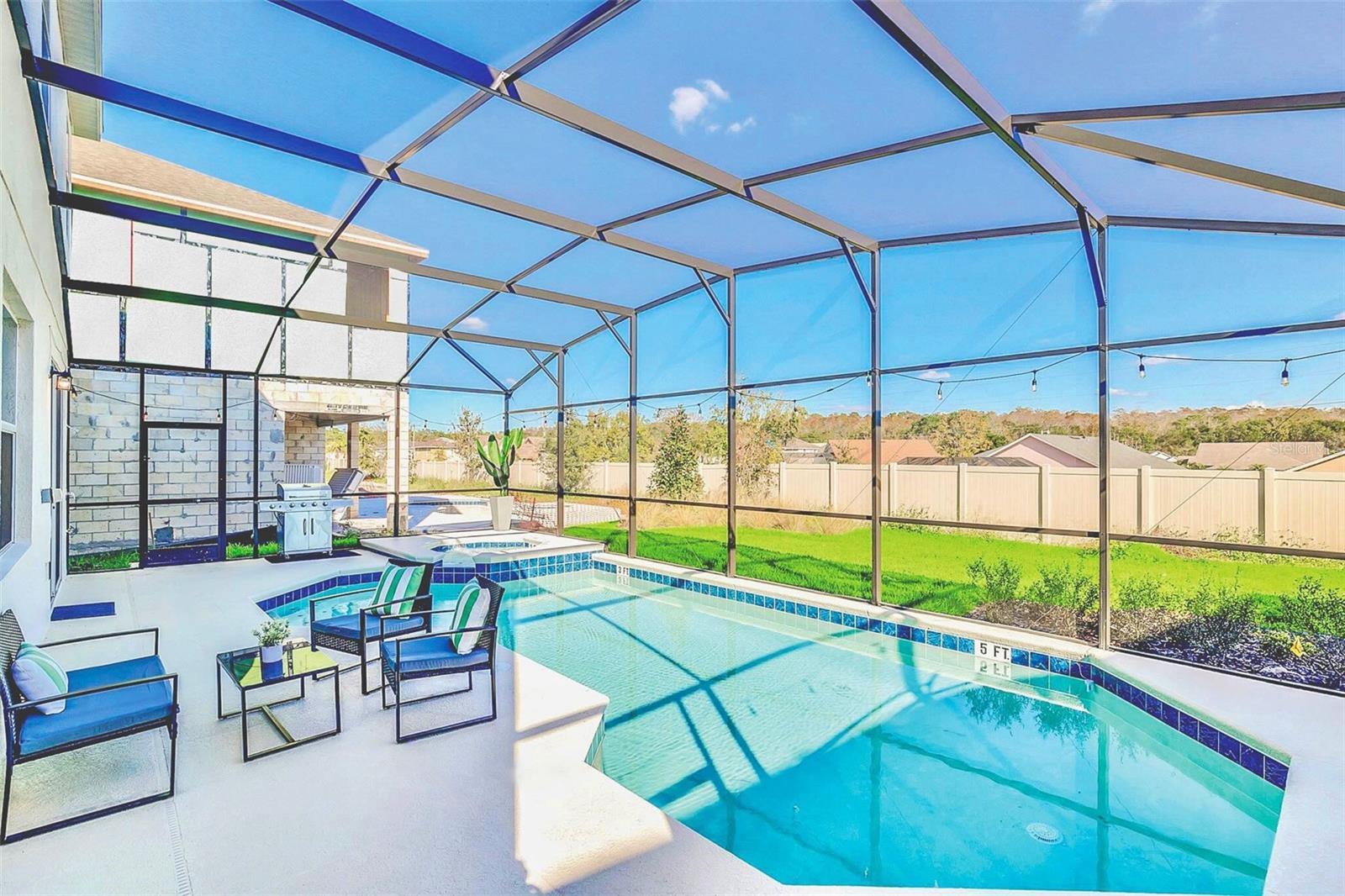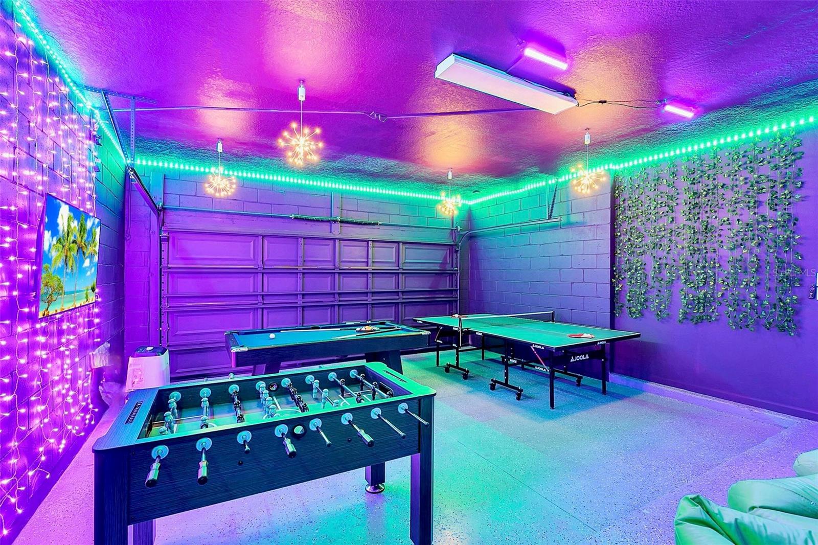 Step outside to the screened patio with a private pool—an inviting space to enjoy the Florida sun or a refreshing swim. The garage has been converted into a stylish game room, while two laundry areas (upstairs & downstairs) add extra convenience for larger groups.