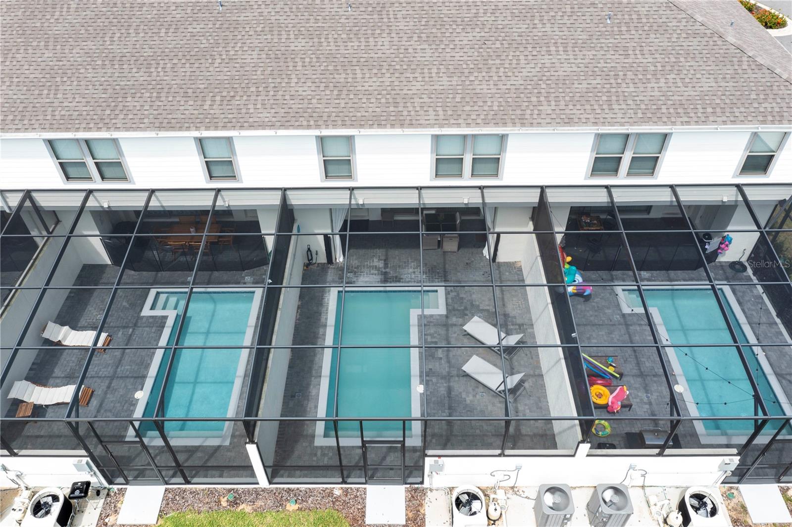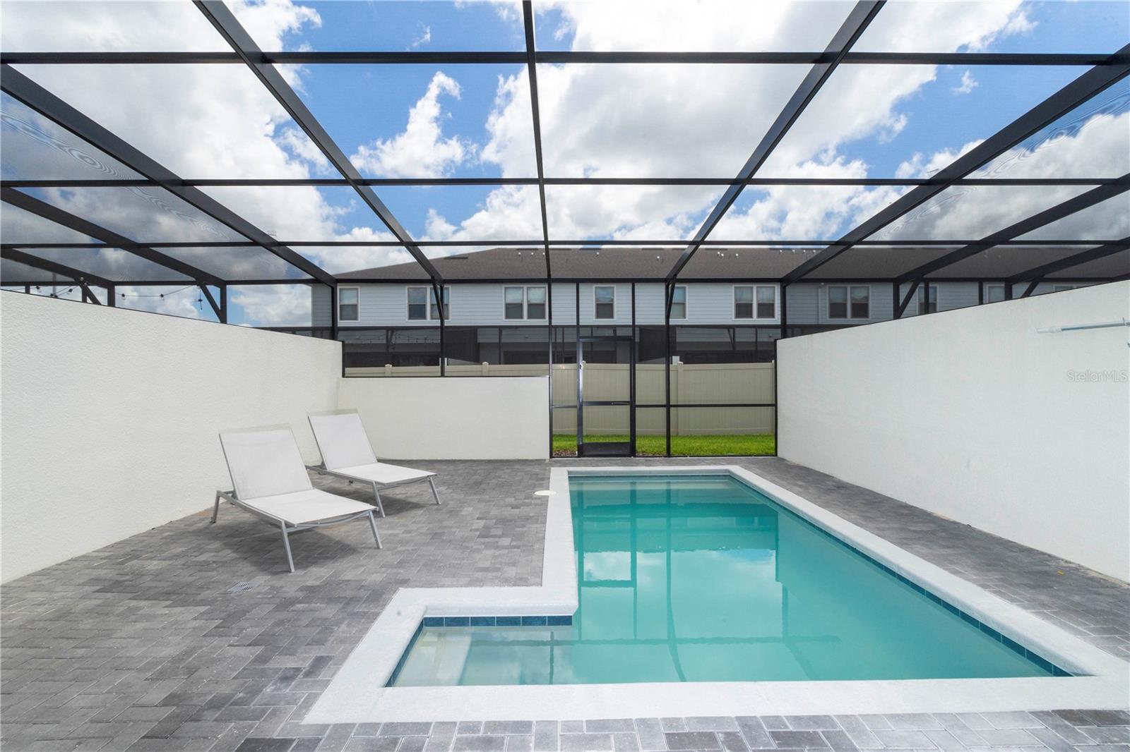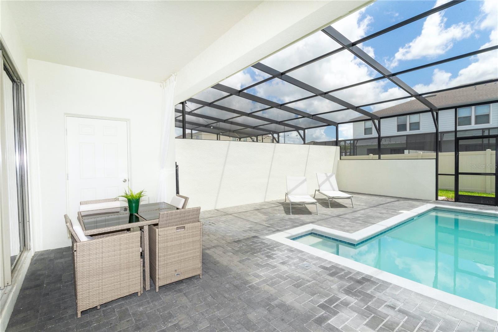 Each of the five generously sized bedrooms offers plush accommodations, with two en-suite baths for added privacy. The private splash pool and screened lanai create a tranquil outdoor space ideal for family fun or peaceful relaxation.