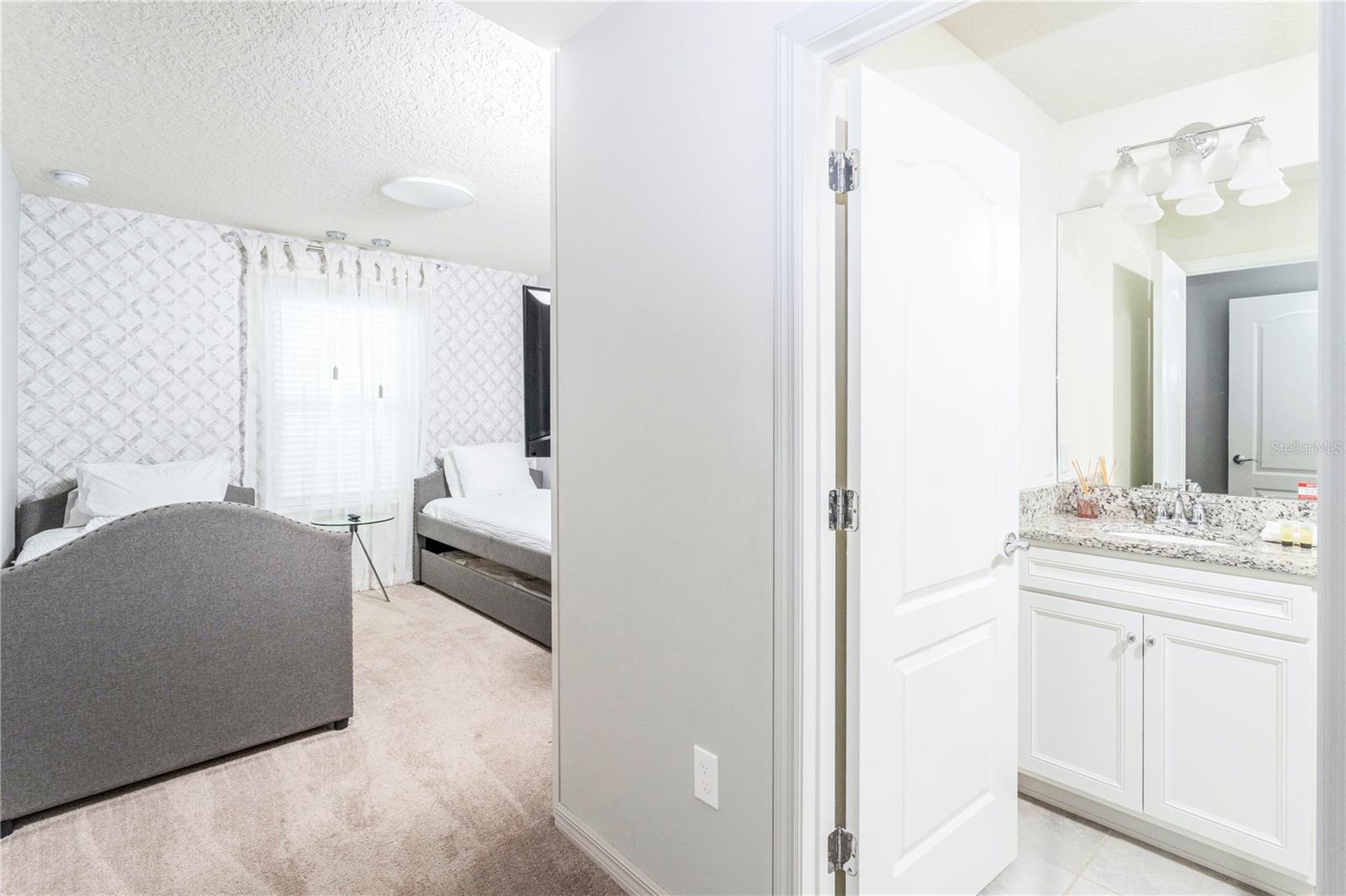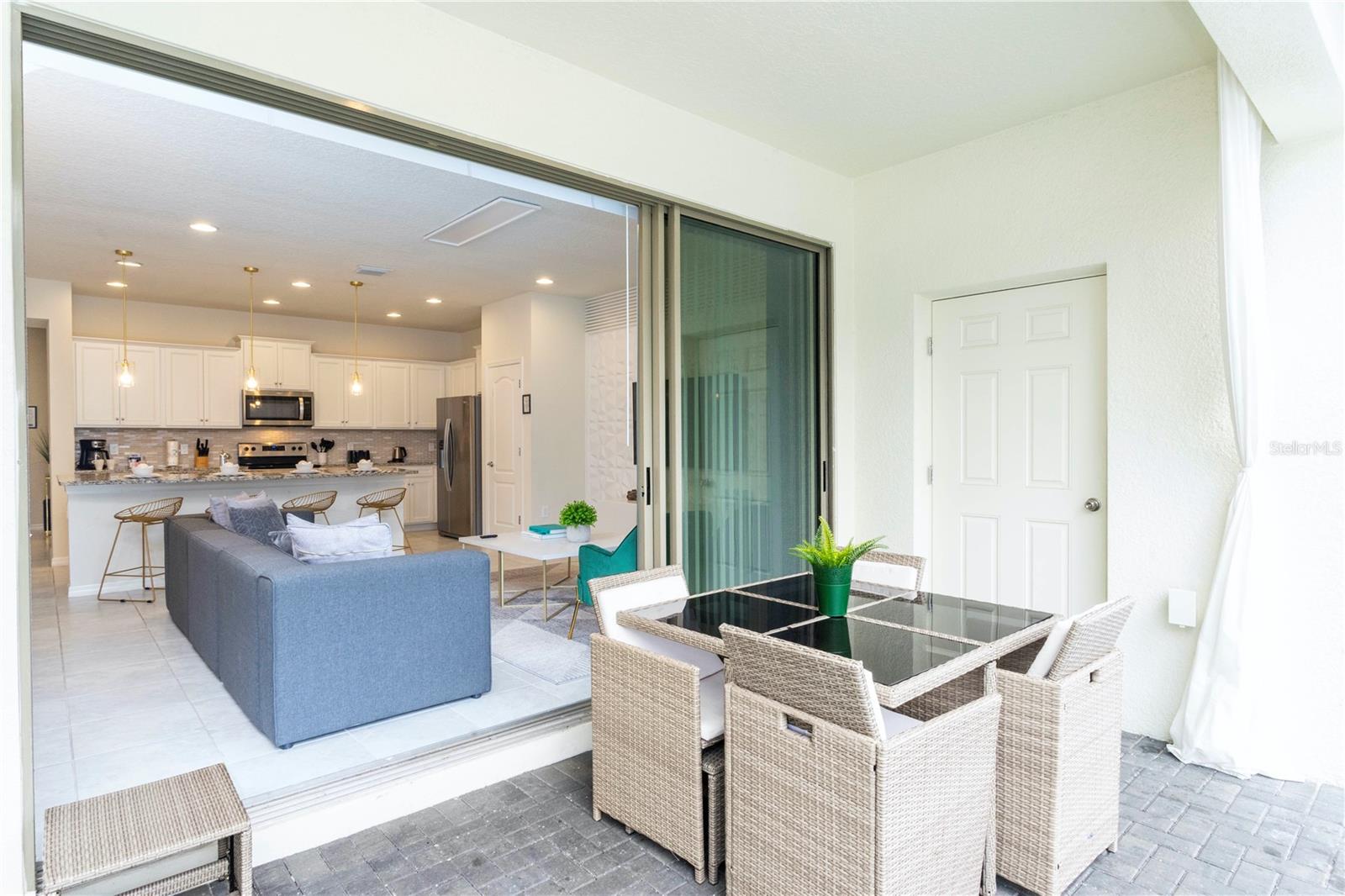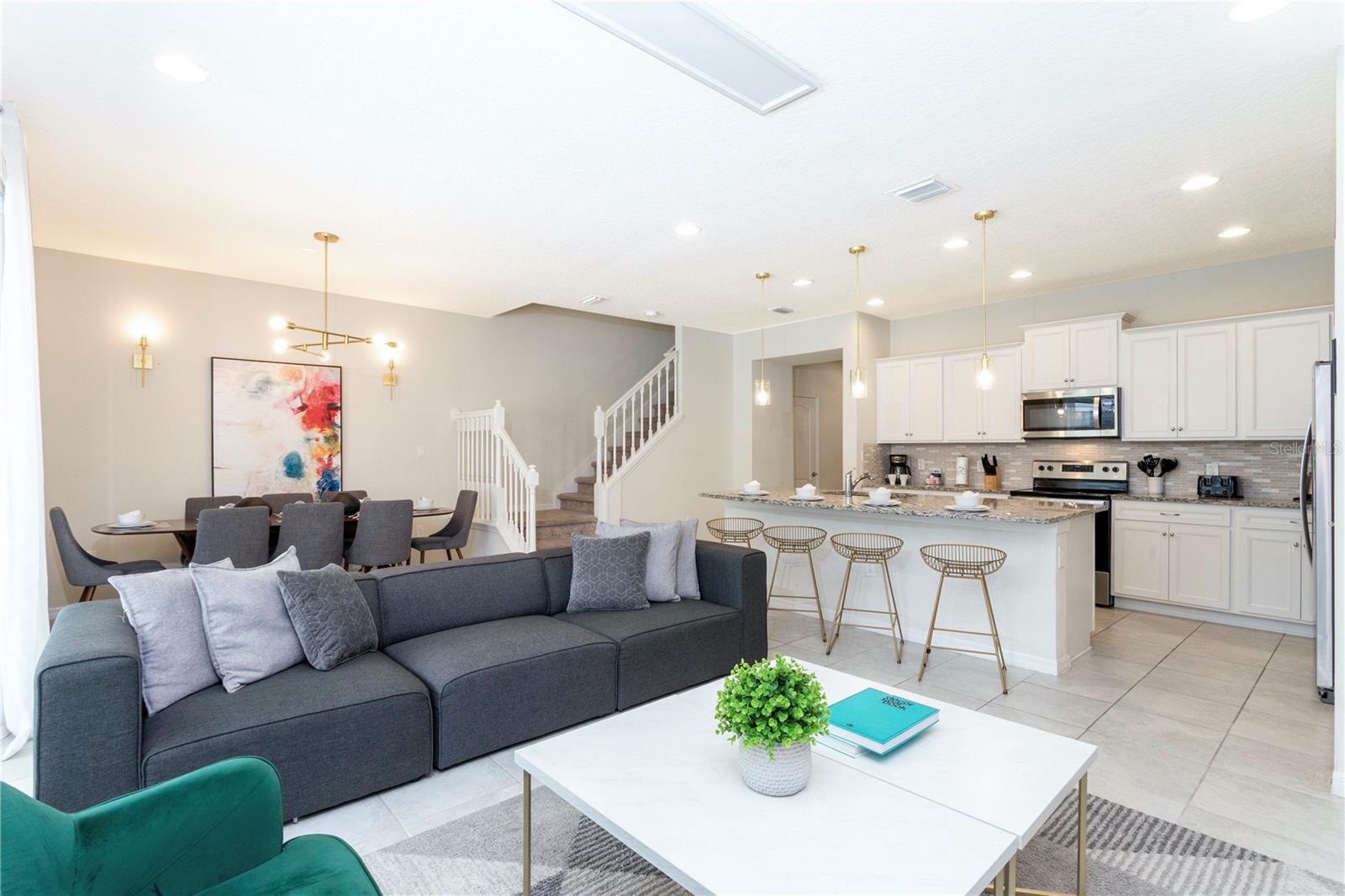 Offered fully furnished and turnkey-ready, this spacious home features a modern open-concept layout, stylish finishes, and thoughtful upgrades throughout. The gourmet kitchen boasts granite countertops, stainless steel appliances, and ample cabinetry, seamlessly connecting to the dining area and comfortable living room — perfect for entertaining or relaxing after a day at the parks.