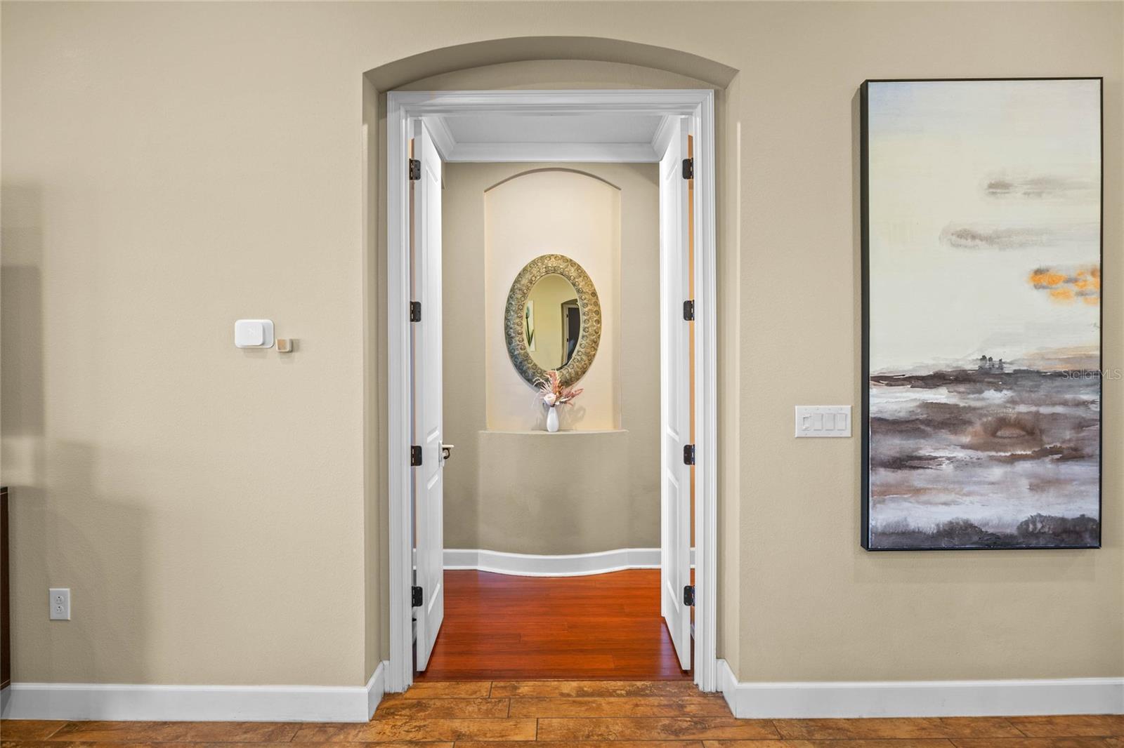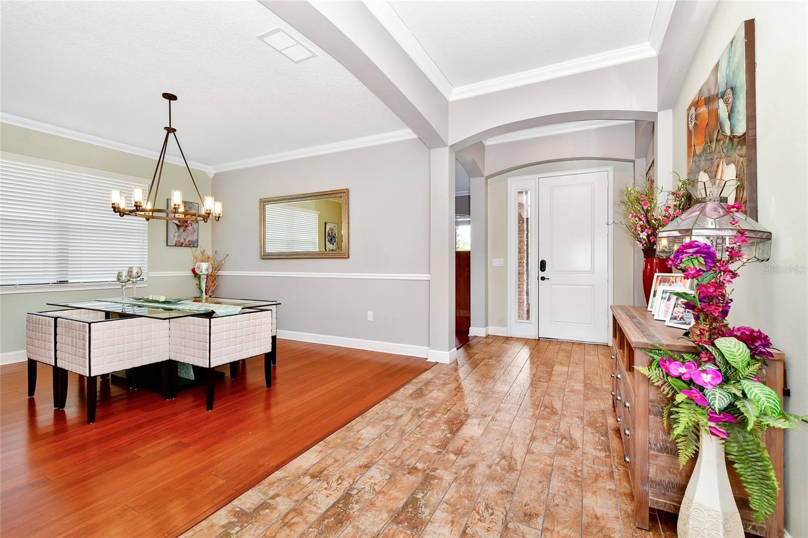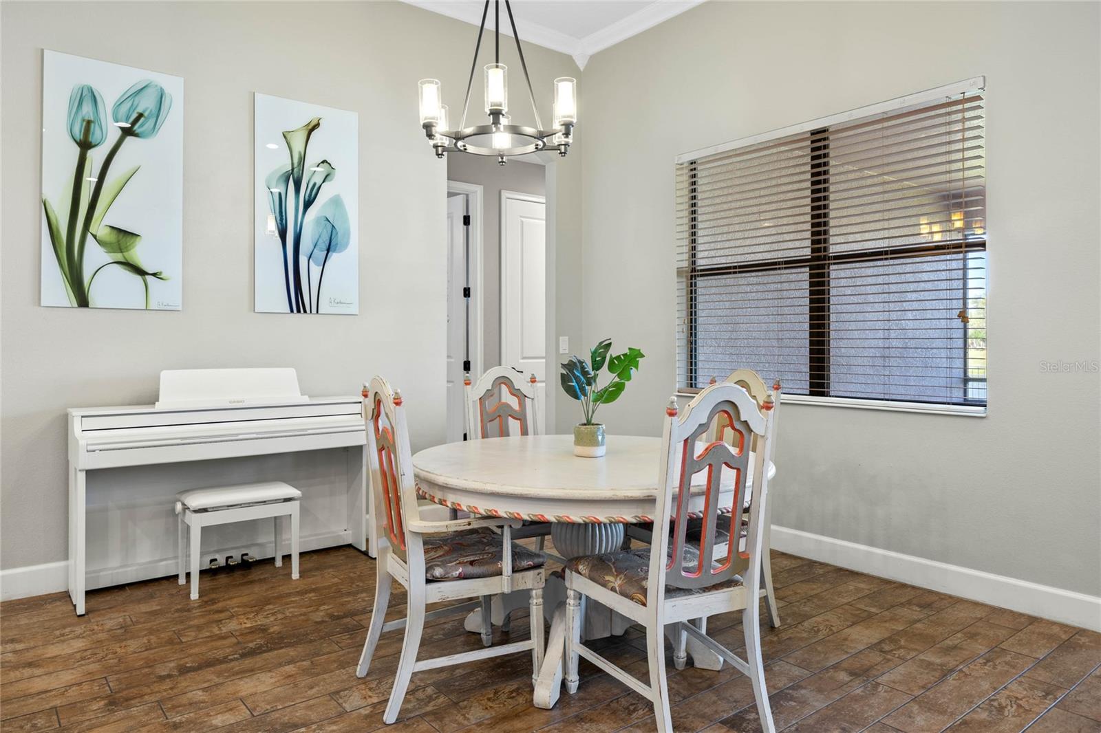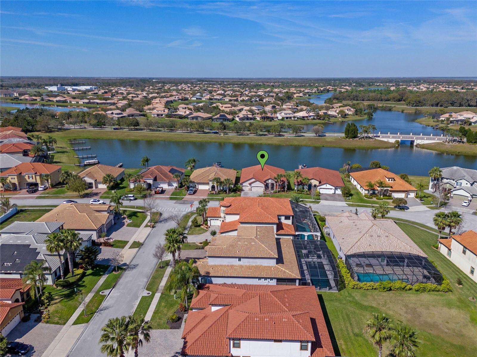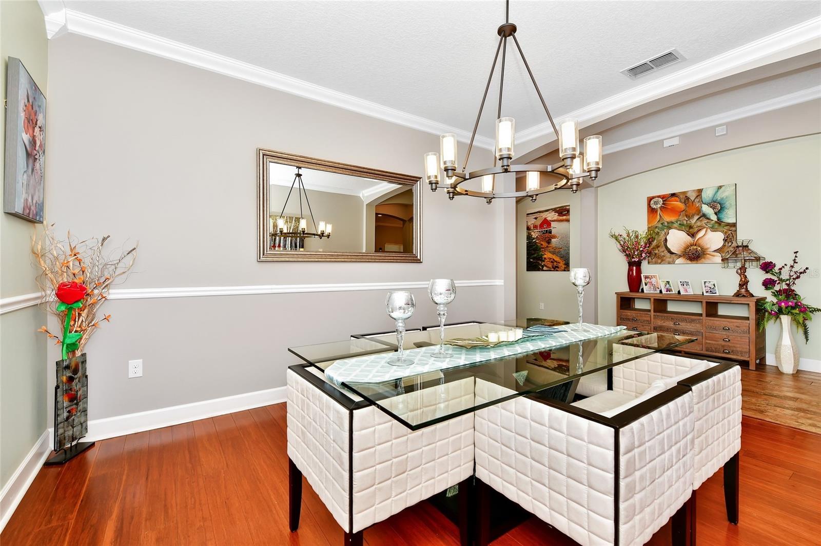 The gourmet kitchen is a chef’s dream, showcasing a huge center island with a cooktop, dual ovens, stainless steel appliances, and granite countertops. Enjoy casual meals in the eat-in kitchen space or host elegant gatherings in the formal dining room. The primary suite is a private retreat, featuring his and hers walk-in closets and direct access to the lanai through sliding doors. The owner’s bath is designed for luxury with an enormous walk-in shower, dual sinks, and ample storage. One of the guest bedrooms includes its own private en-suite bathroom, making it ideal for visitors or multi-generational living. A well-equipped laundry room with storage cabinets adds to the home’s convenience.