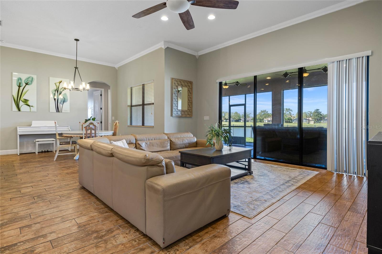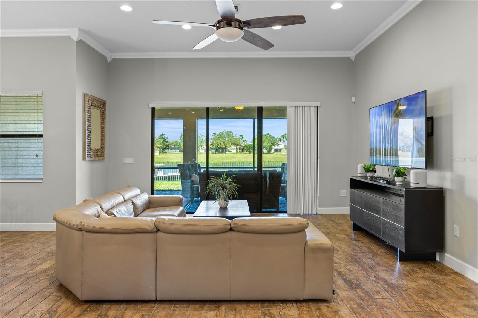 The spacious family room also features sliding doors leading to the screened-in lanai, where you’ll find ceiling fans and breathtaking views of the navigable canal—a gateway to Lake Tohopekaliga (Lake Toho), a fisherman’s paradise and home to the ESPN fishing tournament. The fenced backyard provides additional privacy and security, making it the perfect outdoor retreat.