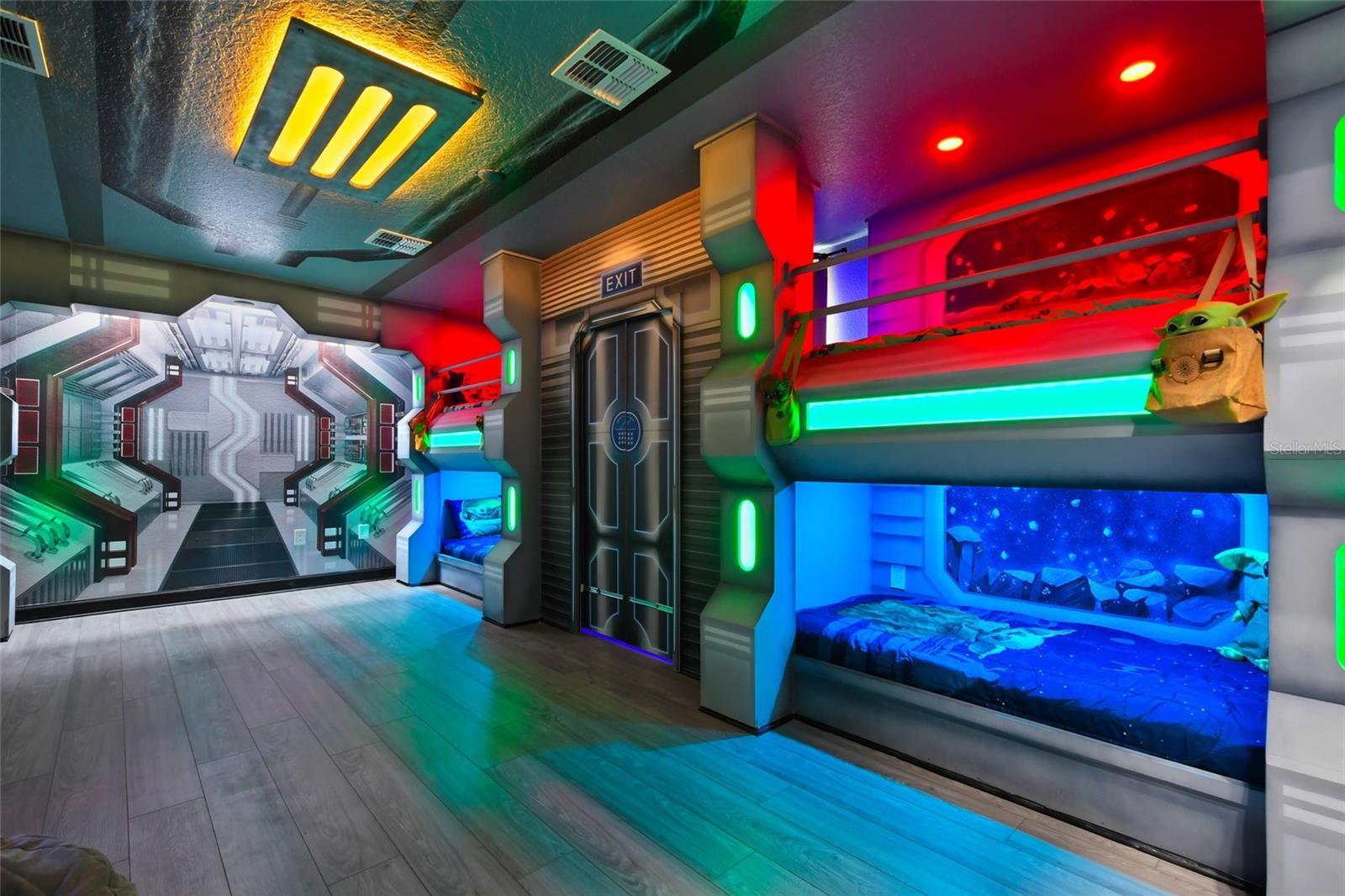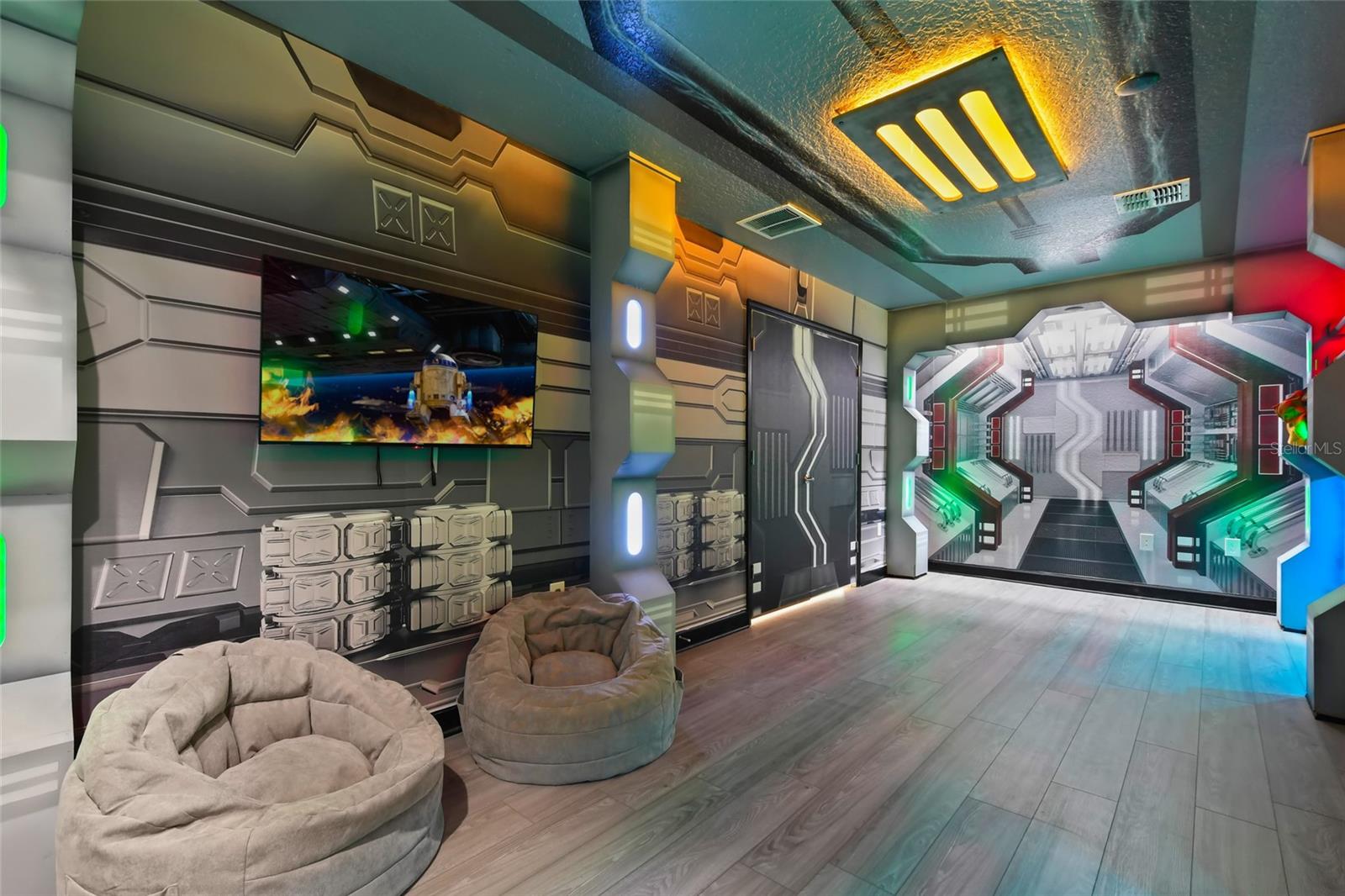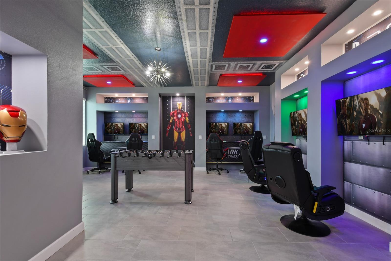 Welcome to this extraordinary 8-bedroom luxury home located in the highly sought-after Storey Lake Resort in Kissimmee. Fully furnished and professionally themed throughout, this residence delivers a true turnkey experience for vacation rental investors and families seeking an exceptional second home just minutes from Walt Disney World. The main floor centers around an expansive open-concept layout with a beautifully appointed living room, spacious dining area for large groups, and a gourmet kitchen featuring quartz countertops, stainless steel appliances, 42-inch cabinetry, and an oversized island with seating for six. One elegant king bedrooms are conveniently located on the first level, offering comfort and privacy for multi-generational groups. Sliding doors open to a private screened outdoor oasis complete with a heated pool, spa, covered patio, outdoor dining, and sun loungers — the perfect place to enjoy Florida living. The upper level elevates the guest experience with an impressive Avengers-style entertainment loft and multiple themed bedrooms thoughtfully designed to delight every age group, including Frozen, Star Wars, Harry Potter, Minecraft, and more. Additional king bedrooms and tastefully decorated suites ensure ample space and comfort for large parties. Every room boasts coordinated décor, premium bedding, and smart TVs. The home also features a full Avengers-themed game room equipped with pool table, air hockey, gaming area, and vibrant mural work. This residence has been meticulously maintained and curated to maximize guest enjoyment and convenience, offering a seamless transition for short-term rental use or immediate personal enjoyment. Storey Lake is one of Central Florida’s most desirable resort communities, offering gated access and world-class amenities including multiple pools, lazy river, water slides, splash park, fitness center, tiki bar, sports courts, and mini-golf. Ideally located minutes from Disney, Universal, shopping, dining, and major highways. A rare opportunity to acquire a fully turnkey 8-bedroom resort home in a premier community with outstanding rental appeal and no setup required.