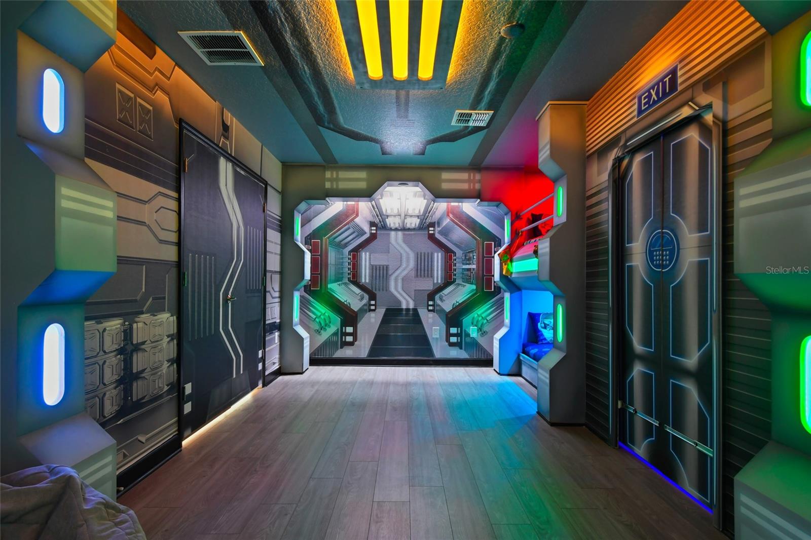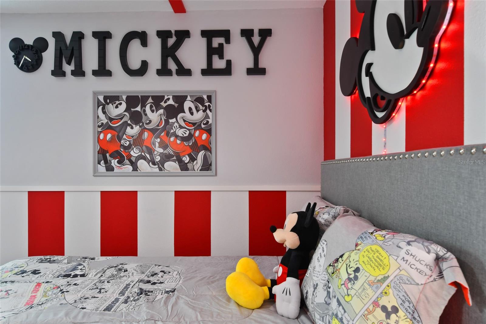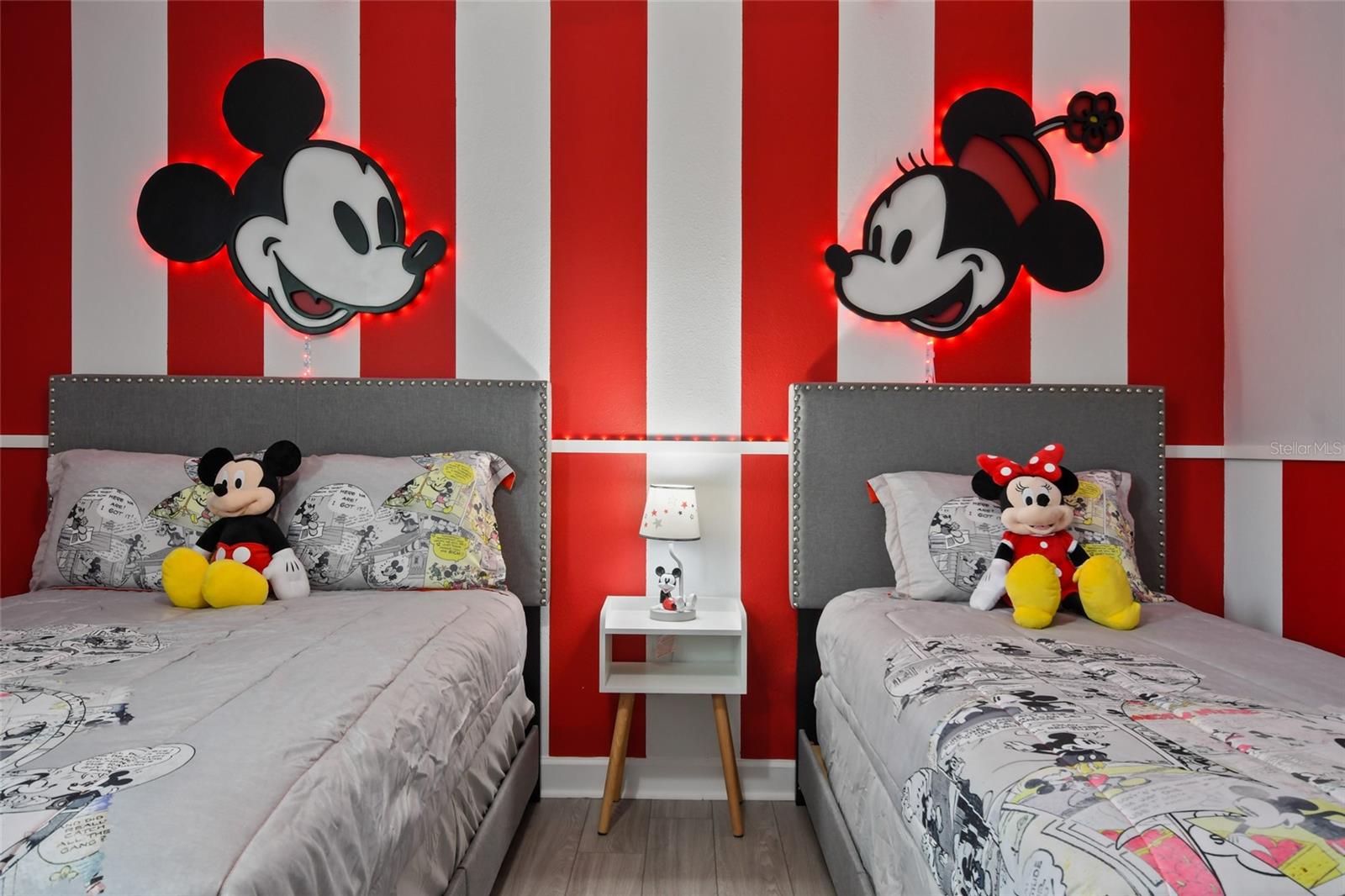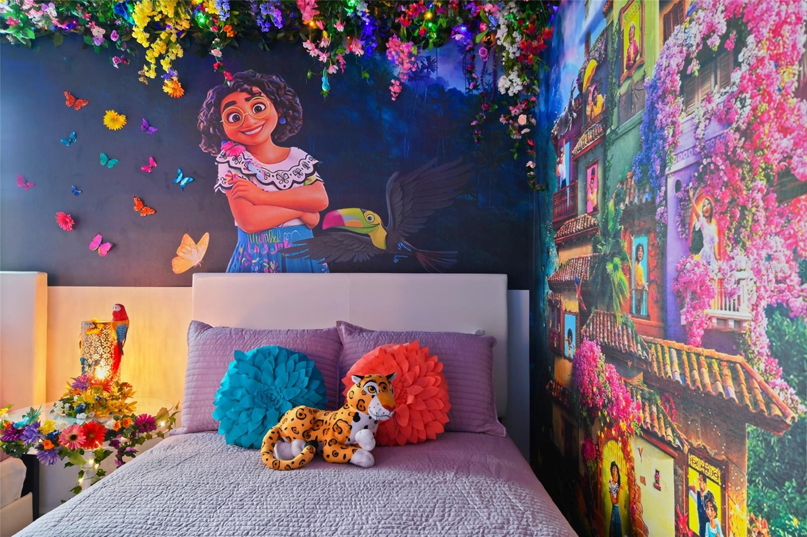 Welcome to this extraordinary 8-bedroom luxury home located in the highly sought-after Storey Lake Resort in Kissimmee. Fully furnished and professionally themed throughout, this residence delivers a true turnkey experience for vacation rental investors and families seeking an exceptional second home just minutes from Walt Disney World. The main floor centers around an expansive open-concept layout with a beautifully appointed living room, spacious dining area for large groups, and a gourmet kitchen featuring quartz countertops, stainless steel appliances, 42-inch cabinetry, and an oversized island with seating for six. One elegant king bedrooms are conveniently located on the first level, offering comfort and privacy for multi-generational groups. Sliding doors open to a private screened outdoor oasis complete with a heated pool, spa, covered patio, outdoor dining, and sun loungers — the perfect place to enjoy Florida living. The upper level elevates the guest experience with an impressive Avengers-style entertainment loft and multiple themed bedrooms thoughtfully designed to delight every age group, including Frozen, Star Wars, Harry Potter, Minecraft, and more. Additional king bedrooms and tastefully decorated suites ensure ample space and comfort for large parties. Every room boasts coordinated décor, premium bedding, and smart TVs. The home also features a full Avengers-themed game room equipped with pool table, air hockey, gaming area, and vibrant mural work. This residence has been meticulously maintained and curated to maximize guest enjoyment and convenience, offering a seamless transition for short-term rental use or immediate personal enjoyment. Storey Lake is one of Central Florida’s most desirable resort communities, offering gated access and world-class amenities including multiple pools, lazy river, water slides, splash park, fitness center, tiki bar, sports courts, and mini-golf. Ideally located minutes from Disney, Universal, shopping, dining, and major highways. A rare opportunity to acquire a fully turnkey 8-bedroom resort home in a premier community with outstanding rental appeal and no setup required.