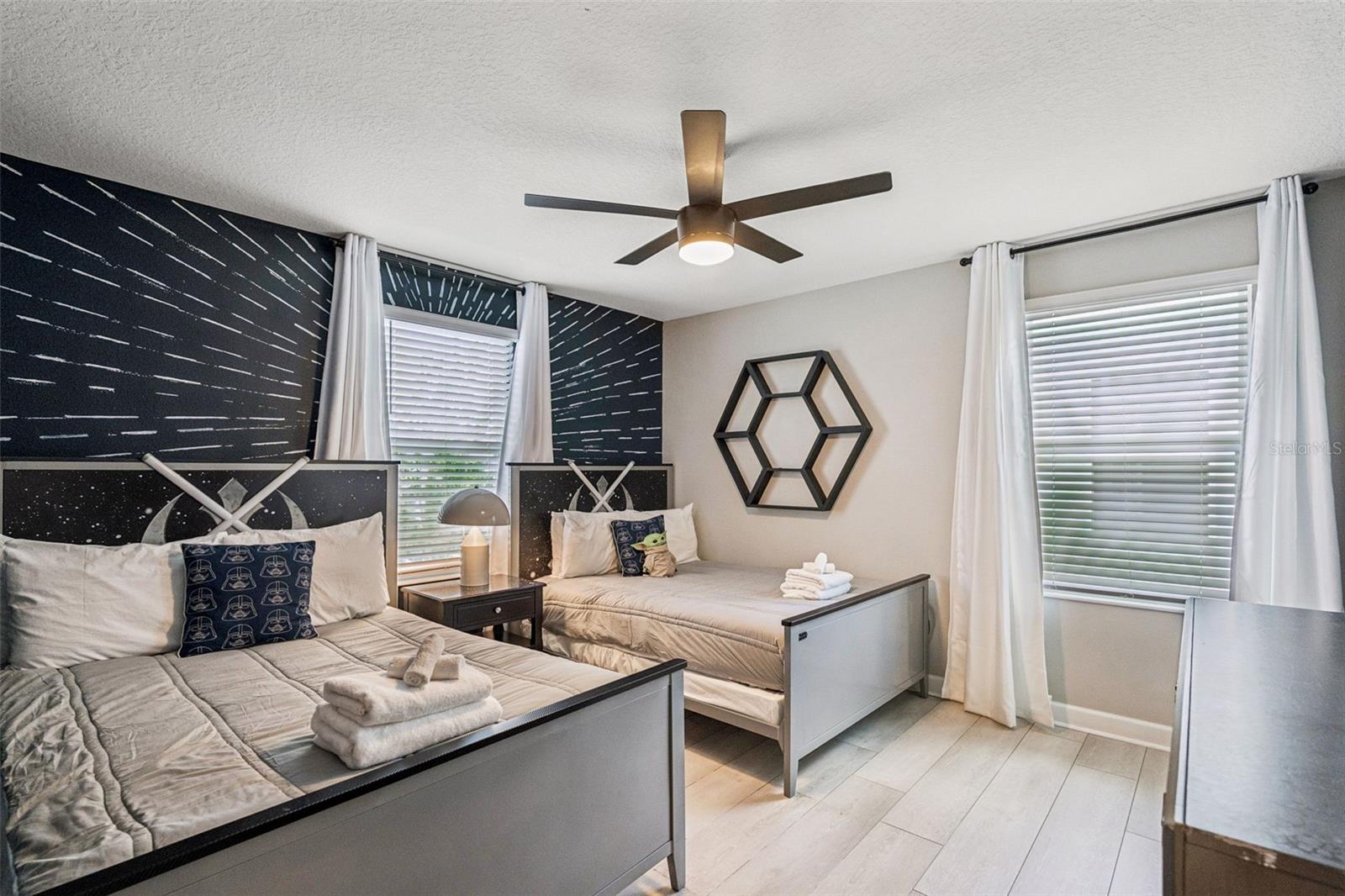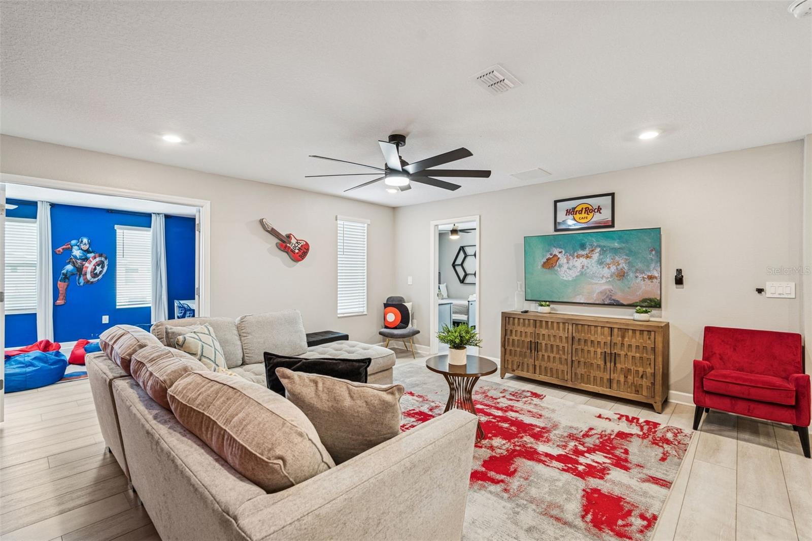 Some homes are built to live in — this one’s built to pay you back. Pulling in premium nightly rates and sleeping 28 guests, this 9-bed, 5-bath stunner in The Cove at Storey Lake is a money-making powerhouse wrapped in resort-style luxury. Already an Airbnb Superhost with future bookings in place, it’s fully furnished, themed, and turnkey — ready to start earning the moment you close. Out back? A private pool with no rear neighbors and conservation views that command premium nightly rates. Inside? Every inch is professionally designed with high-impact themed rooms that guests can’t resist — from Harry Potter® and Marvel Avengers® to Hard Rock® flair and Disney® magic. The fun doesn’t stop there: the downstairs game zone brings Hogwarts to life with air hockey, foosball, and a big-screen setup, while the upstairs loft doubles as a Hard Rock-style cinema and gaming lounge with quad screens for nonstop play. Just steps away, guests have access to Storey Lake’s world-class amenities — think Pirate-themed water park, lazy river, tiki bar, fitness center, splash pad, basketball, volleyball, and mini golf — plus two clubhouses and 24-hour gated security. Minutes from Disney®, Universal®, and SeaWorld®, this is more than a vacation home — it’s a proven, producing, plug-and-play investment in one of Central Florida’s highest-earning short-term rental communities. Already performing. Already booked. Already paying you back.