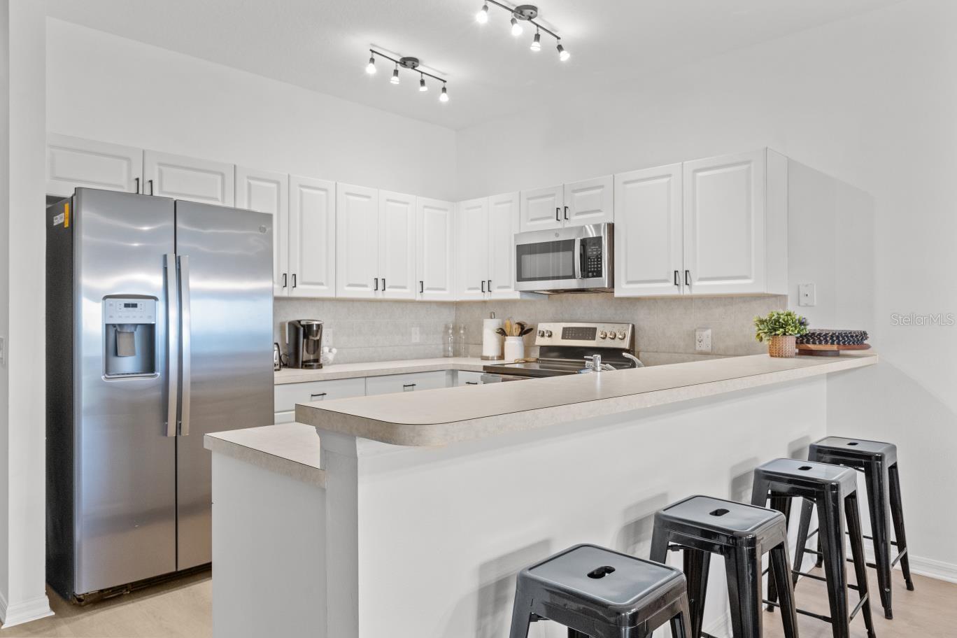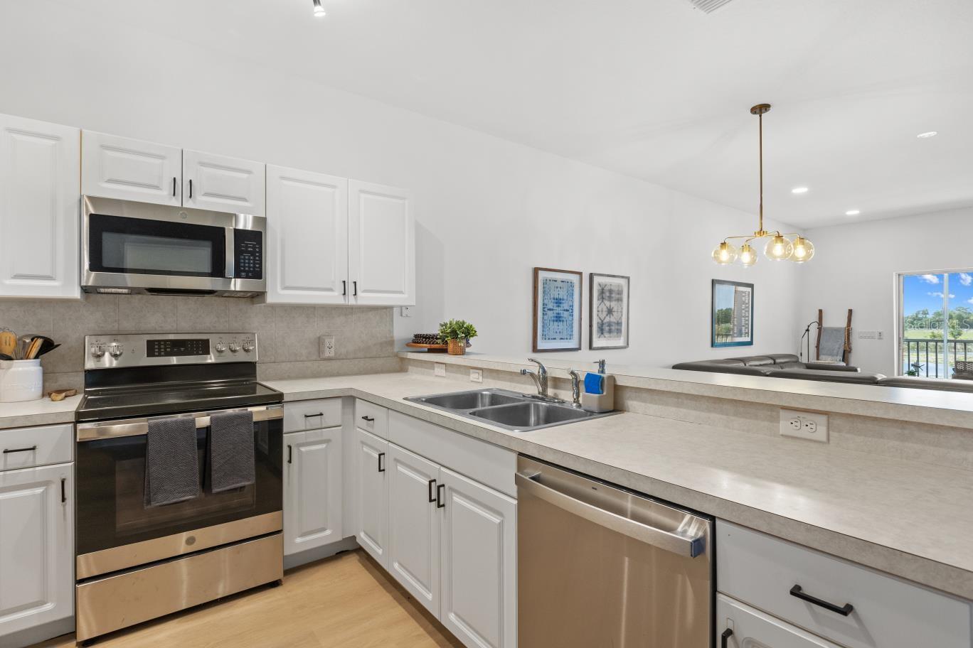 Location! Location! Location! Come see this spacious 3 bedrooms 2 bathrooms, second floor and private, covered, screened balcony with stunning water view! FULLY FURNISHED! Conveniently located near the Disney Theme Parks in the Gated Community with low HOA and no CDD! Split floor plan welcomes you to Beautiful Living Room. ALL NEW laminate flooring in all rooms, Spacious Master Suite will adds up privacy with volume ceilings overlooks covered screened patio making it perfect spot to relax. Master bathroom offers garden tub with Jacuzzi and separate shower! Family room overlooking covered screened lanai. The Equipped kitchen is offering generous counter space and ample storage. Make this your vacation, investment or primary residence. Sun Lake Community offers private gated entry, custom club house with fully equipped exercise room, tennis court and Large heated pool with hot tub. This is Prime Location just few miles from Disney World and surrounding great restaurants and shops. It will satisfy the pickiest family member. Zoned for Short Term rental, Long Term rental and Residential.