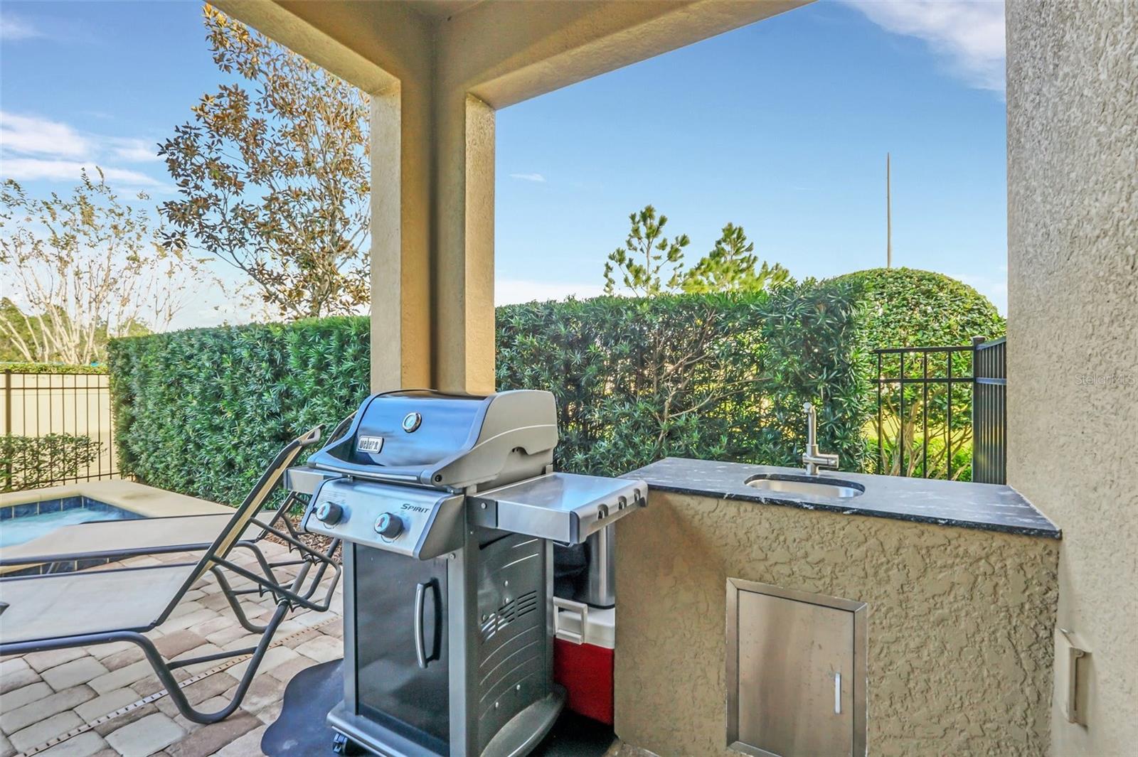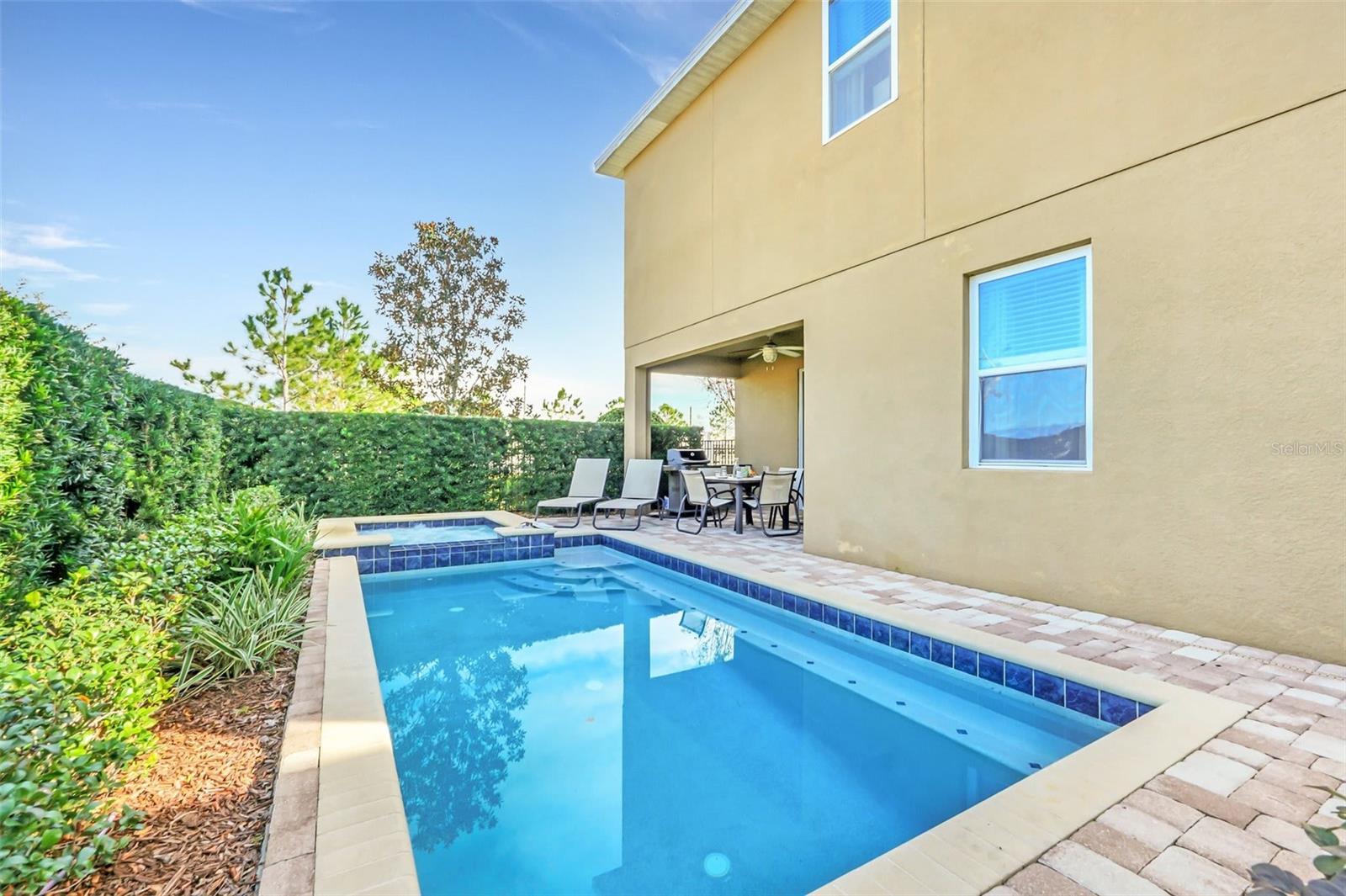 Step outside to your own private backyard oasis complete with a heated pool and spa, covered lanai, and outdoor kitchen, perfect for relaxing or hosting family gatherings under the Florida sun.