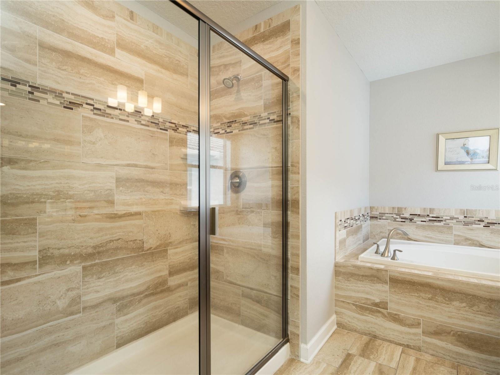 Multiple bathrooms with walk-in showers and a garden tub
