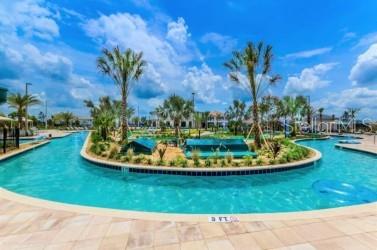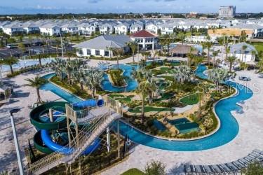 Storey Lake Resort offers world-class amenities, including a resort-style pool with a snack area, dual water slides, a lazy river, a splash pad, basketball and tennis courts, mini golf, a volleyball court, and a clubhouse with a fitness gym. A tiki bar provides the perfect spot for relaxation.