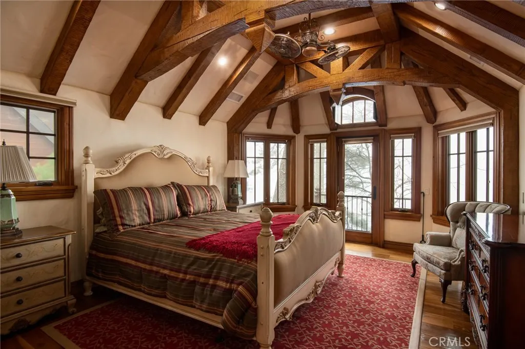 Set directly on the lake with two private boat docks, this fully reimagined English Tudor estate is one of the most distinctive and irreplaceable properties in Lake Arrowhead. Originally designed by noted architect David Abbott and extensively rebuilt between 20042006, the home is a true expression of old-world European craftsmanshipnot a reinterpretation, but a fully realized architectural statement brought to life with enduring quality and intention. Every detail has been thoughtfully executed, blending timeless design with modern comfort. Positioned behind the gated entry of the prestigious Point Hamiltair community, with a dramatic stone approach and directly across from the Lake Arrowhead Village, the home unfolds with a true sense of arrivalreminiscent of a Cotswolds manor. Inside, exposed timber beams, hand-chiseled woodwork, custom wrought iron, and layered artisan finishes create a warm, richly detailed interior. The residence has been extensively renovated and upgraded throughout. Custom cabinetry, handmade doors, and one-of-a-kind furnishings crafted on-site reflect a level of care and craftsmanship rarely seen. Fireplaces feature hand-painted tile by Nancy Grace, complemented by hand-carved mantels that anchor each living space. The primary suite is designed as a private retreat, featuring a statement chandelier, hand-painted mosaic tile, steam shower, and spa-quality finishes. Architectural enhancementsincluding added dormers and custom built-inselevate both livability and design. Modern systems are fully integrated, including Control4 smart home automation, a
