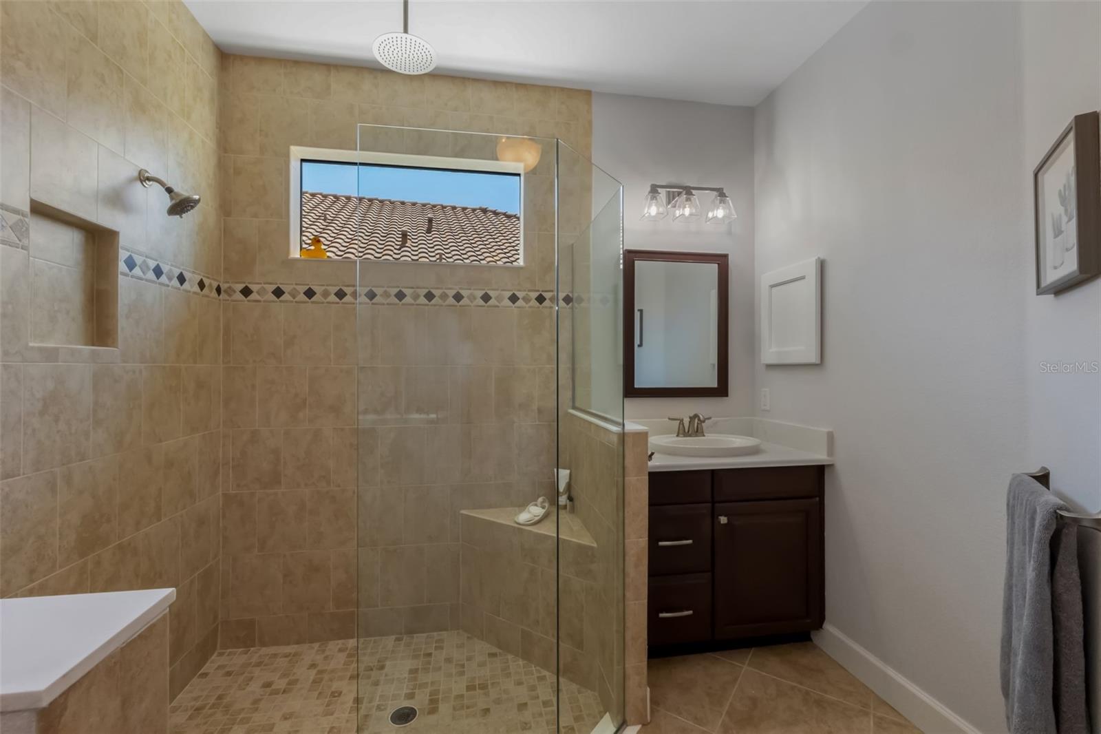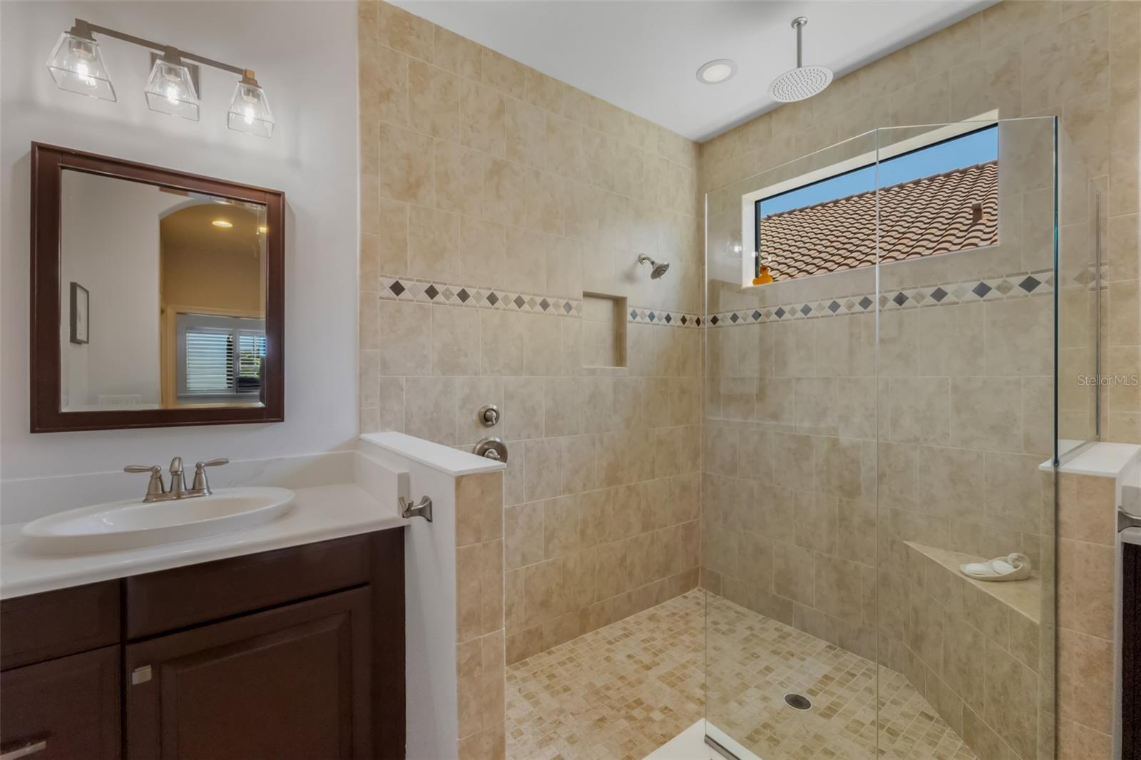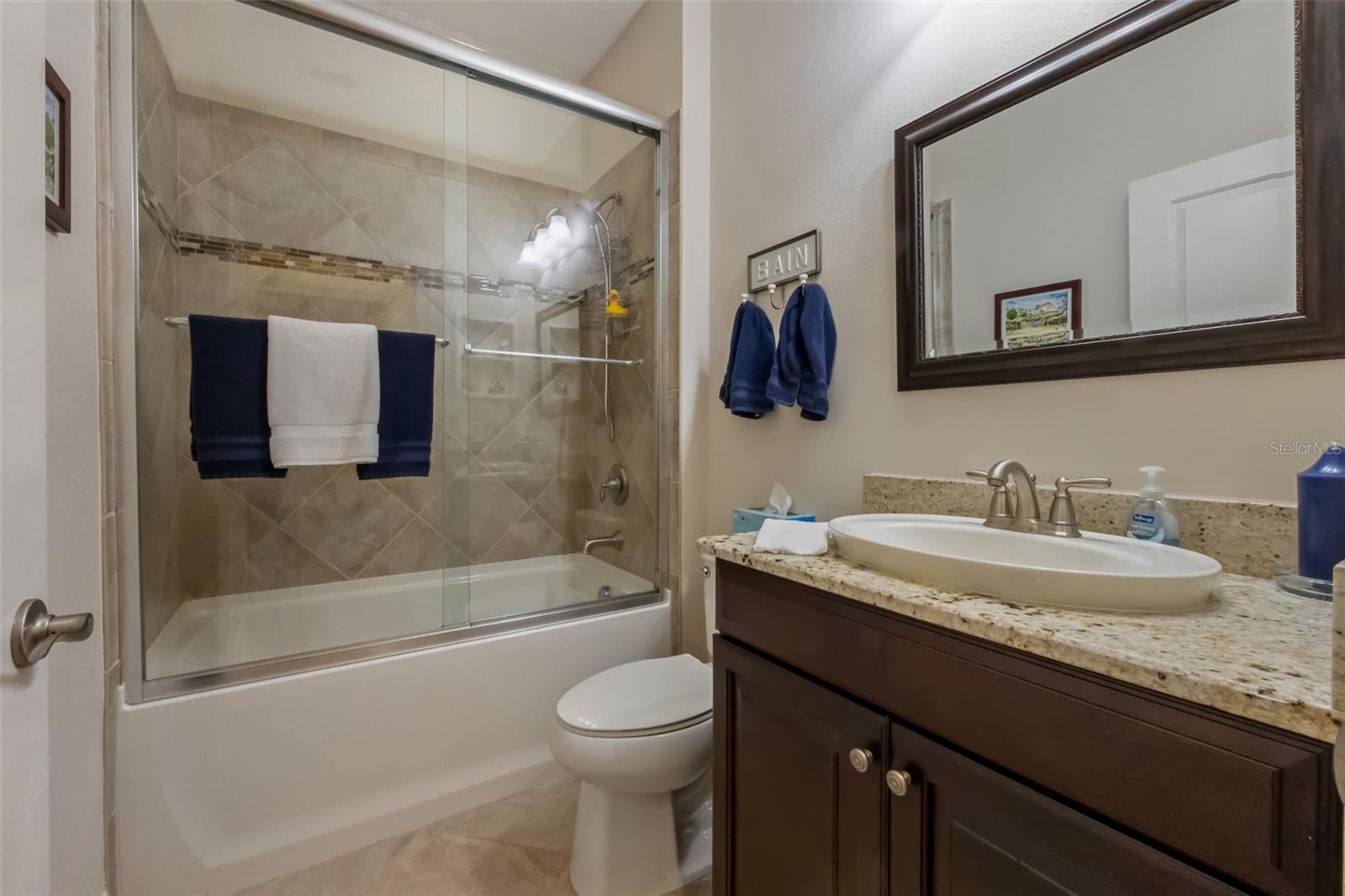 Retreat to the primary suite—your private sanctuary with pocket door, custom walk-in closets, and spa-inspired bathroom featuring updated counters and sinks (2020) plus a luxurious walk-in shower with new surround (2021). The guest suite offers equal comfort with its own pocket door, updated finishes, and adjacent full bath with soaking tub/shower combo—perfect for visitors or multigenerational living.