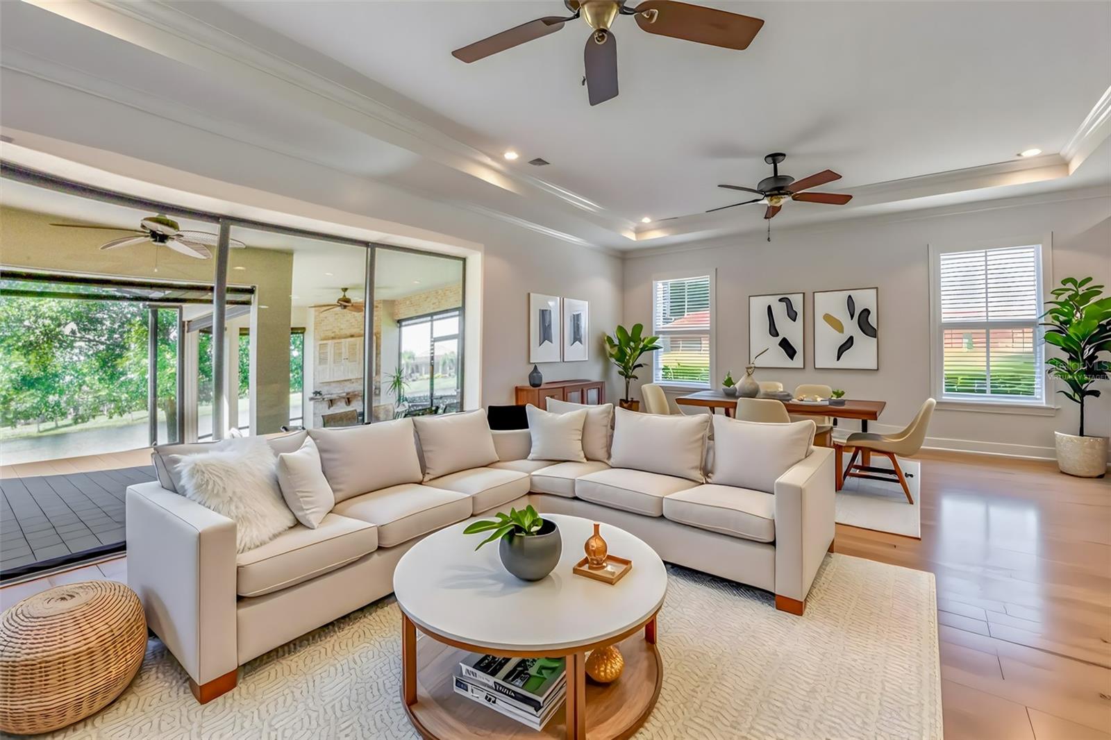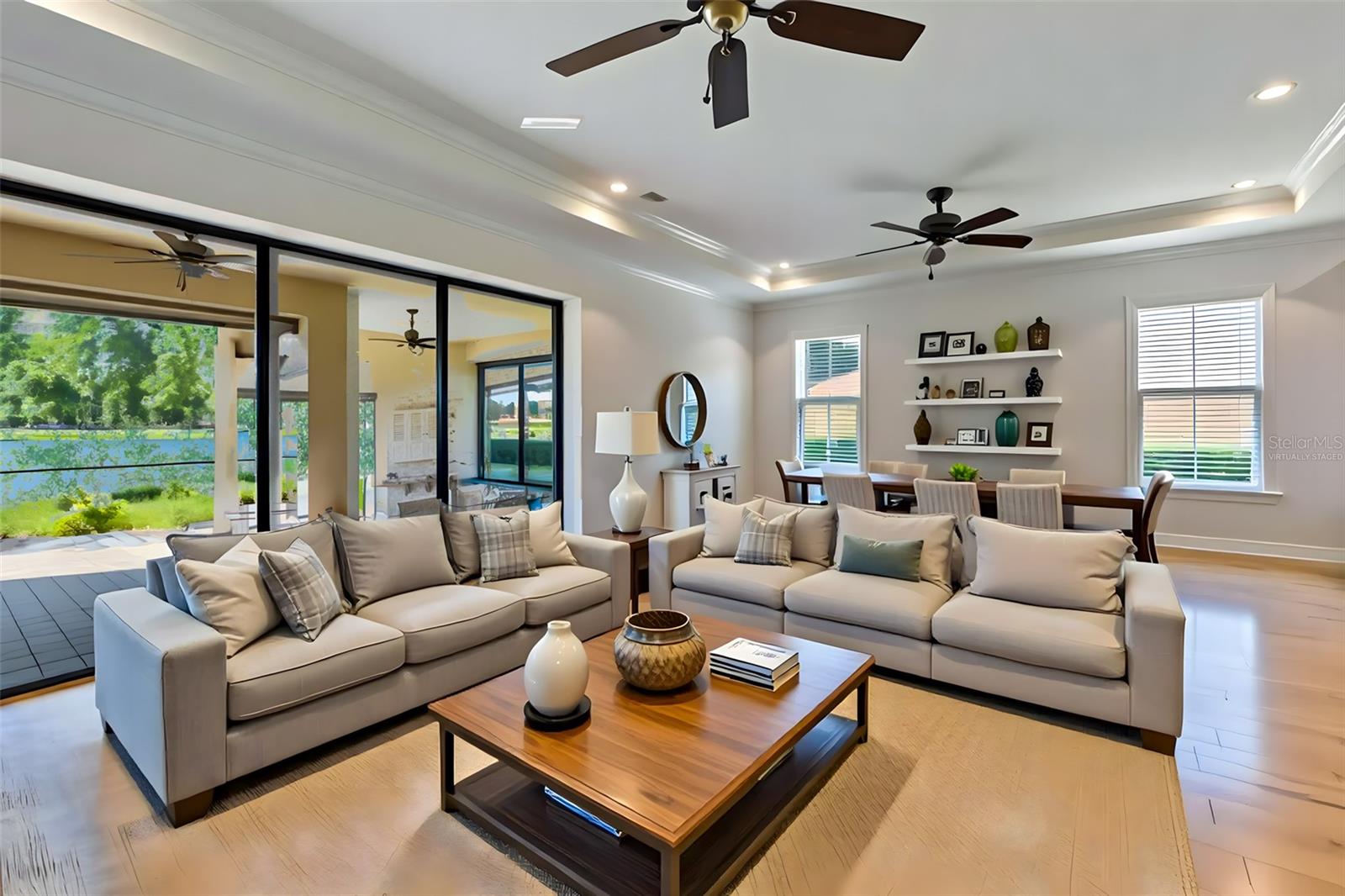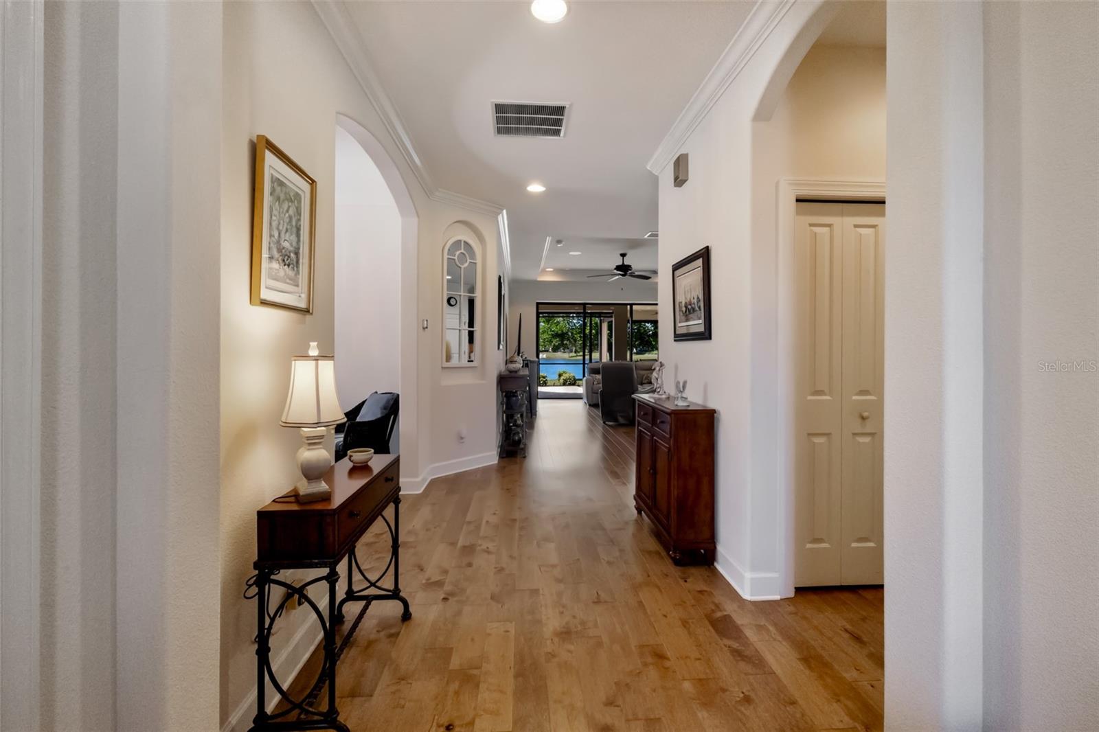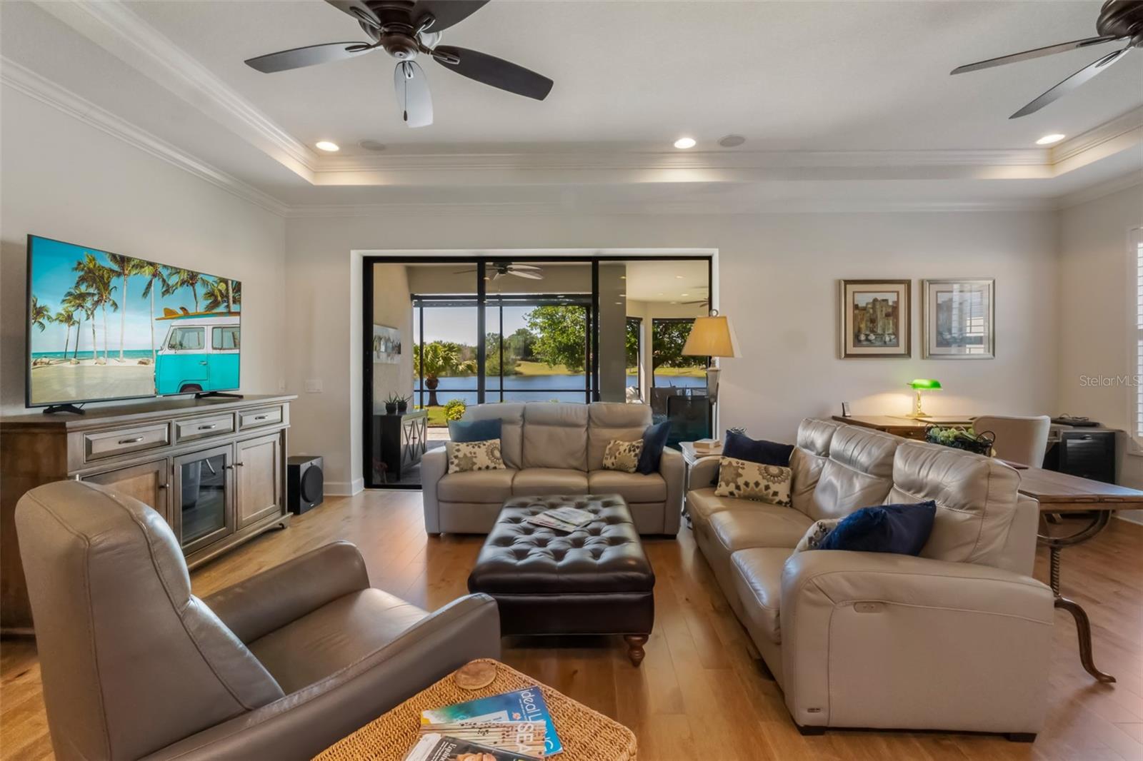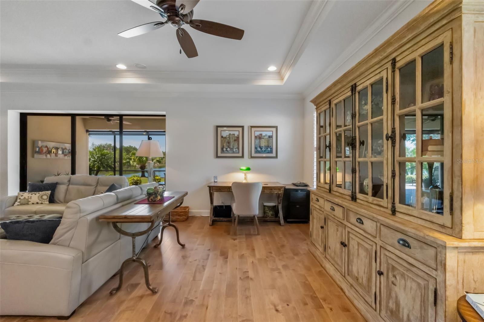The versatile den adapts to your lifestyle: formal dining room, home office, media room with TV, or even a 3rd bedroom. Seven designer ceiling fans throughout keep you comfortable year-round.