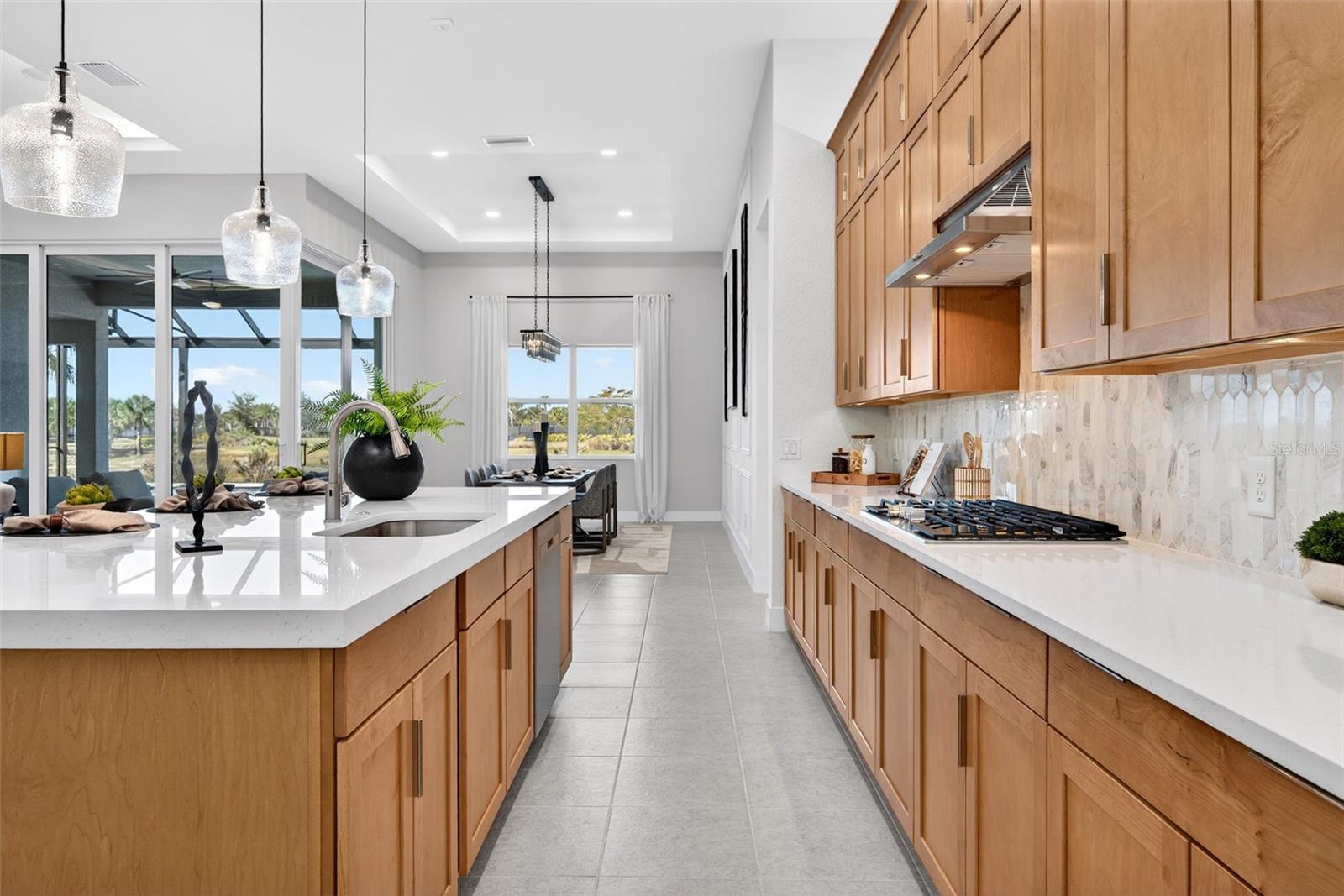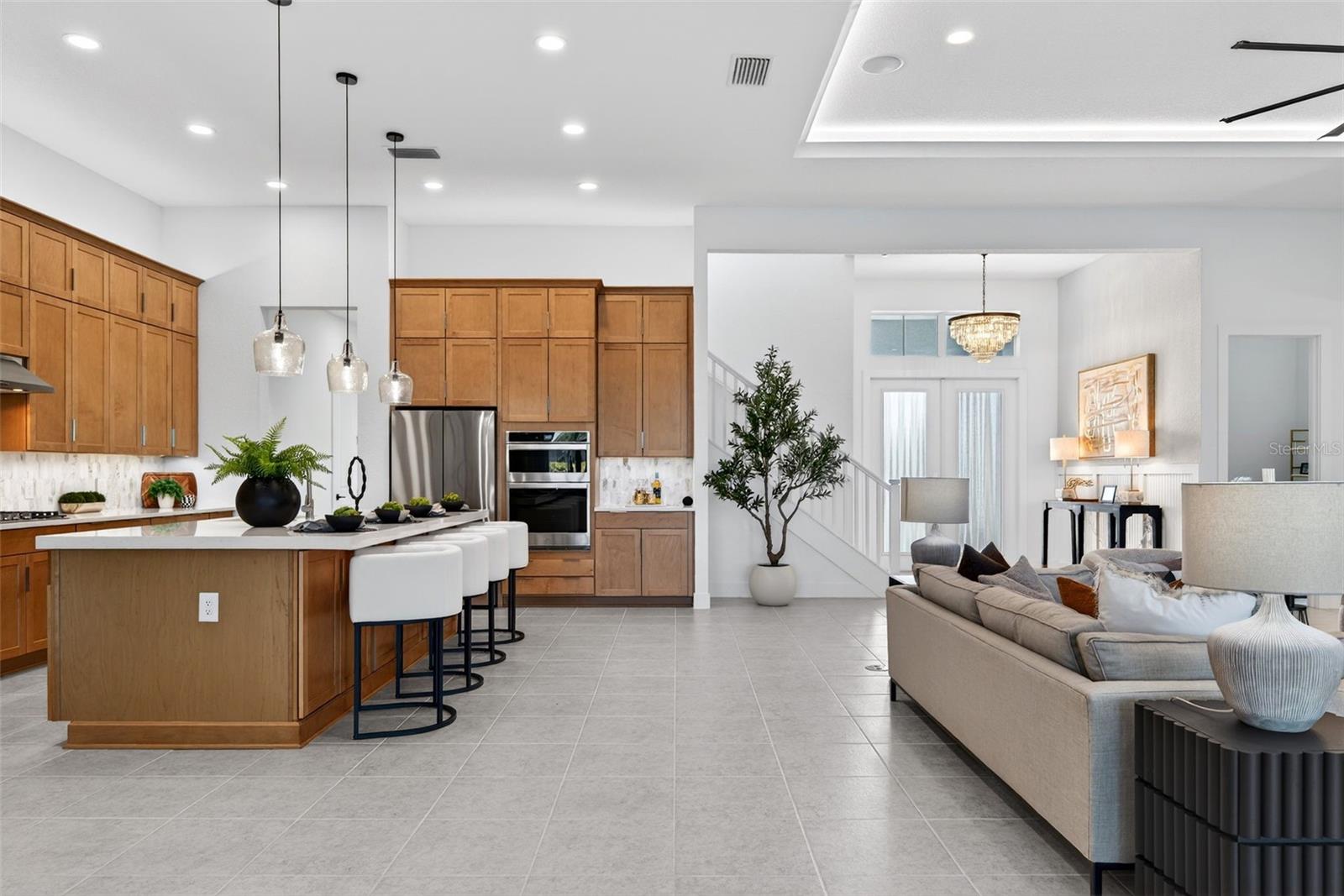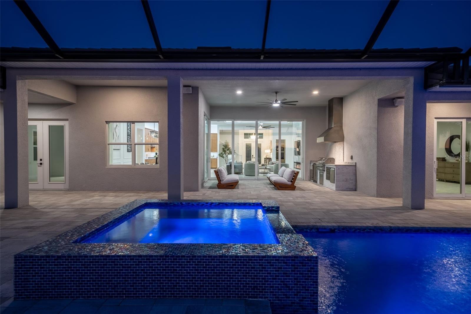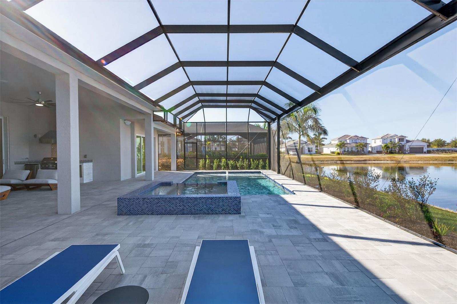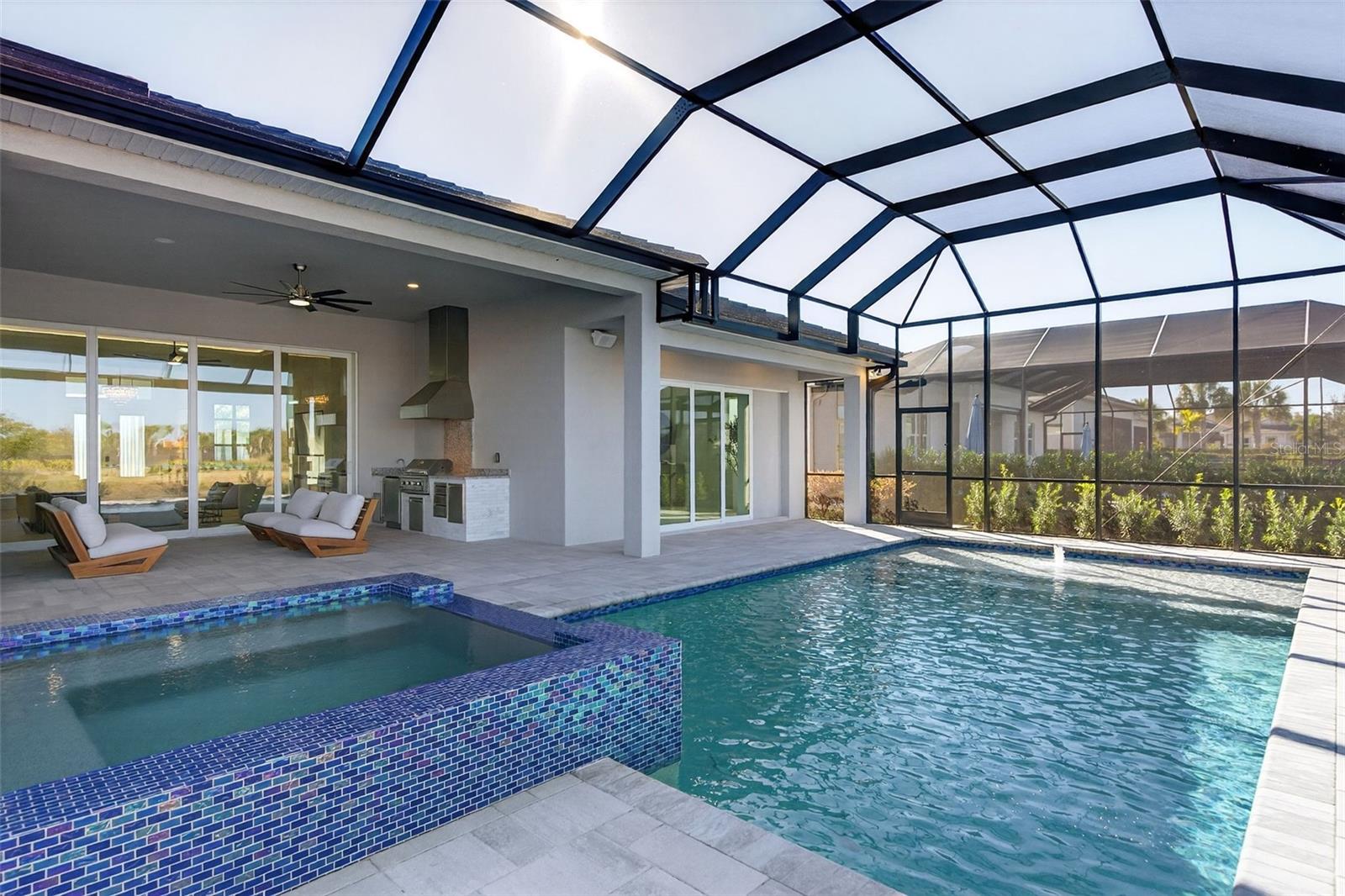Never lived in and masterfully curated, this 2024 Maxwell Elite residence in The Isles represents the pinnacle of refined luxury living. Designed with uncompromising attention to detail, the owners selected nearly every available upgrade, creating a home that feels both grand and effortlessly livable. Custom entry doors open to a striking foyer with soaring ceilings, leading seamlessly into an expansive open-concept great room and chef’s kitchen adorned with top-tier finishes and designer appointments. A bespoke living-room built-in with fireplace serves as an elegant focal point, while dramatic 10-foot, 90-degree hurricane-impact sliders dissolve the boundary between interior and exterior living. The outdoor experience is equally impressive, featuring an extended covered lanai with a custom pool, outdoor kitchen, built-ins, a full cabana bath, and a heavy-duty lanai cage—an entertainer’s sanctuary designed for year-round enjoyment. The owner’s suite is a private retreat occupying its own wing of the home and enhanced by an extended layout, custom ceiling and tile treatments, dual walk-in closets, and a spa-inspired bath with rain shower. Private 8-foot pocket sliders provide direct access to the lanai, elevating the suite’s resort-like ambiance. Three additional bedrooms are all en-suite, offering exceptional privacy for guests, while a sophisticated office and an upstairs bonus room—purposefully designed for seamless conversion to an additional en-suite bedroom—add versatility and future flexibility. Notable enhancements include coffered ceilings, solid-core doors, an upgraded stairwell, additional windows for natural light, core-foam masonry and spray-foam insulation, a circulating hot-water system, tankless gas water heater, secondary pantry, EV charger, electric pre-wiring for air conditioning in the garage, additional exterior garage access, and comprehensive smart-home integration. Further elevating the residence, post-closing upgrades include custom ceiling treatments, designer built-ins, refined tile work, and a fully realized luxury outdoor living environment. Impeccably finished and truly turnkey, this never-occupied home offers a rare opportunity to step into a flawless, resort-caliber residence—where every detail has been thoughtfully executed and nothing remains to be done. Luxurious living in the gated, maintenance-free community of The Isles, nestled between The Lake Club and Concession, at its best! The Isles at Lakewood Ranch offers many amenities such as a 65,000 square foot clubhouse, tennis and pickleball courts, basketball court, playground, state of the art fitness center and yoga room, resort-style swimming pool and spa, boardwalk and fishing pier, and a playground and dog park. Centrally located, just off I-75 and a short drive to the award-winning beaches of Siesta Key, Lido, & Anna Maria. This move-in ready home has all the amenities that one would want in this 2025 Best-Selling Multigenerational Planned Community in the Nation.
