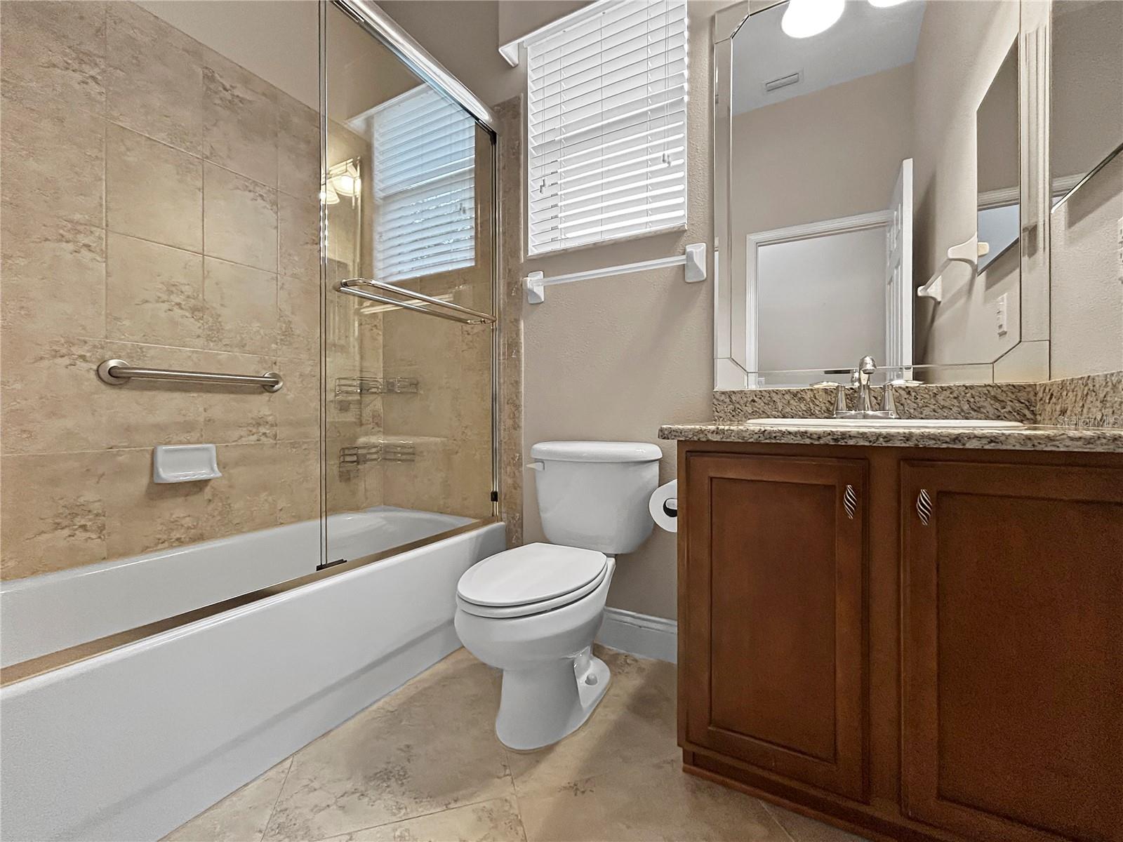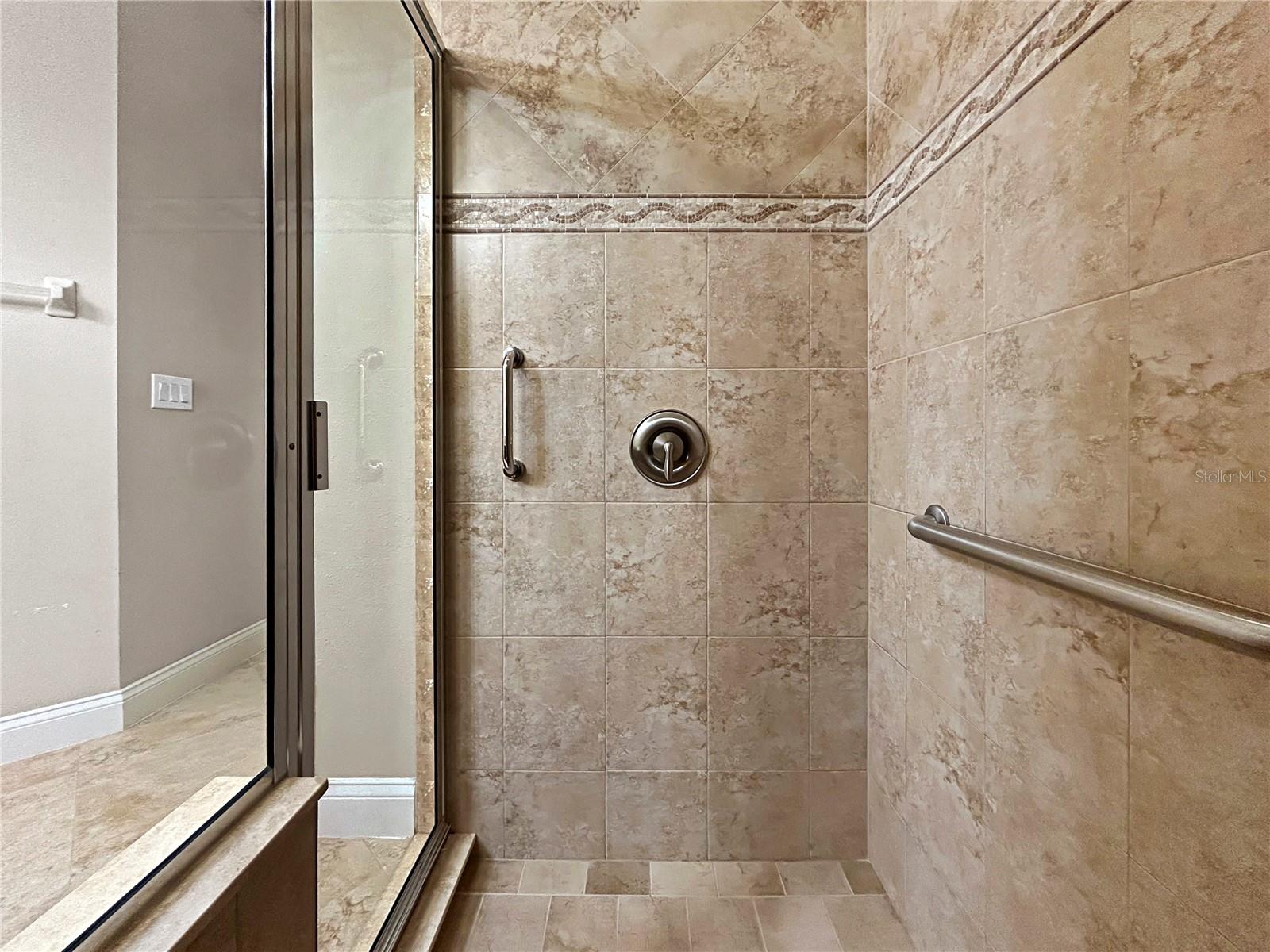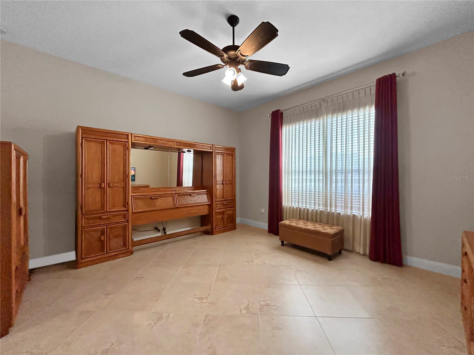 The primary suite is a true sanctuary with its own en suite bath, offering dual vanities, a walk-in shower, and two spacious walk-in closets. All bedrooms are generously sized, complete with large closets and ceiling fans.