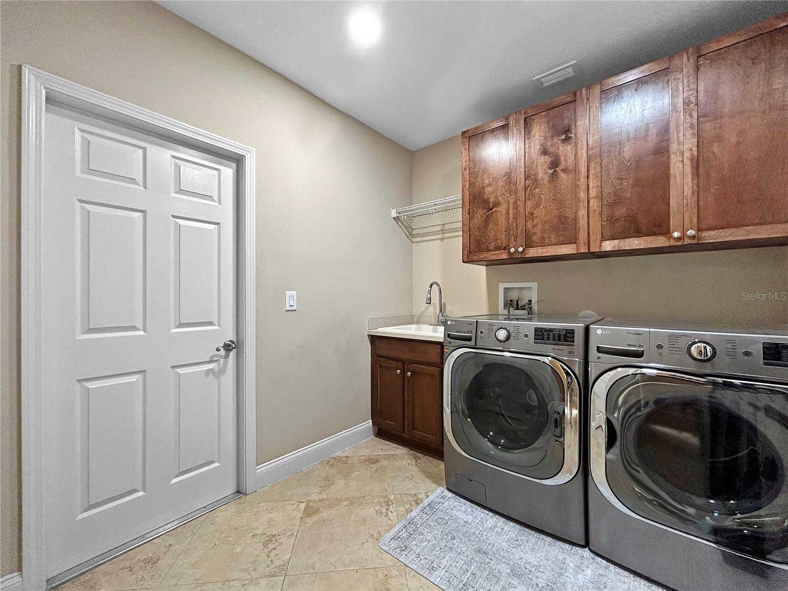 Additional features include: Generac generator, Surround sound system, Wired for home security, Water softener, Oversized two-car garage, and a laundry room with sink and extra cabinetry