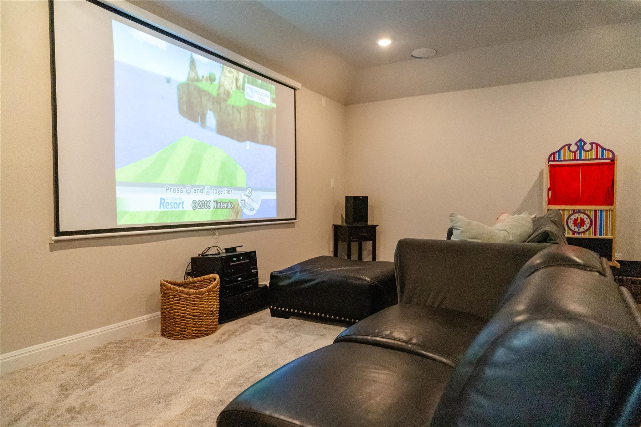 Luxurious Hill Country Retreat on Premier Cul-de-Sac Lot Set on the largest front yard in the sought-after Deerbrooke master-planned community, this exceptional 5-bedroom, 3.5-bathroom home offers 4,040 square feet of elevated living, thoughtfully designed for comfort, technology, and style. Positioned at the end of a quiet cul-de-sac with no neighbors to the north or west, the home enjoys unobstructed Hill Country views and immediate access to scenic nature trails. Inside, soaring ceilings, 8-foot doors, and a floor-to-ceiling blue marble limestone fireplace create an unforgettable first impression. The flexible layout includes a private home office (optional 6th bedroom), a formal living area, and a dedicated theater room pre-wired for 10-channel Dolby Atmos sound. A built-in ceiling speaker system in five rooms and motorized window shades in select spaces add to the home's high-end functionality and comfort. The kitchen is a showstopper, opening to the main living area and featuring elegant finishes throughout. The primary suite offers tranquil greenbelt views, a luxurious en-suite bath with a frameless dual-head shower, soaking garden tub, and a generous closet. Additional features include a laundry/utility room with sink and cabinetry, a rear-entry 3-car garage, gated access on both sides, and an invisible dog fence enclosing the expansive front yard. Enjoy full access to Deerbrooke's private neighborhood amenities, including a resort-style infinity pool, fitness center, amenity pavilion, dog park, and miles of hiking trails—all conveniently nearby. Zoned to award-winning Danielson Middle School and Glenn High School, this home blends luxury, convenience, and community like no other.