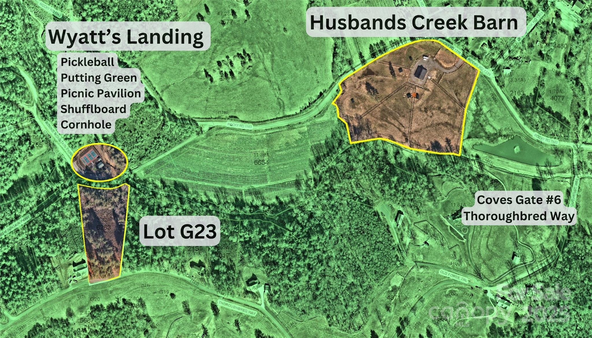 Lot G23: 3.32 acres with beautiful long range mountain views, including Grandfather Mtn. On Thoroughbred Way in the Husbands Creek Farms section of The Coves Mountain River Club. Build site level with street. Electric, fiber-optic internet, cable TV buried by street in front. Trail system and stream at the back of lot. New community equestrian center over the hill; a picnic pavilion, pickle-ball courts, putting green down the hill. The Coves is a 3,200 acre gated community; amenities include a mountain top clubhouse: 360° views of Blue Ridge Mtns, South Mtns, and Brushy Mtns, fitness center, pool, outdoor fire-pits, viewing decks. Community gardens, vineyard, private trail system, 5 miles of Johns River to kayak and fish. 2 community equestrian centers and thriving equestrian club. Dog Park. 25+ enthusiast groups to join. Planned events and excursions fill up the calendar, and there is always an impromptu sunset social at the clubhouse or on someone's porch.