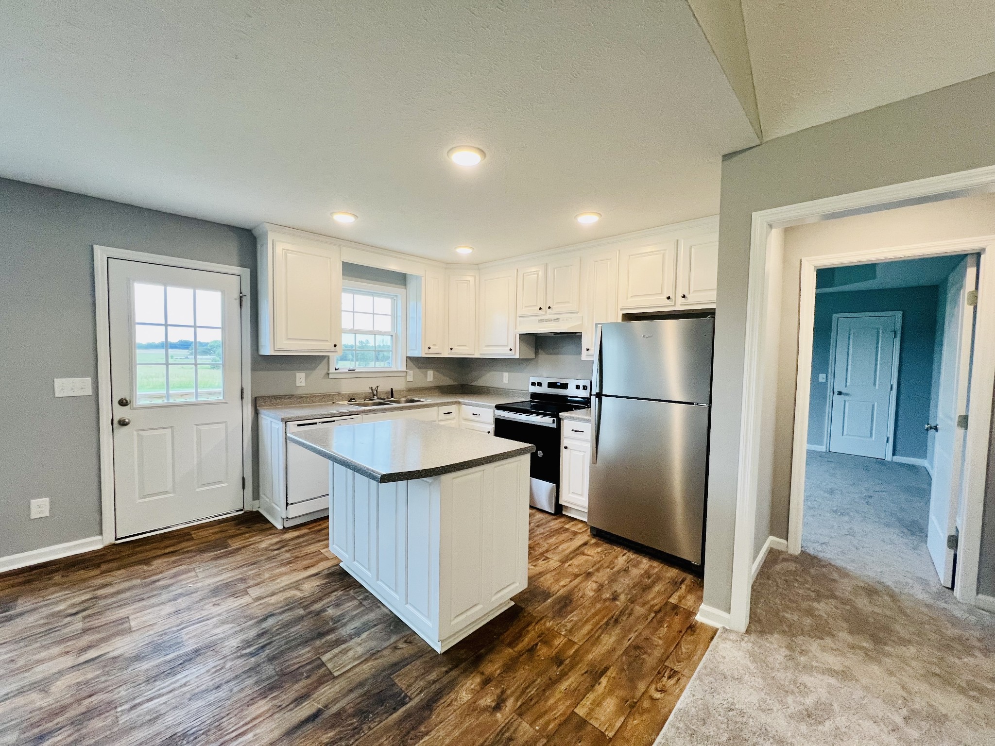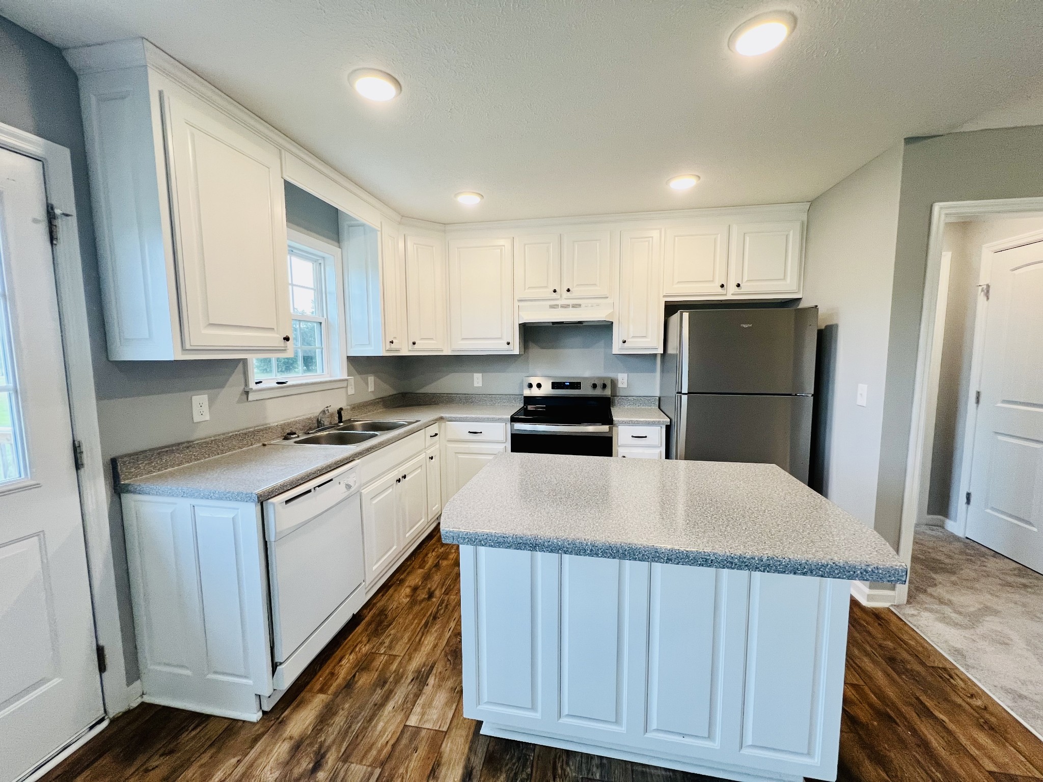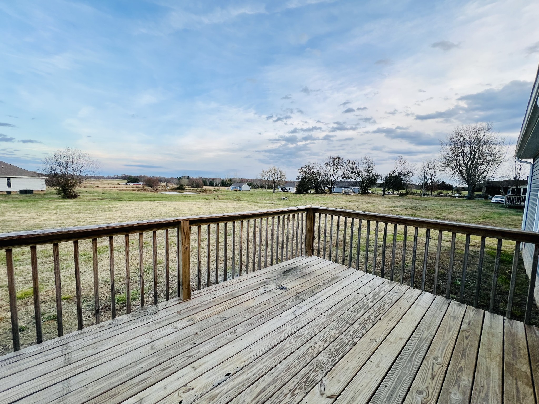 NICE HOME! ALMOST NEW! This 3-bedroom home has an additional room with a closet that can be used as a study or extra bedroom. Spacious open floor plan with vaulted ceiling in the living area, and an island in the kitchen for easy living and entertaining. Kitchen has NEW stainless stove and refrigerator. The main bedroom includes a convenient walk-in closet and trey ceiling with fan. Main bedroom also has its own bath with tub/shower combination. Main bedroom is also separate from the other bedrooms. Two-car garage, deck on back and front porch for enjoyable outdoor living.