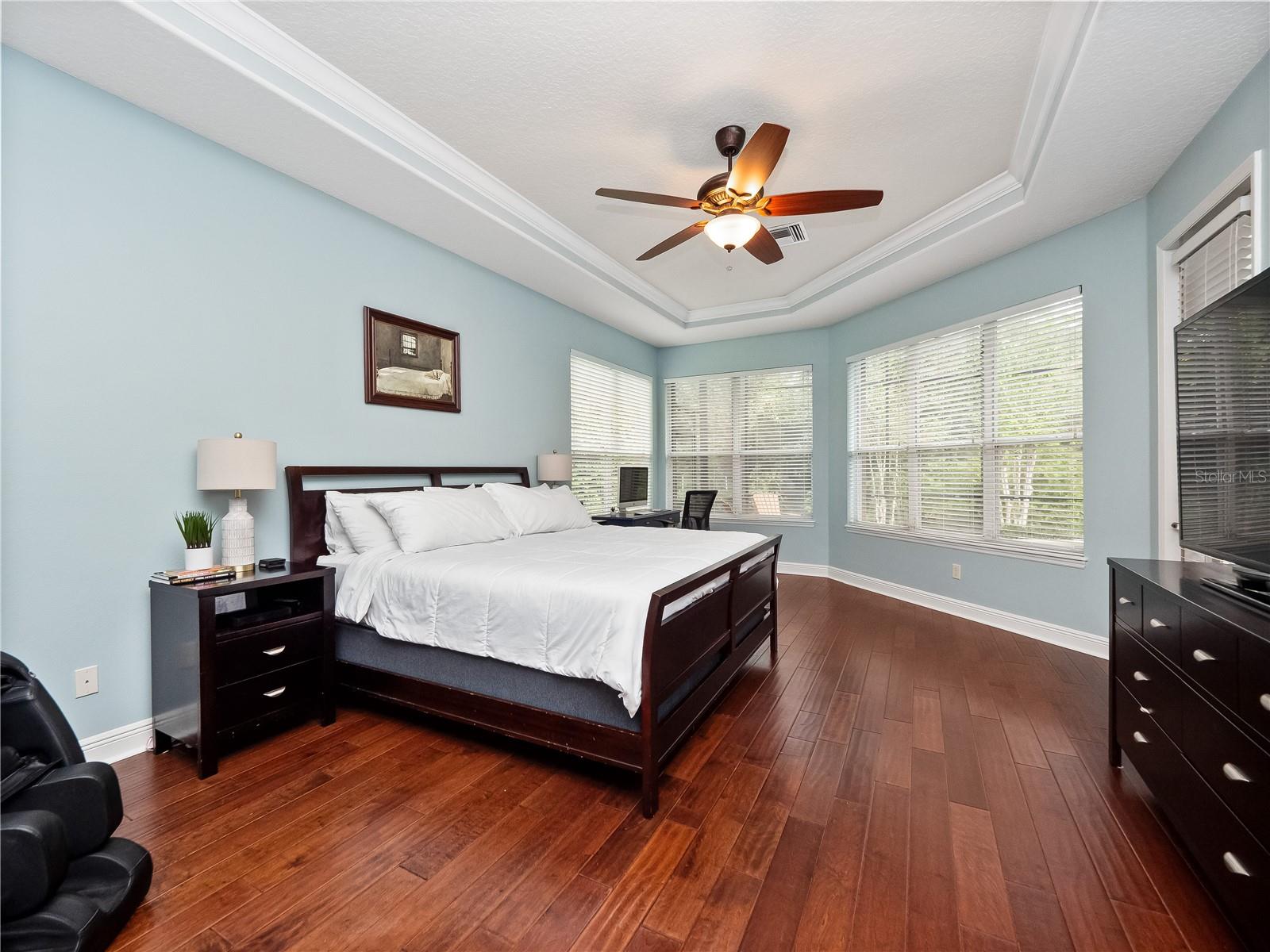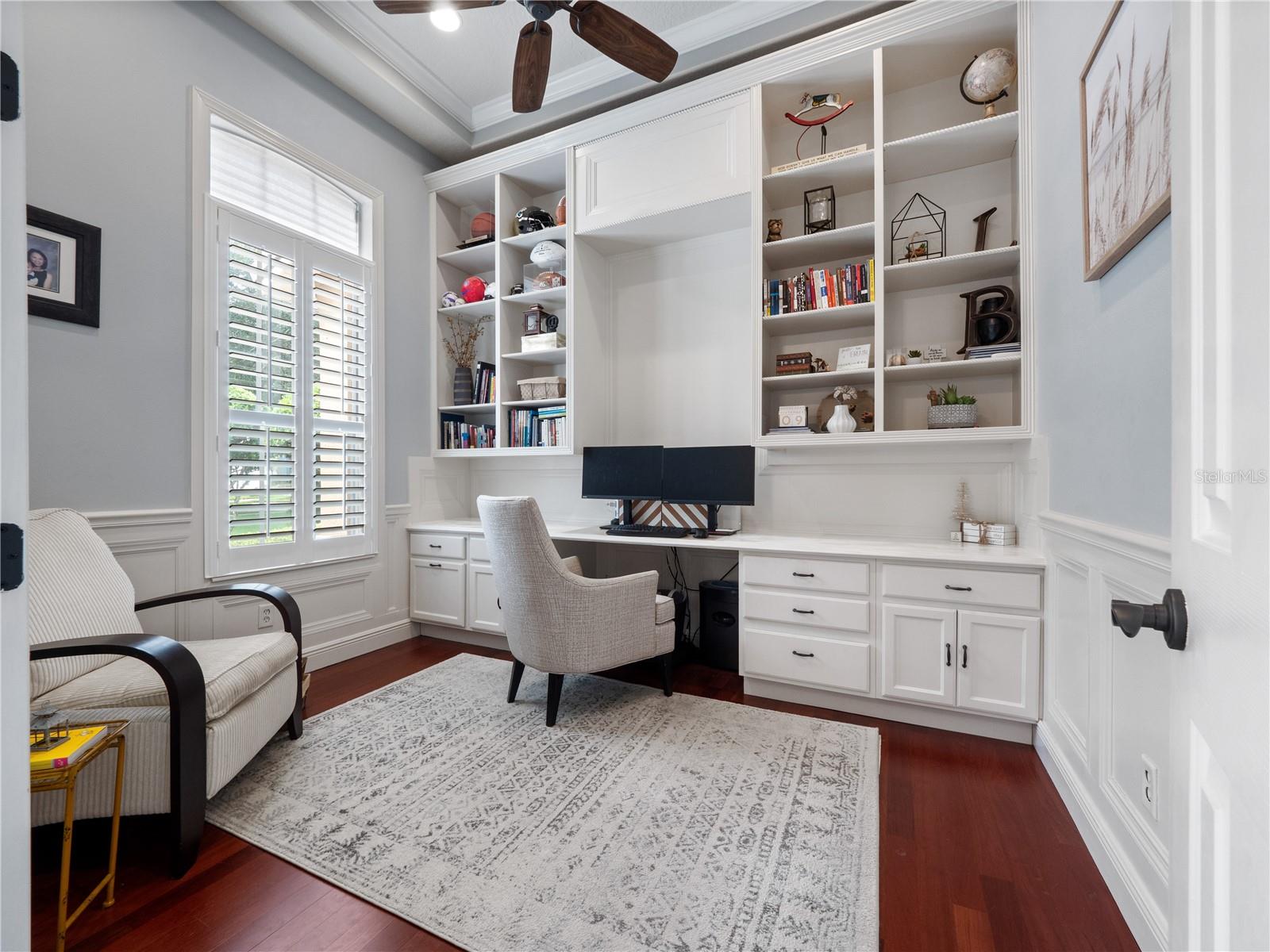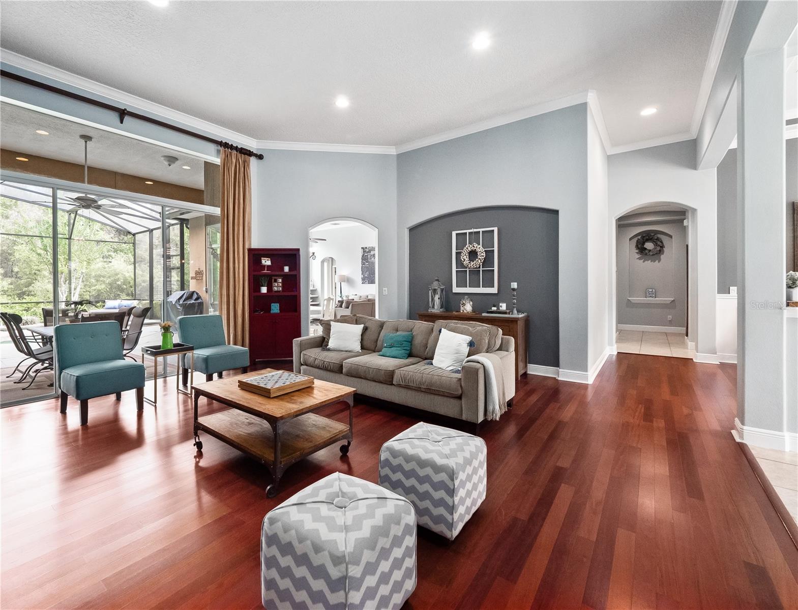 Welcome to this beautifully maintained home in the guard-gated community of Alaqua Lakes! This elegant one-level residence offers 4 spacious bedrooms, 3.5 baths and a dedicated office or potential den with custom built-in cabinetry.This home has been meticulously maintained with recent updates including a NEWER TILE ROOF (2023), NEWER HVAC systems (2019) and NEWER TANKLESS water heater (2019) for peace of mind. Designed for both entertaining and everyday comfort, this home features a formal living room and dining room perfect for gatherings of friends and family. The gourmet kitchen features granite countertops, a spacious island, gas cooktop, solid wood cabinetry and stainless steel appliances—all flowing naturally into the inviting family room with built-in shelving/cabinets and a gas fireplace. High ceilings, crown molding and abundant natural lighting create an open, airy ambiance throughout the home. The primary suite is a serene retreat with walk-in closets, a separate sitting area and a spa-like bathroom with granite countertops, built-in vanity area, solid wood cabinetry, garden bath and adjacent shower. A desirable 3-way split-plan ensures utmost privacy for family or guests. Enjoy outdoor Florida living with a covered lanai overlooking the sparkling pool with a NEWER pool screen enclosure and a private backyard with conservation views perfect for relaxation and entertaining! Large, private backyard with room to add on if you so desire. Whether you’re a growing family or seeking a refined downsizing opportunity, this Alaqua Lakes home delivers a rare combination of style, function and privacy in one of Central Florida’s most sought-after communities. Alaqua Lakes is set within a premier golf course community where residents enjoy world-class amenities including clay tennis courts, a resort-style pool, playground and sports field, a 24-hour guard-gated entrance and enhanced community security. Located near Central Florida’s best attractions, upscale shopping and dining, major highways, and international airports this exceptional home delivers a rare combination of luxury, privacy, and lifestyle.