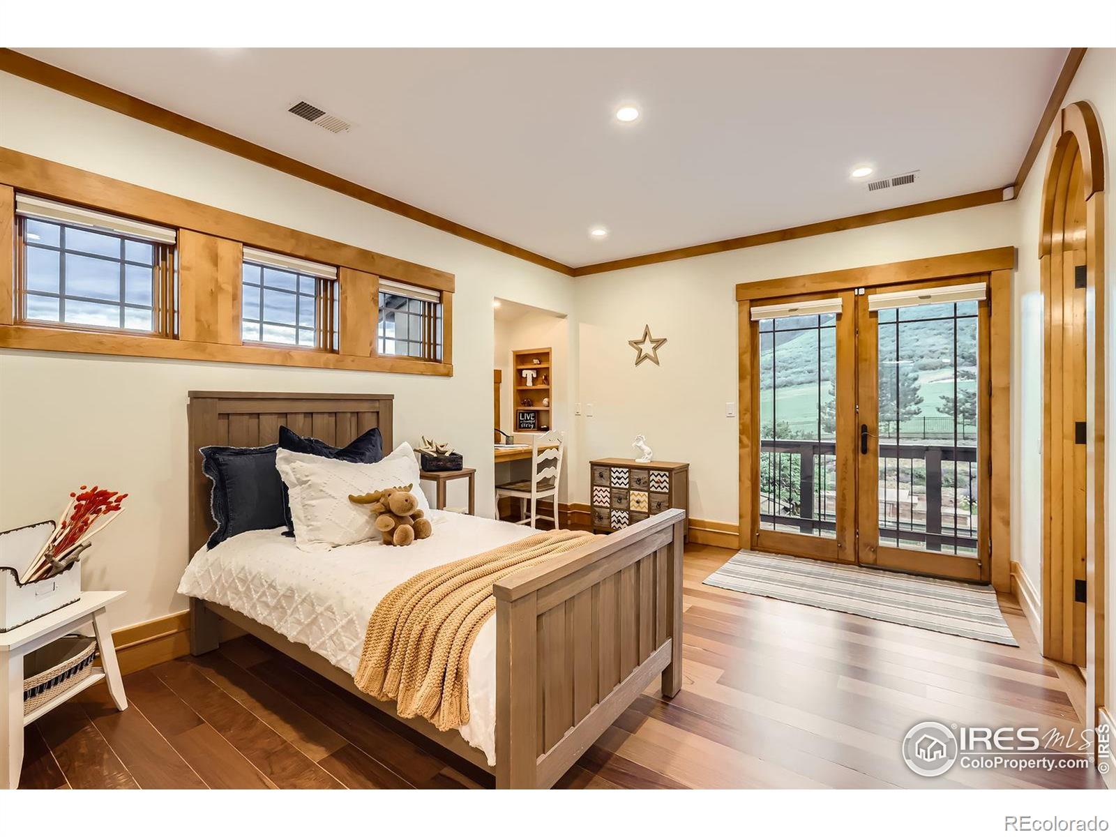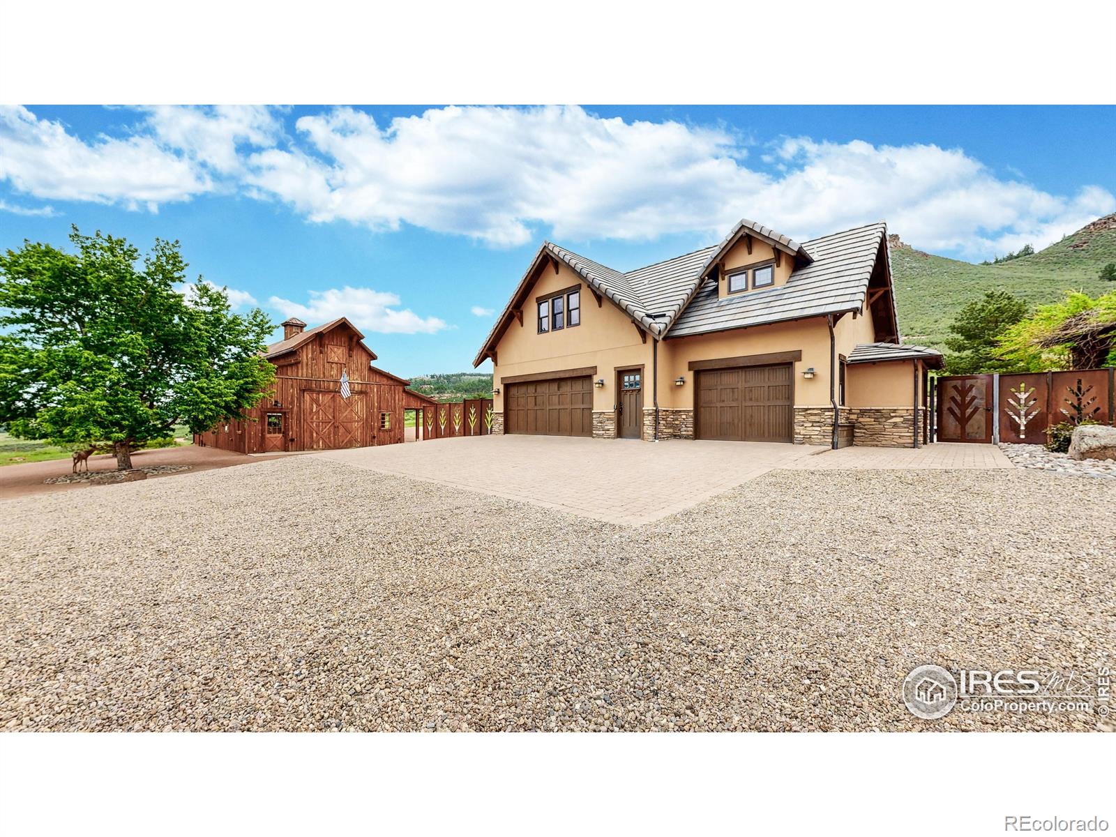 Visit LyonsLuxuryEstate(.com) for more info. Tucked away in the secluded Little Thompson River Valley, this gated 40-acre, 5-structure estate offers true privacy in a peaceful natural setting, yet is remarkably close to town. Few properties provide this level of seclusion without sacrificing convenience. Originally 18 acres, the property was expanded in 2024 with 22 mostly gently sloped acres- a rare find in the foothills. The extra land provides space for animals, recreation, or future structures, and creates a meaningful buffer from neighboring properties. A newly constructed one-mile perimeter trail, finished with crusher fines, wraps around the property, offering stunning views and is ideal for horseback riding, hiking, biking, trail running, etc. The custom contemporary craftsman home blends comfort and timeless style. The gourmet kitchen features dual granite islands, top-tier appliances, custom cabinetry, and a walk-in pantry. Indoor living flows seamlessly into an outdoor oasis featuring a heated pool and waterfall, spa, artisan metal fencing, outdoor kitchen, and an Italian wood-fired pizza oven -all overlooking the scenic foothills. The main-level master suite includes a steam shower, soaking tub, and outdoor access. Smart home components for lighting and music. Other highlights: vaulted ceilings, main-floor office, upper-level bedrooms, yoga studio, family room with wet bar, and a laundry room with slate-tiled dog shower. The wine cellar is enclosed by 18th-century hand-carved doors imported from Asia, with a sauna, craft room, and half bath nearby. Additional buildings include a guest casita, a suite above the heated 3-car garage, a 1,500 sq. ft. heated barn/workshop/event space with a 20-ft climbing wall, and the last structure houses the pool mechanicals and mini-garage for storage. Some upgrades include a 17.76 kW owned solar array, whole-house reverse osmosis water system, high-efficiency heat pumps, and boiler. Inquire to schedule your private tour.