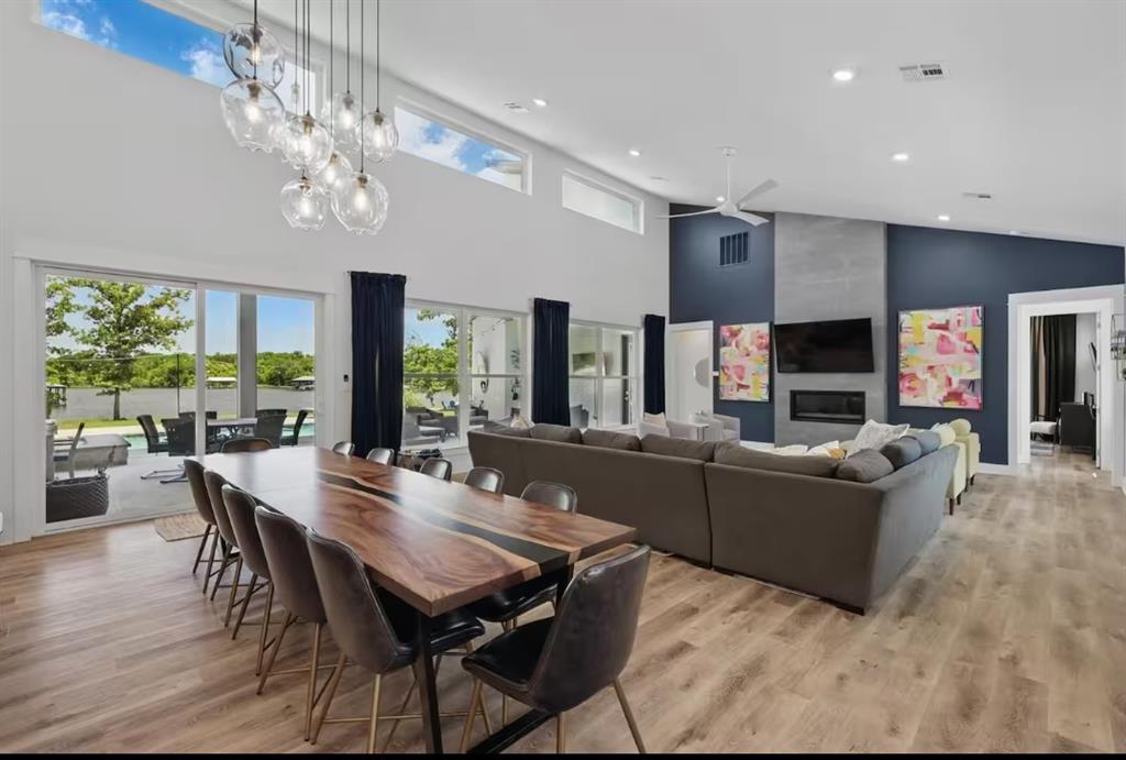 Fireplace Features: Decorative, Electric, Family Room, Outside, Stone, Wood Burning