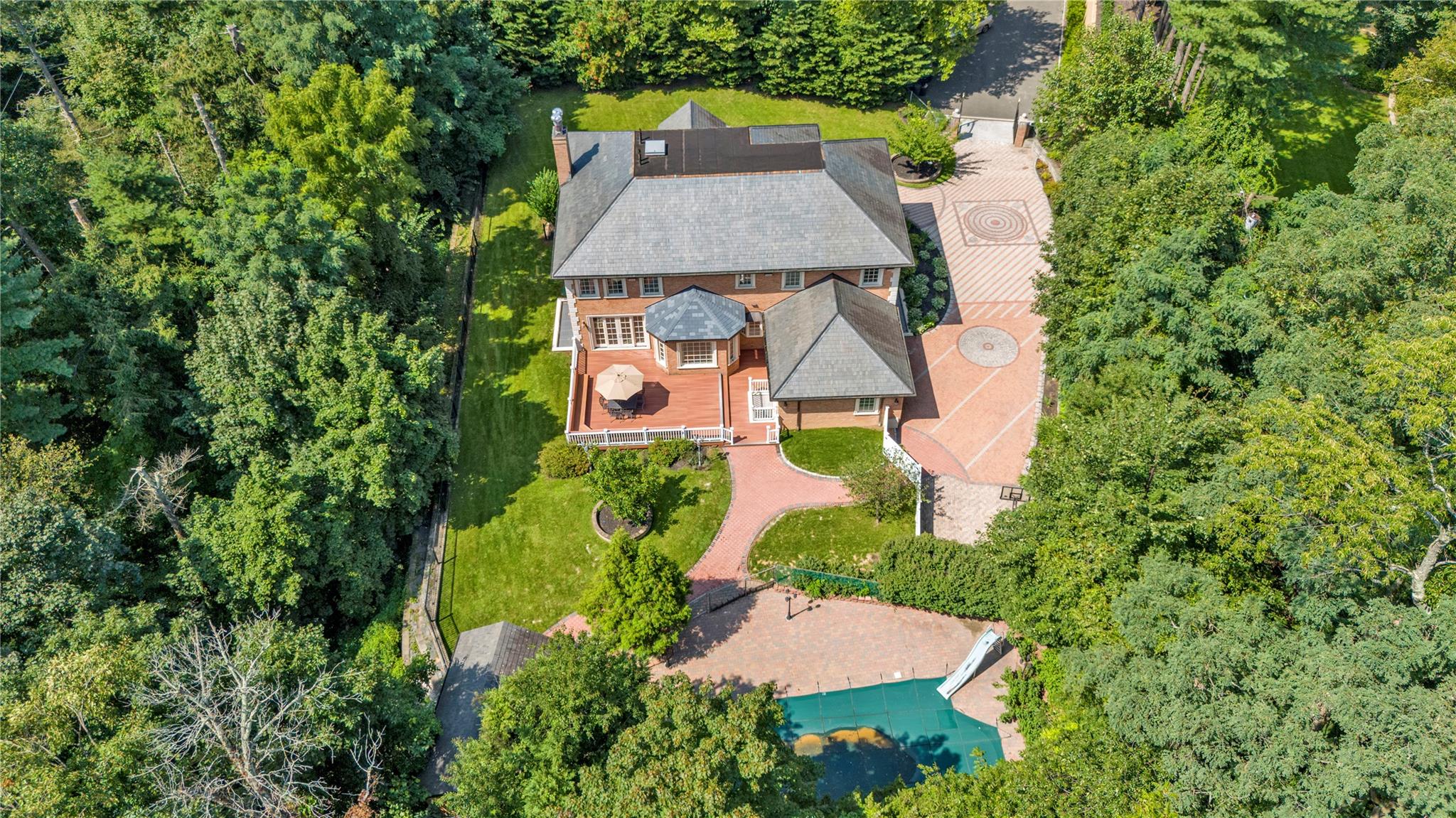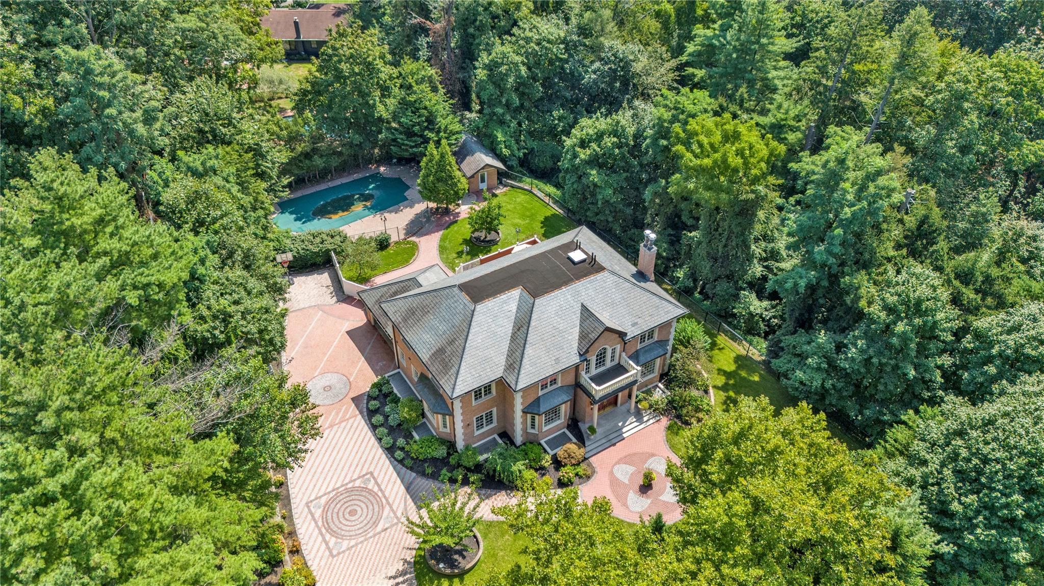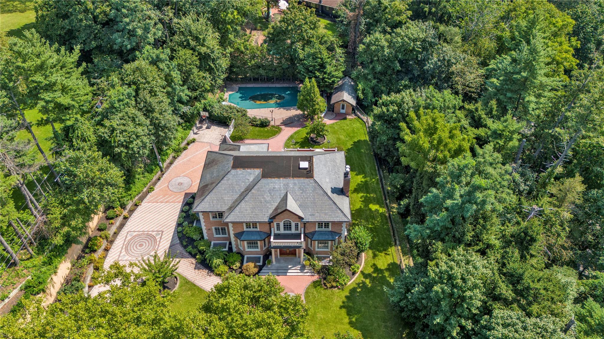 By Appointment Only. Nestled on the private cul-de-sac of Chanticlare Drive in the Village of Flower Hill, this young and gated masterpiece offers a luxury living experience, boasting 5 bedrooms and 4.5 baths with radiant heat throughout. Behind a striking facade with impeccable architectural details and an inviting grand entrance are expansive open concept living areas with soaring ceilings, oversized windows, and abundant natural light. The gourmet kitchen combines traditional style with contemporary convenience. It includes high-end appliances, ample cabinetry, and a breakfast room with views of the lush, landscaped garden. The large adjacent family room is perfect for entertaining and gatherings. The primary suite features a luxurious bath and large walk-in closets. Four additional bedrooms and 3.5 baths offer ample space. This residence is the epitome of an entertainer's paradise, featuring a beautifully finished lower level equipped with a wet bar, movie room, and a home gym. The spacious driveway leads to a 2-car attached garage. Outside, you will discover an outdoor swimming pool surrounded by lush greenery, offering a private retreat for relaxation and leisure. The meticulously maintained grounds include a private backyard with a serene large deck, perfect for outdoor entertaining or simply enjoying the tranquil surroundings. This magnificent property offers an unparalleled living experience, blending modern design, the tranquility of a private retreat, and proximity to the LIRR. Perfect for those seeking both luxury and seclusion in one of Long Island's most prestigious communities.