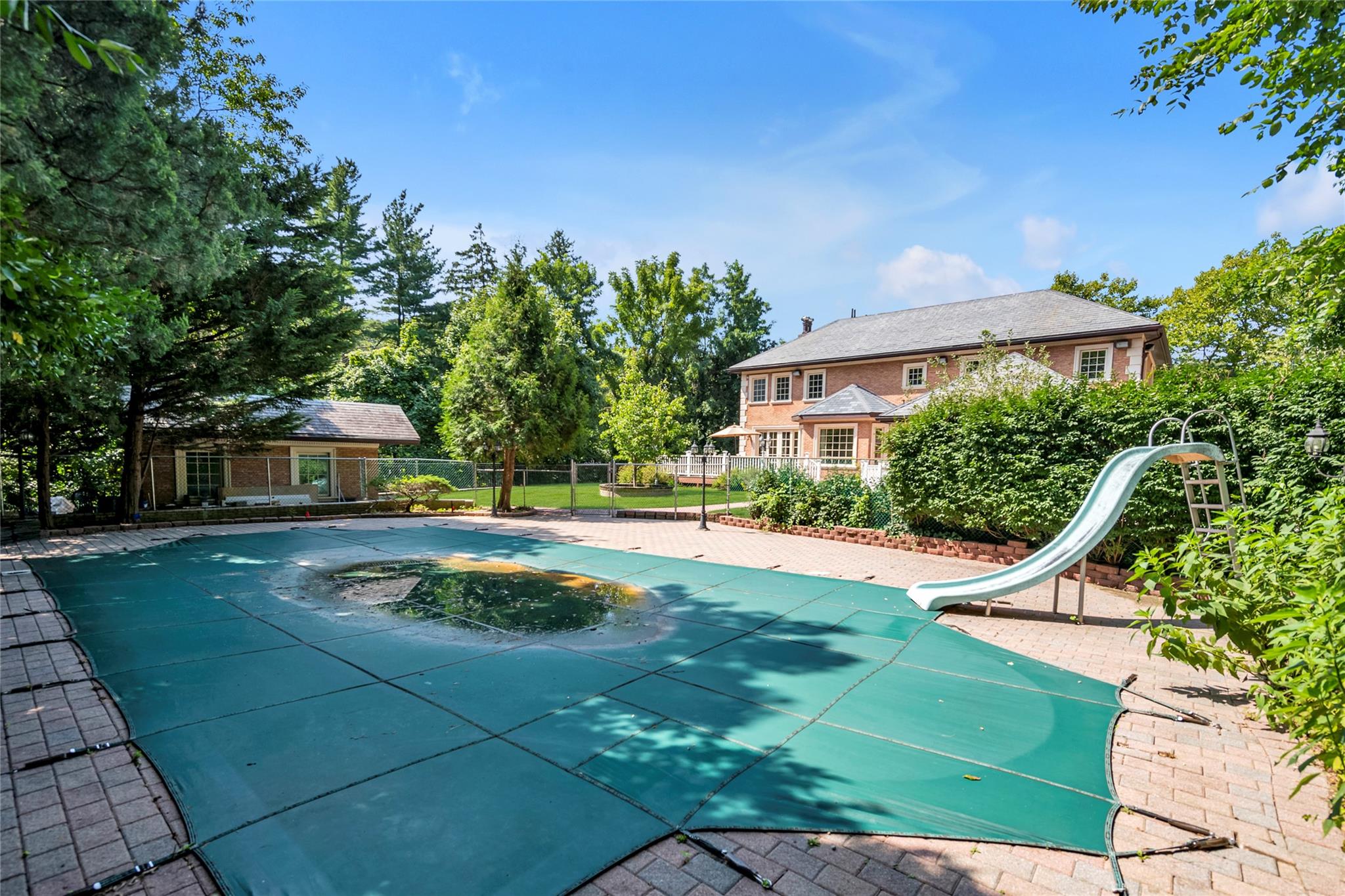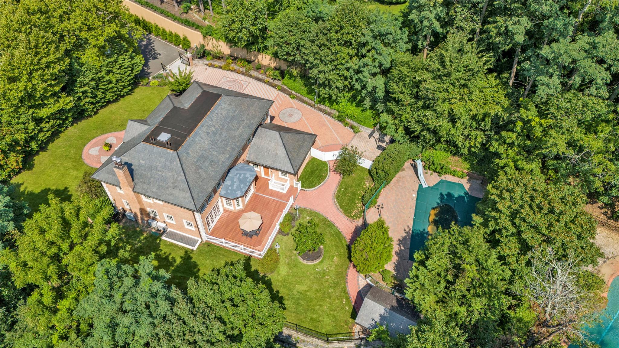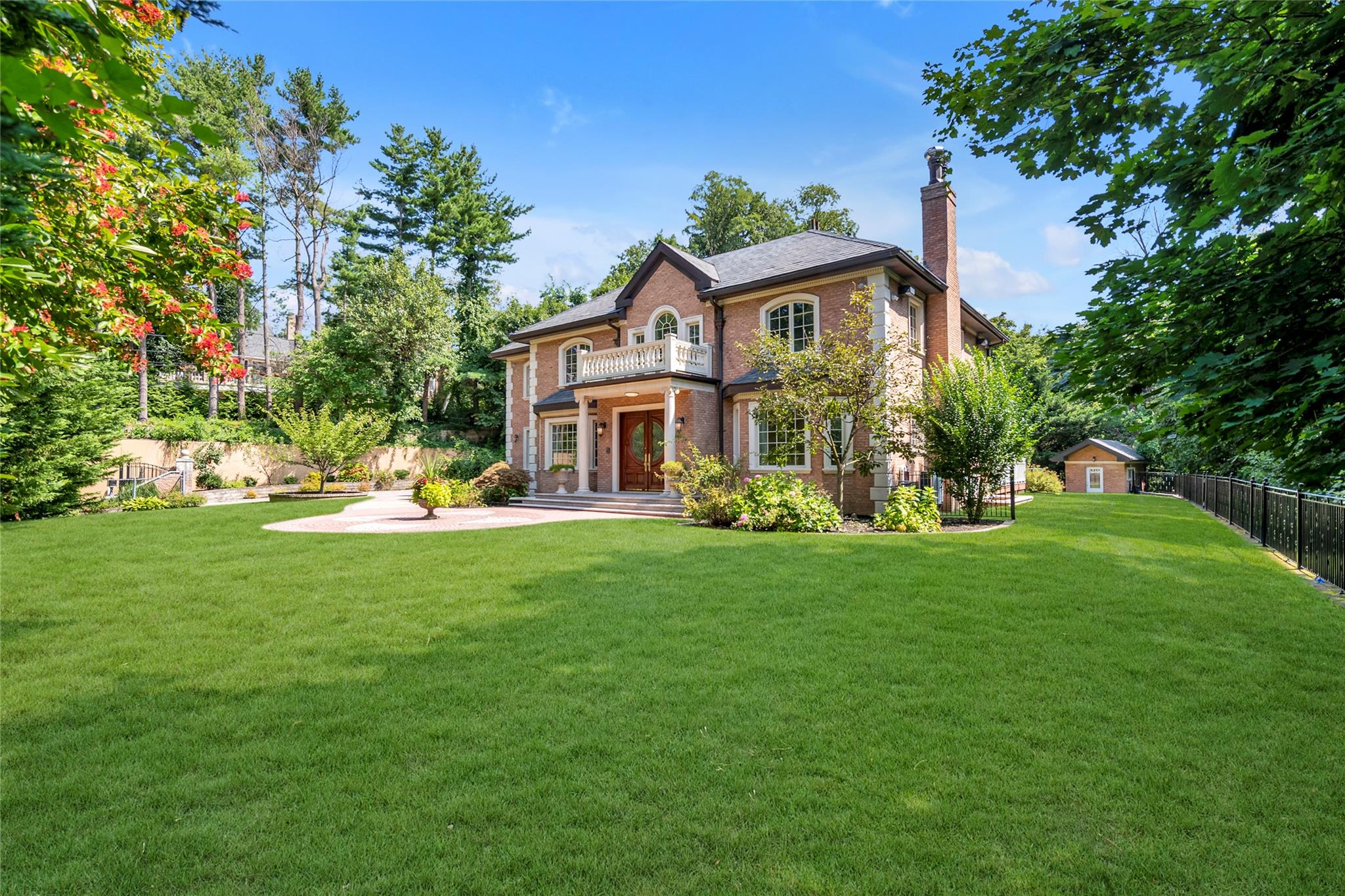 By Appointment Only. Nestled on the private cul-de-sac of Chanticlare Drive in the Village of Flower Hill, this young and gated masterpiece offers a luxury living experience, boasting 5 bedrooms and 4.5 baths with radiant heat throughout. Behind a striking facade with impeccable architectural details and an inviting grand entrance are expansive open concept living areas with soaring ceilings, oversized windows, and abundant natural light. The gourmet kitchen combines traditional style with contemporary convenience. It includes high-end appliances, ample cabinetry, and a breakfast room with views of the lush, landscaped garden. The large adjacent family room is perfect for entertaining and gatherings. The primary suite features a luxurious bath and large walk-in closets. Four additional bedrooms and 3.5 baths offer ample space. This residence is the epitome of an entertainer's paradise, featuring a beautifully finished lower level equipped with a wet bar, movie room, and a home gym. The spacious driveway leads to a 2-car attached garage. Outside, you will discover an outdoor swimming pool surrounded by lush greenery, offering a private retreat for relaxation and leisure. The meticulously maintained grounds include a private backyard with a serene large deck, perfect for outdoor entertaining or simply enjoying the tranquil surroundings. This magnificent property offers an unparalleled living experience, blending modern design, the tranquility of a private retreat, and proximity to the LIRR. Perfect for those seeking both luxury and seclusion in one of Long Island's most prestigious communities.
