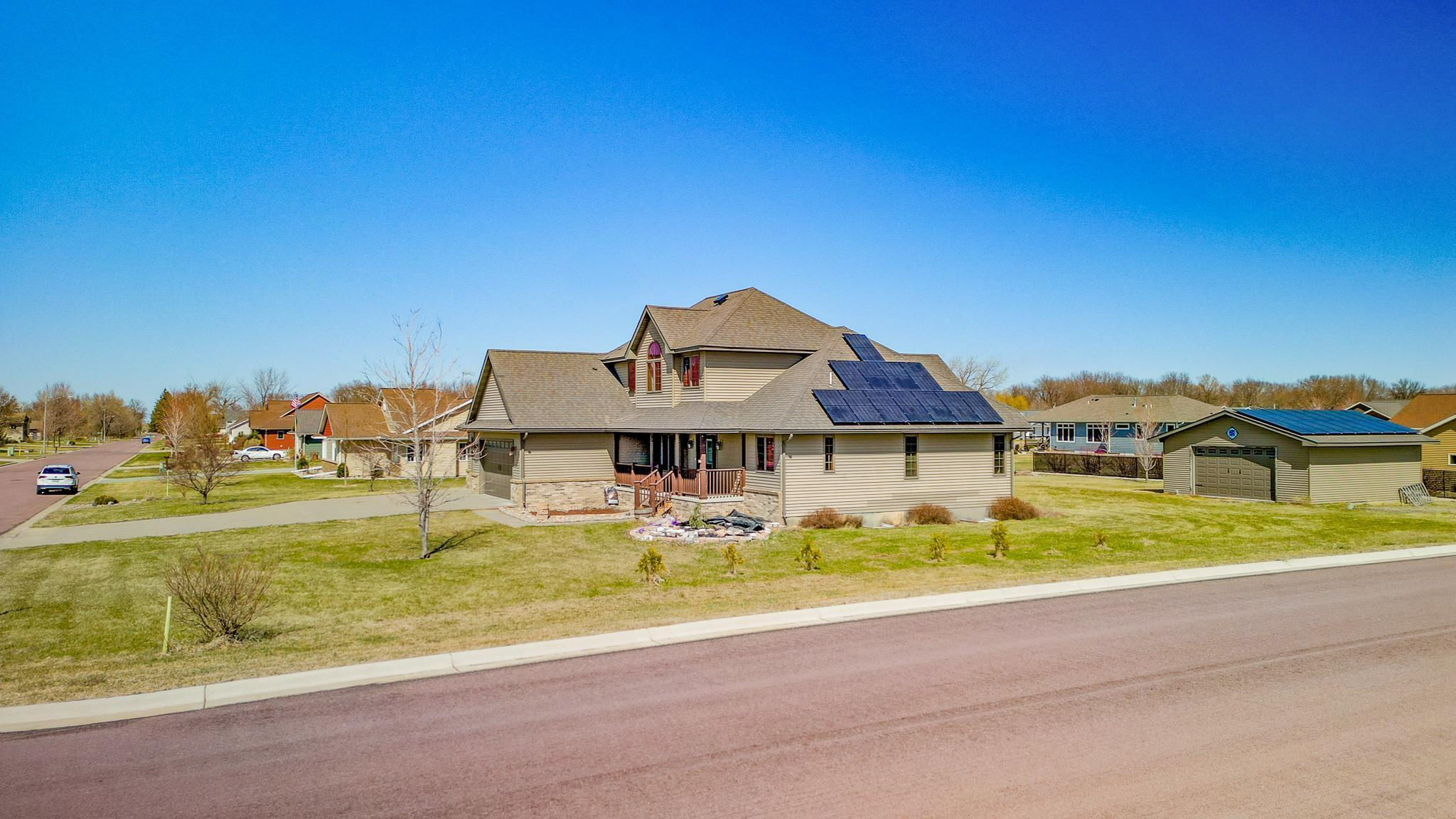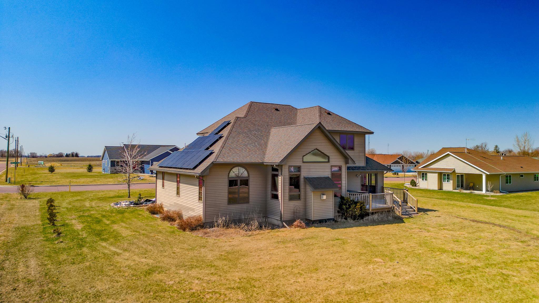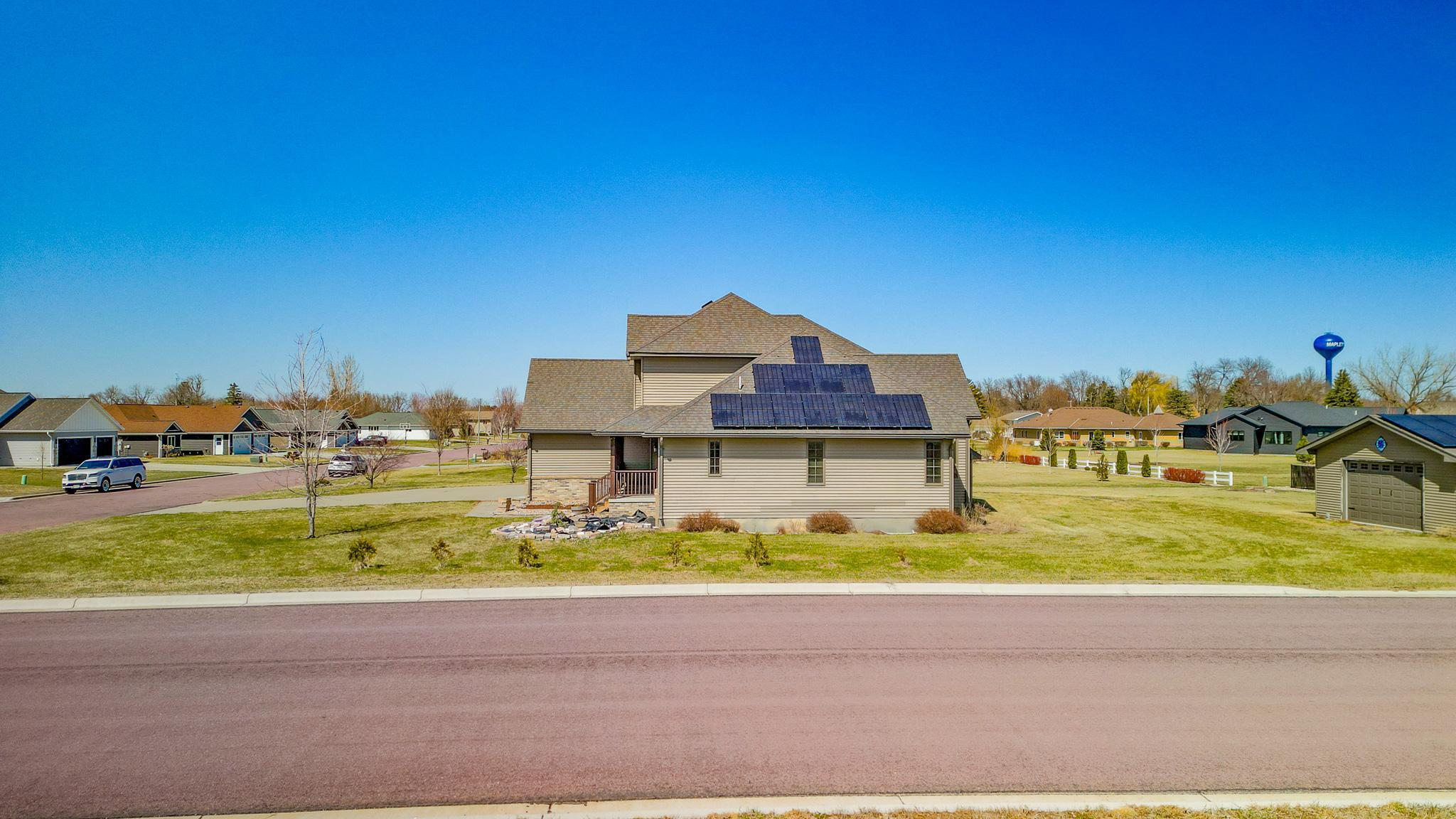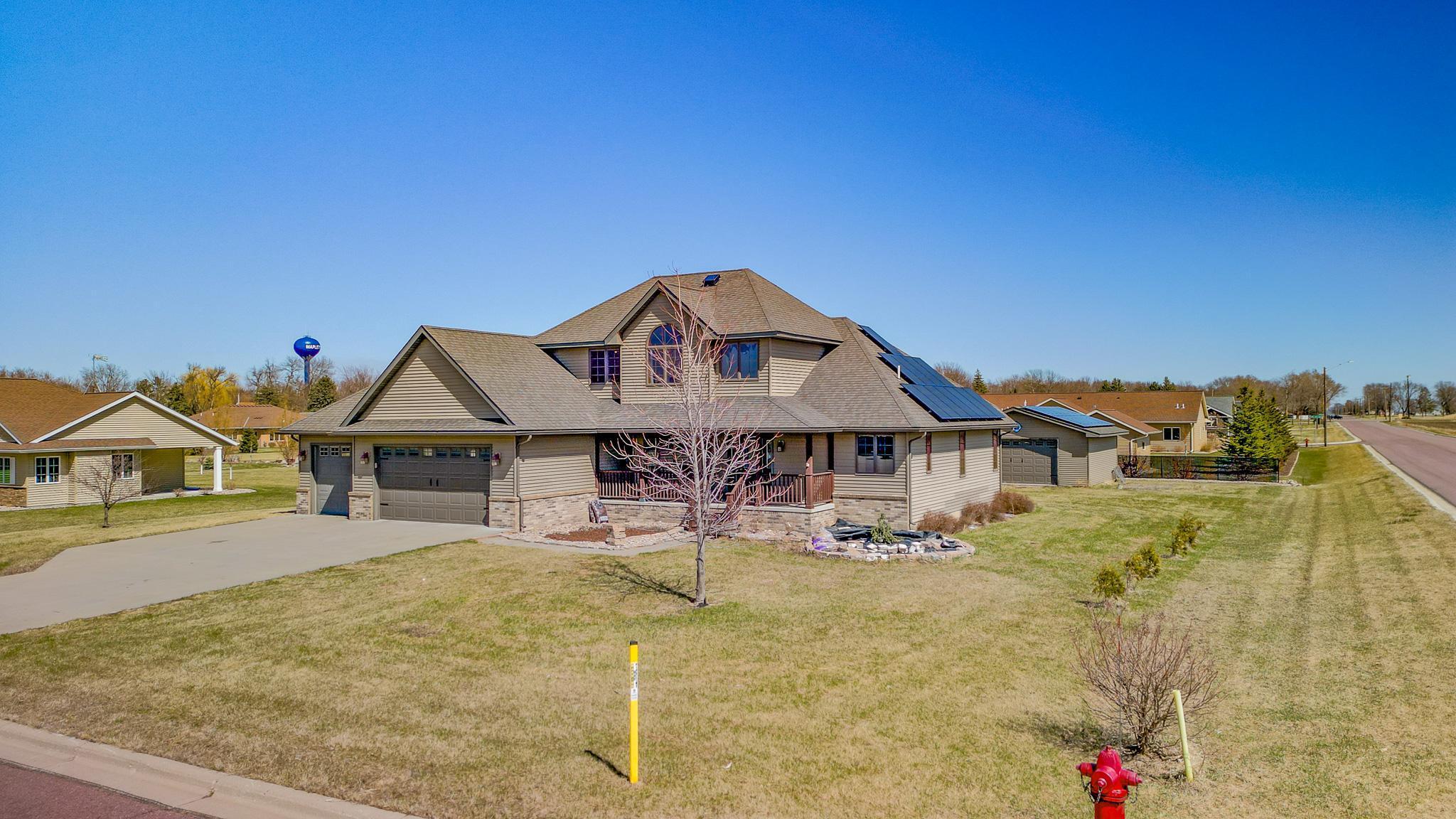 Located walking distance to the new Maple River School, this beautiful home on an oversized lot is just what you are looking for. Stepping in, you will notice the large formal dining room. Walking a bit further and you will be captivated by the soaring great room. The main level primary suite has a separate tub and shower, a 2 sink vanity, and large walk-in closet with custom closet system.Off the great room is the kitchen and informal dining space, walking onto the deck featuring your hot tub. The main floor also has laundry off the garage and a half bath. Upstairs are 3 more bedrooms, one bedroom is vaulted, and a full bathroom. The basement with bedroom, massive rec room and full bathroom is mostly finished and is ready for your final touches. The huge oversized 3 car garage has convenient direct access from the garage to the basement and is roughed in for underfloor heating. There is a handy detached 28 x 24 garage for the toys. The solar panels offset the electrical bill to the point where you will not have a bill most months.
