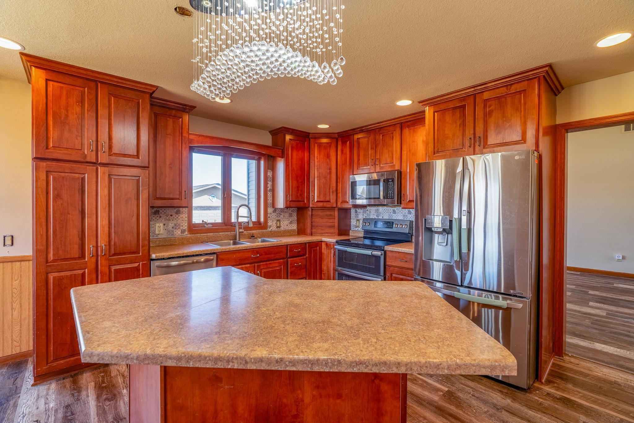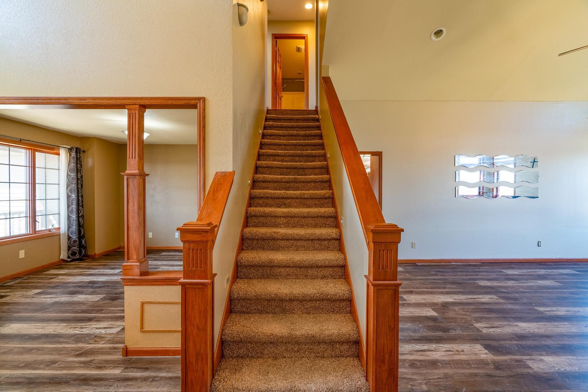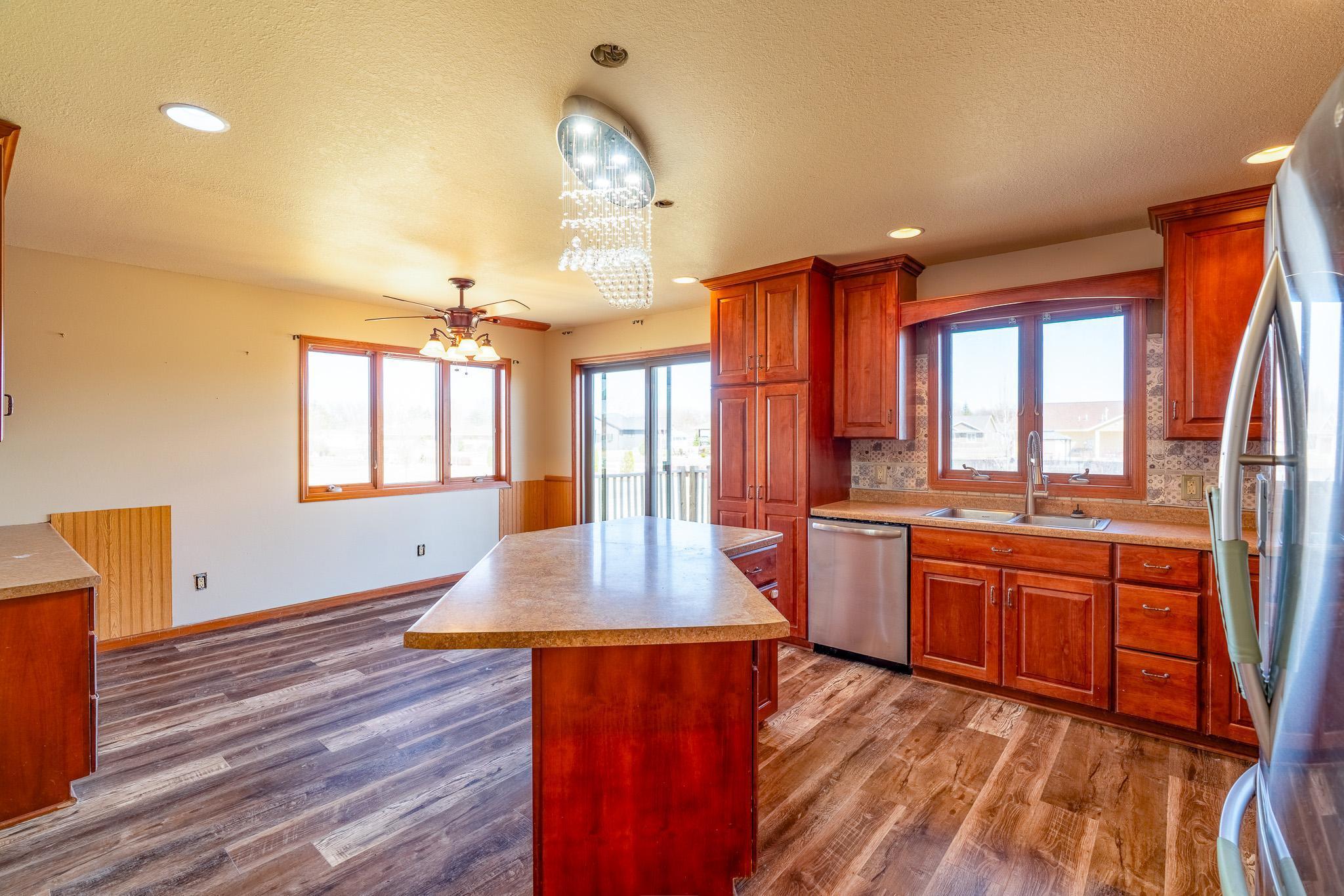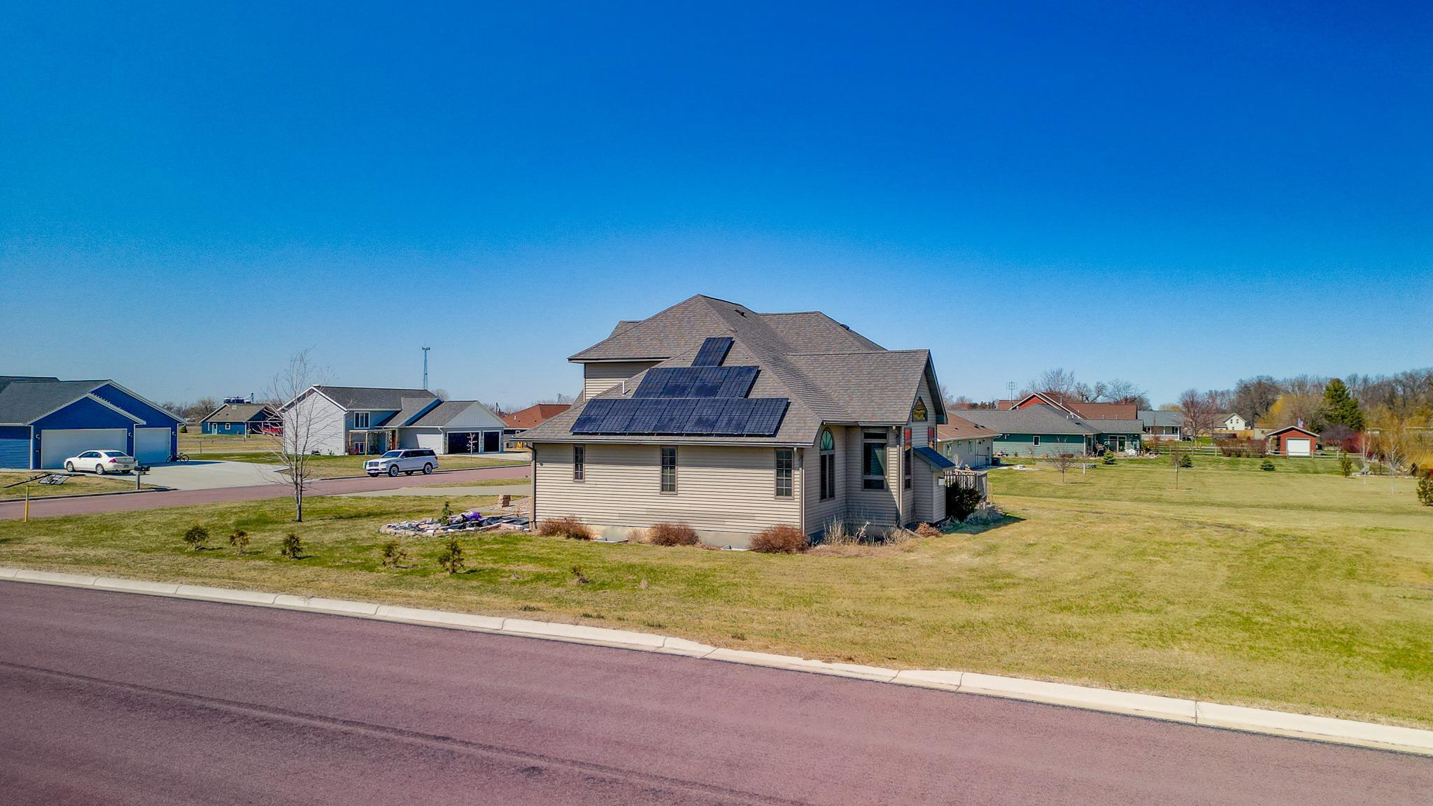 Located walking distance to the new Maple River School, this beautiful home on an oversized lot is just what you are looking for. Stepping in, you will notice the large formal dining room. Walking a bit further and you will be captivated by the soaring great room. The main level primary suite has a separate tub and shower, a 2 sink vanity, and large walk-in closet with custom closet system.Off the great room is the kitchen and informal dining space, walking onto the deck featuring your hot tub. The main floor also has laundry off the garage and a half bath. Upstairs are 3 more bedrooms, one bedroom is vaulted, and a full bathroom. The basement with bedroom, massive rec room and full bathroom is mostly finished and is ready for your final touches. The huge oversized 3 car garage has convenient direct access from the garage to the basement and is roughed in for underfloor heating. There is a handy detached 28 x 24 garage for the toys. The solar panels offset the electrical bill to the point where you will not have a bill most months.