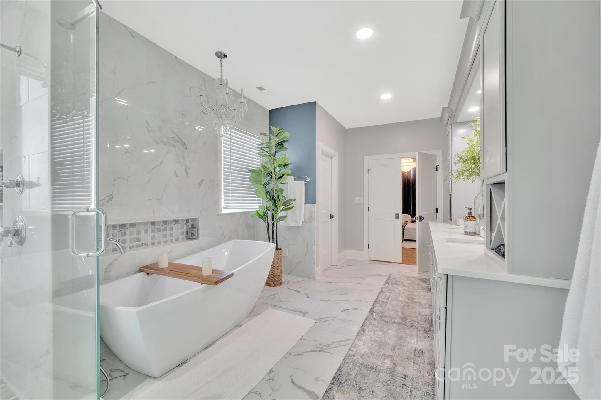 The main-level primary suite feels like a retreat, with lake views, a private stone patio, dual walk-in closets, and a spa-inspired bath with soaking tub, dual vanities, and a rain shower. Additional bedrooms, a large bonus room, and a versatile office/studio provide flexibility for every need.