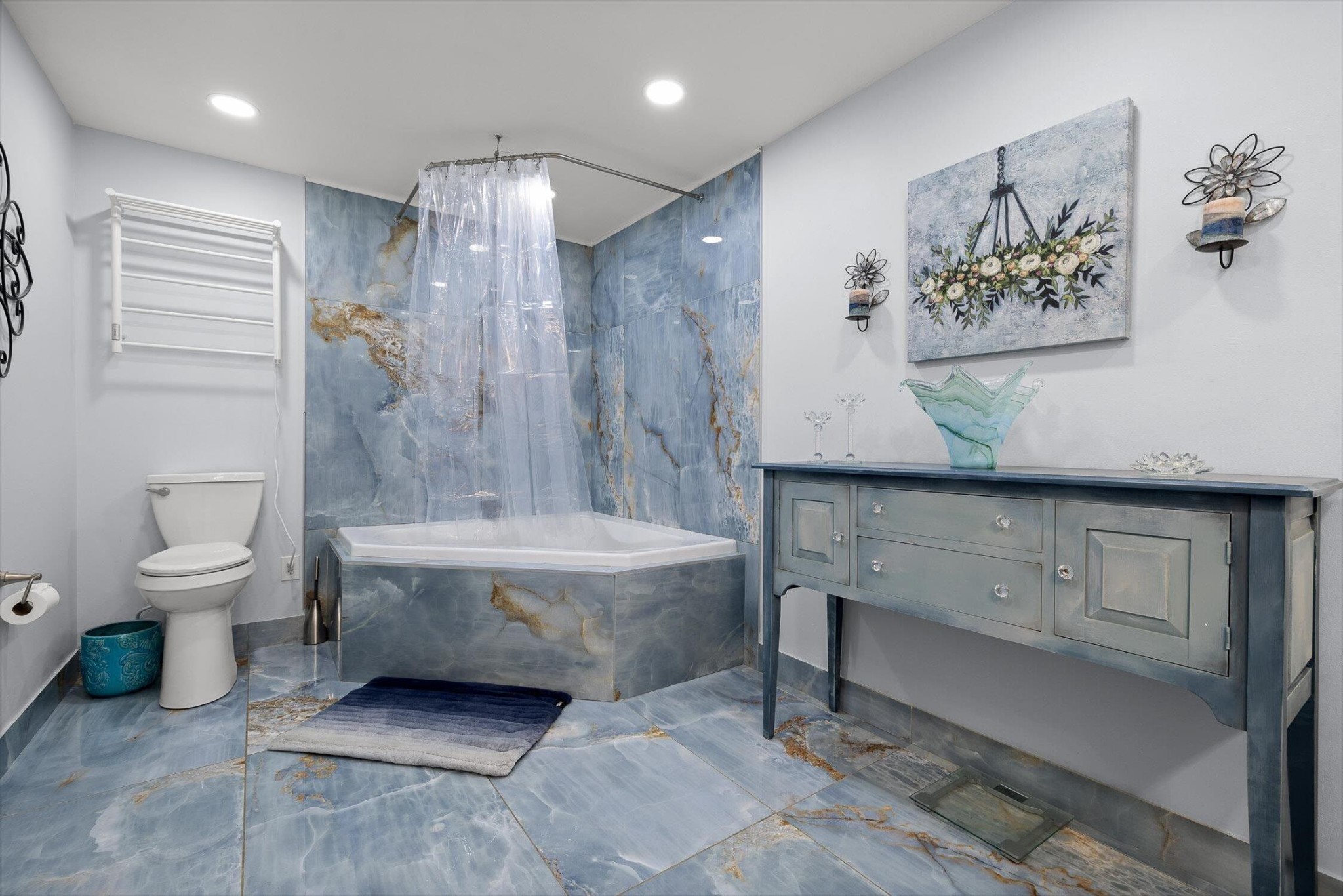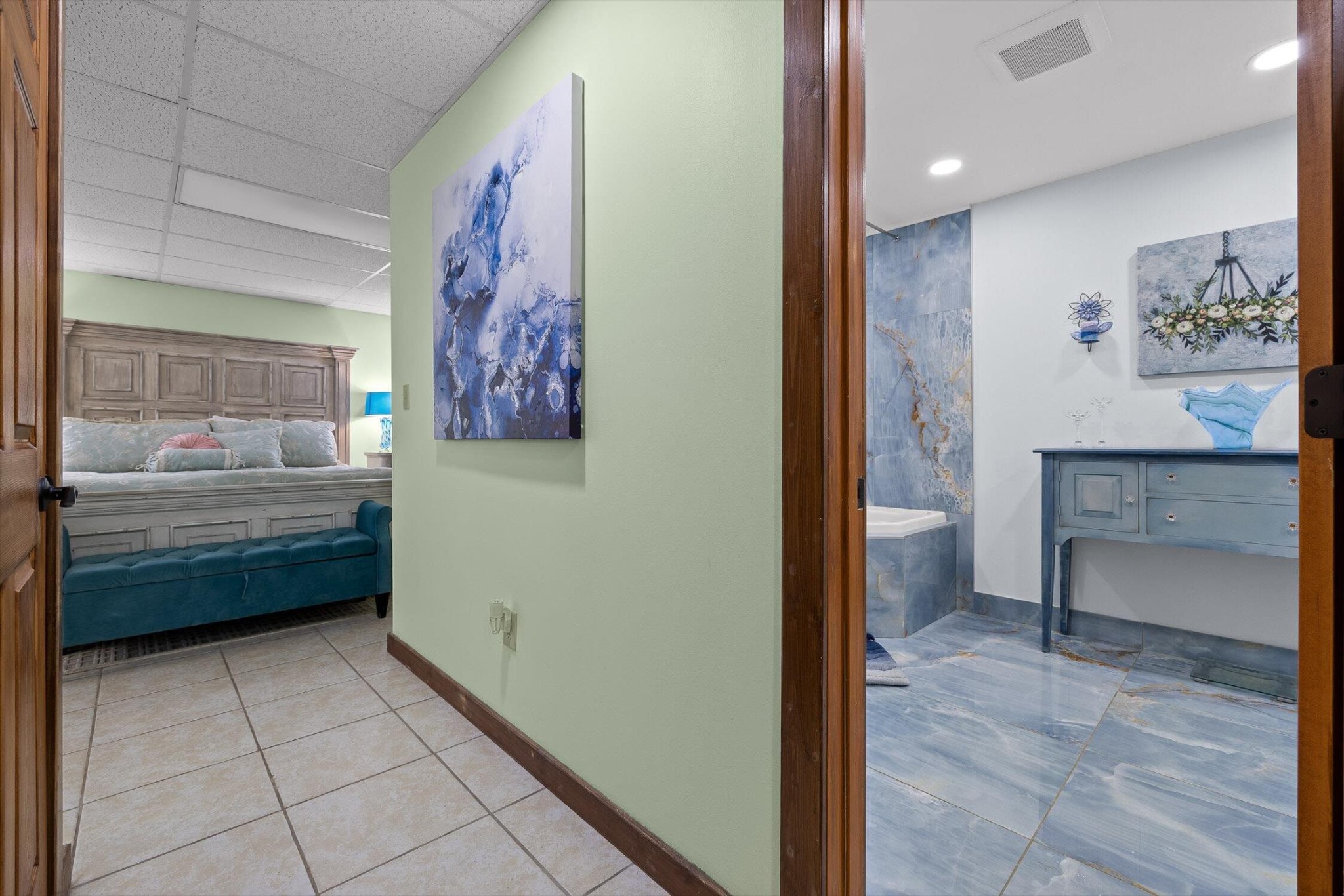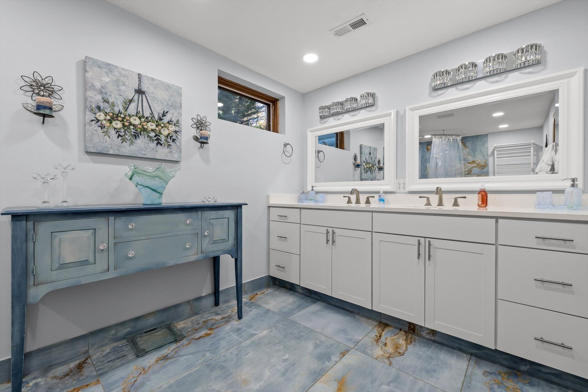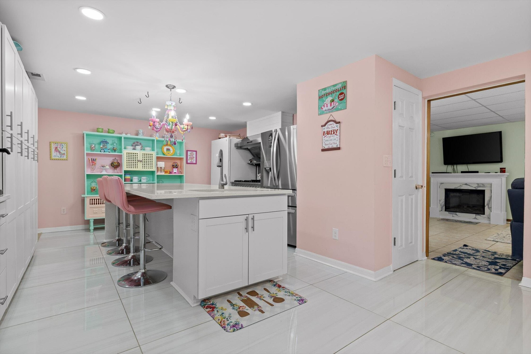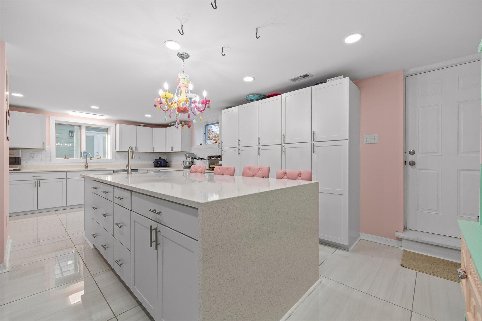 The main home features five bedrooms and four bathrooms, showcasing warm wood finishes, vaulted ceilings, and the timeless charm of exposed beams. With three full kitchens, the layout offers incredible flexibility for hosting, extended family, or rental opportunities.