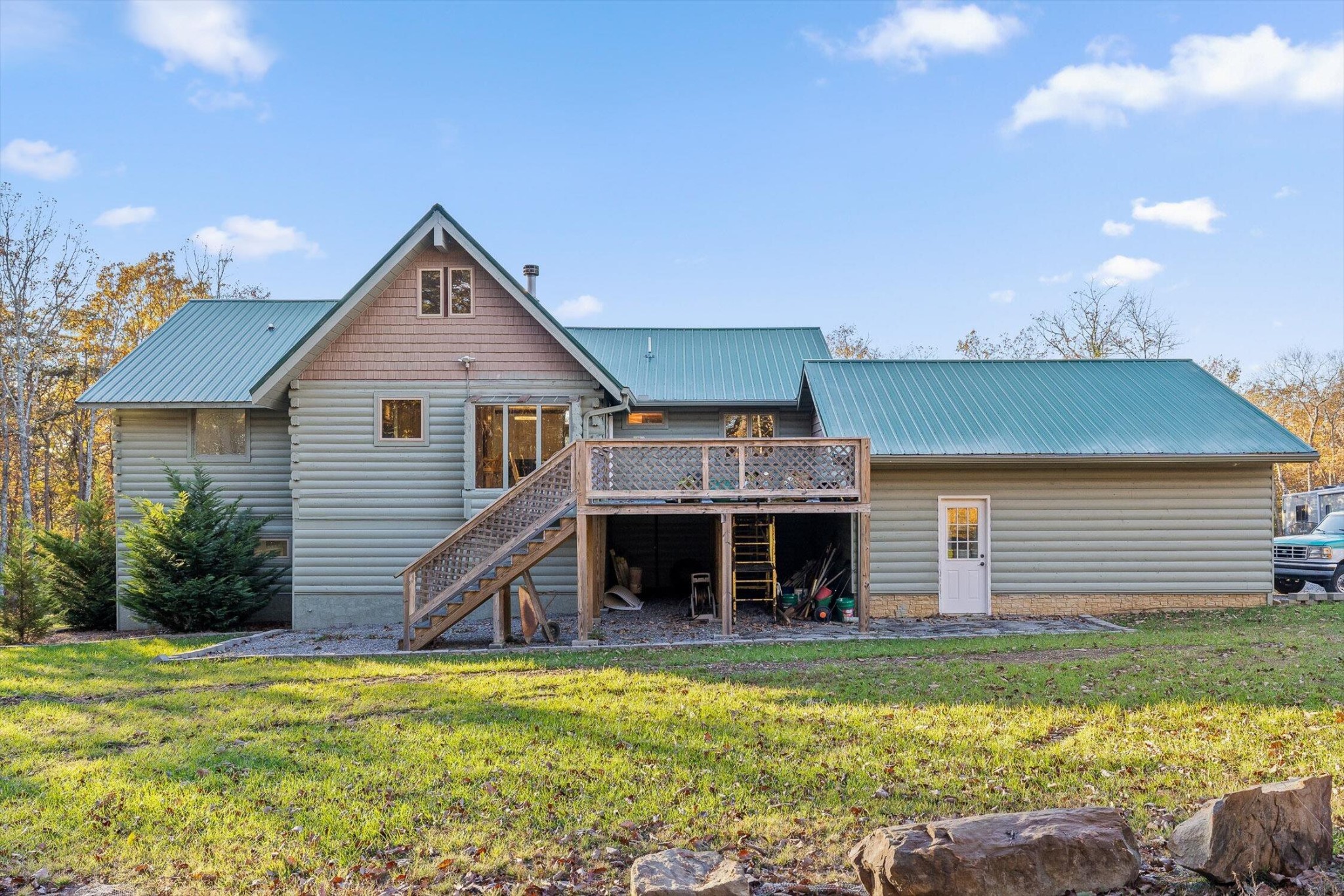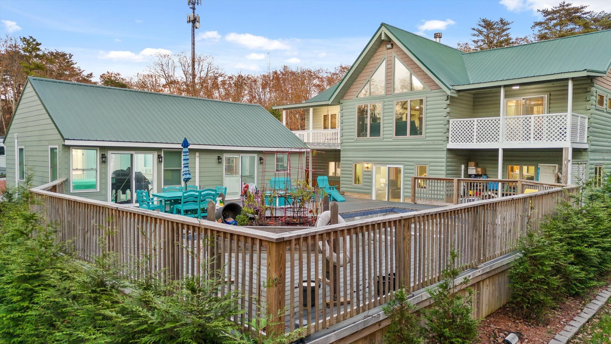 Multiple expansive decks provide ideal spaces for outdoor living, while the in-ground pool, just needing a quick refresh, is ready to shine again. A separate guest house or living space adds even more value, offering privacy for visitors or potential income.