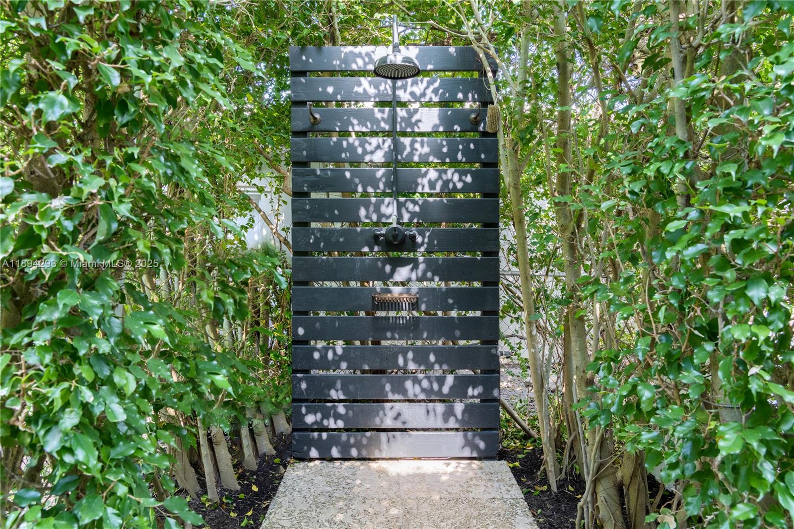 Exterior Features : Barbecue, Deck, Fence, Lighting, OutdoorShower, Porch, Patio