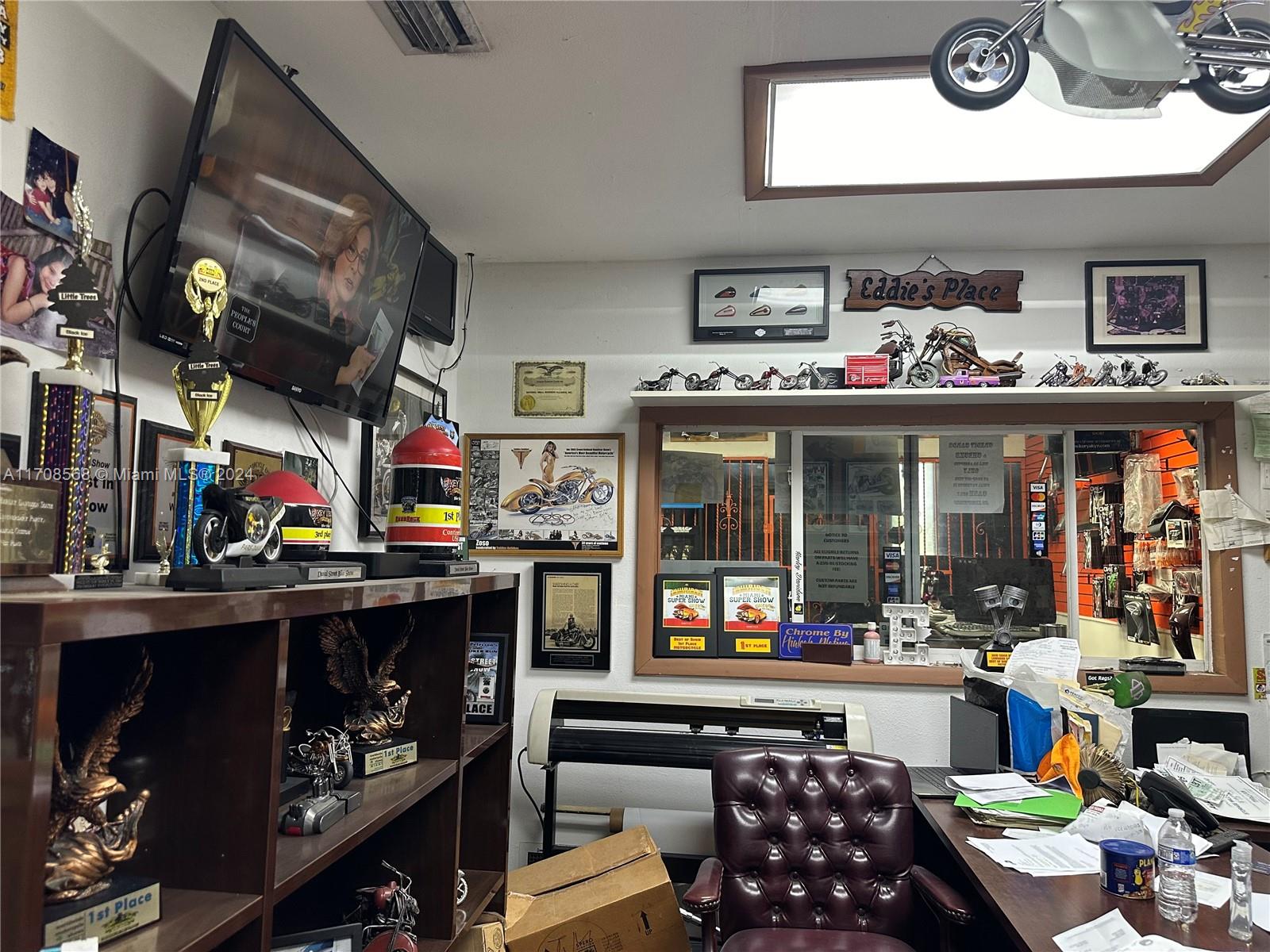 BUSINESS OPPORTUNITY ONLY. Automotive & motorcycle repair, customizing, and parts and accessories sales. Store front and warehouse with office combination. A/C in store, office and work area. No A/C in warehouse. Overhang door is 12 ft high x 10f ft wide. Entry by the store front and back of warehouse. Established in 1988 with loyal clients. Located near Tamiami Executive Airport, high traffic streets and 874 Highway. Permits and licenses are up to date. Equipment/machinery are included. 1 car lift and 4 motorcycle lifts. Inventory lists available upon request. Exterior shutters and bars. A fully ready business dream come true.