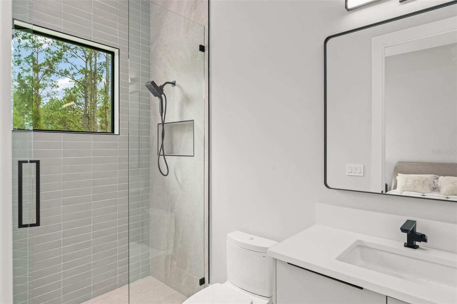 Across the courtyard, private wellness and guest suite provides incredible flexibility with a full in-law suite including an ensuite bath, a private gym, a sauna with indoor shower, a full kitchen (no oven), and lounge space—all with direct access to the pool and a private outdoor shower.
