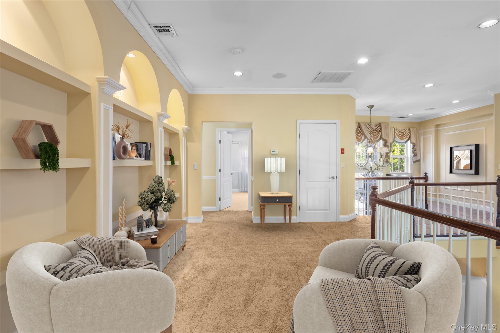 Welcome to this fabulous 5-bedroom, 4.5-bathroom luxury residence located in the highly sought-after Hamlet at Mount Sinai – a prestigious, gated community known for its beautifully maintained grounds, resort-style amenities, and exceptional quality of life on Long Island's North Shore. Spanning approximately 3,500 square feet, this meticulously designed home offers an ideal blend of sophistication and comfort. The primary suite features a spacious en suite bathroom and is thoughtfully appointed with custom finishes that provide a peaceful and private retreat. The heart of the home is a chef’s eat-in kitchen, equipped with granite countertops, rich cherry cabinets, stainless steel appliances, and a large center island, perfect for culinary creations and casual gatherings. A formal dining room offers an elegant space for entertaining, while custom paint, detailed molding, and built-ins add distinctive character throughout. Soaring ceilings, recessed lighting, and gleaming hardwood floors enhance the sense of openness and luxury. The home also includes a first-floor guest bedroom with full bath, ideal for visitors or multi-generational living. The fully finished basement features tile flooring, egress windows, a full bath, wet bar, built in bookshelves and flexible space that can accommodate a variety of uses, from a media room to a home gym or office. Set within the private and tranquil setting of The Hamlet, this residence offers access to an exclusive lifestyle complete with a community clubhouse, pool, tennis courts, and more. This is a rare opportunity to own a truly exceptional home in one of Mount Sinai’s most desirable communities. Schedule your private tour today.