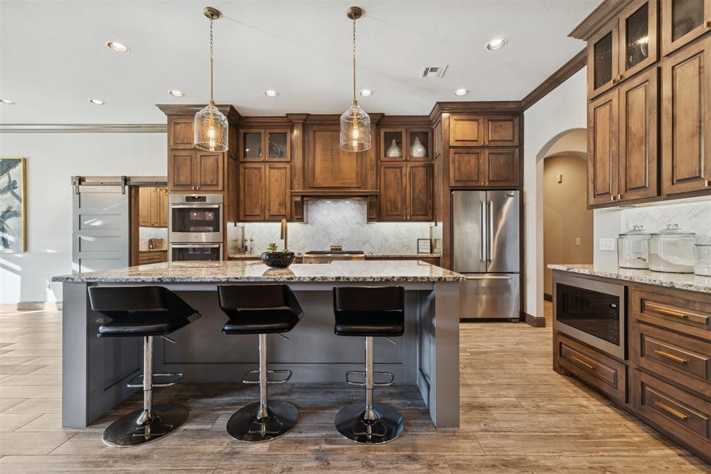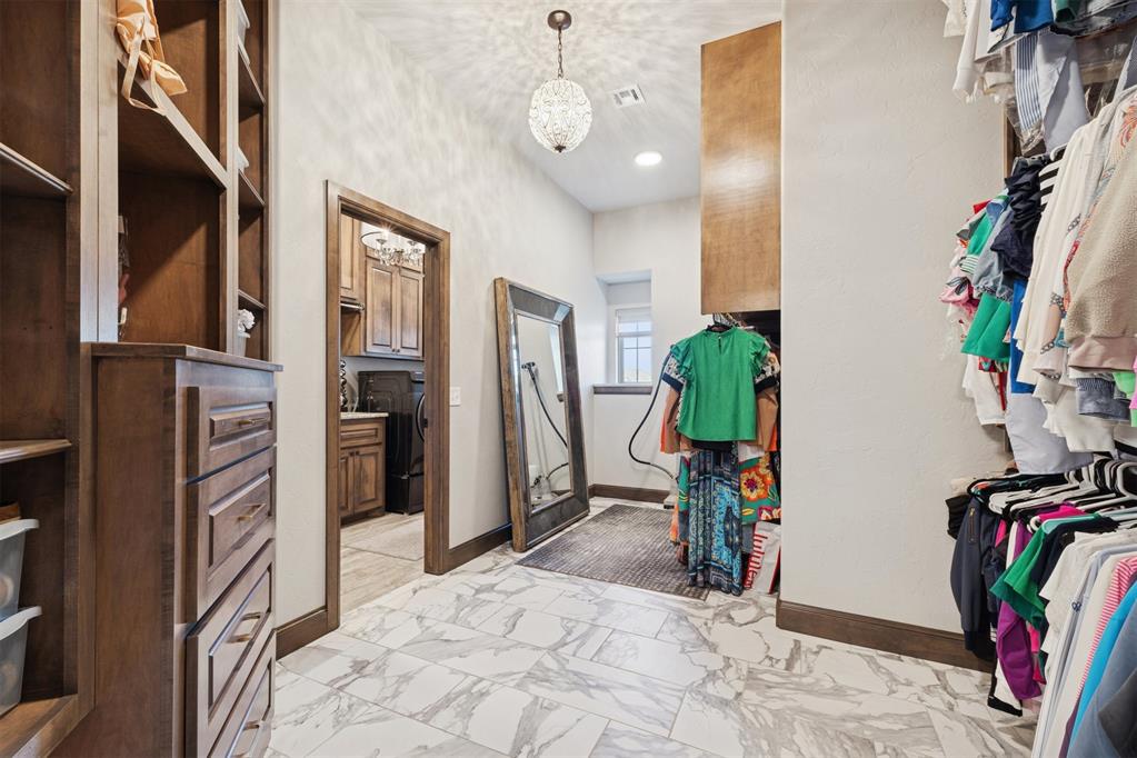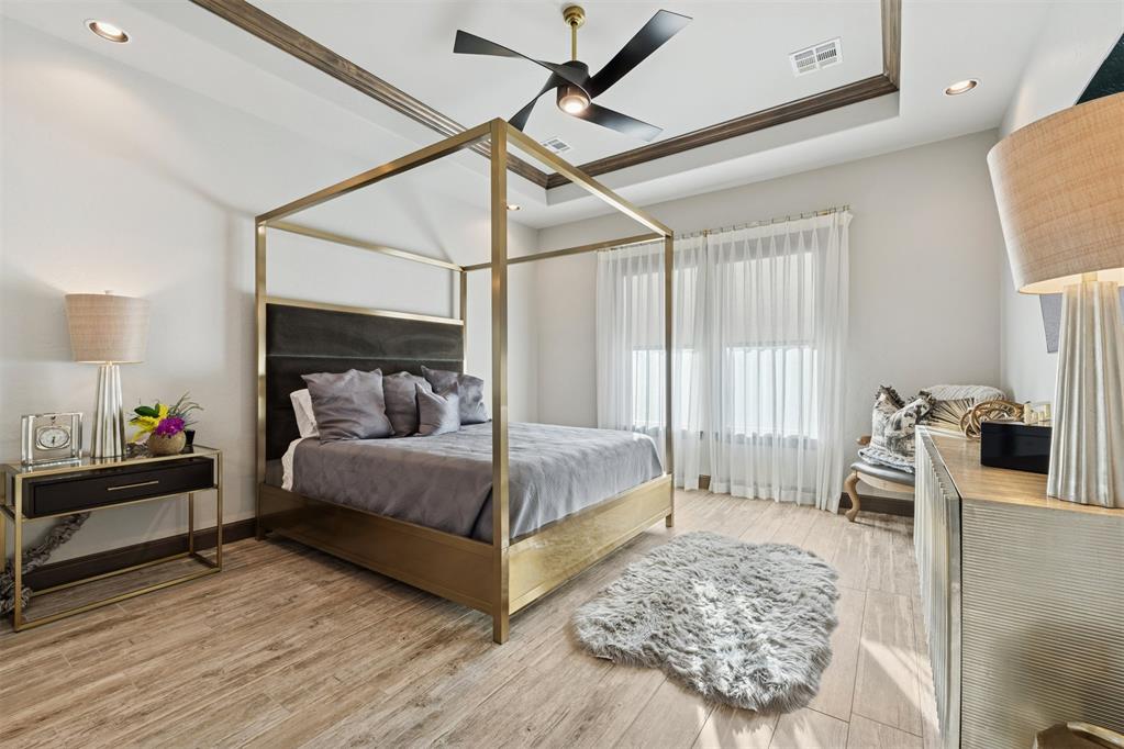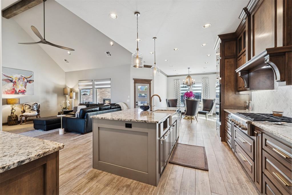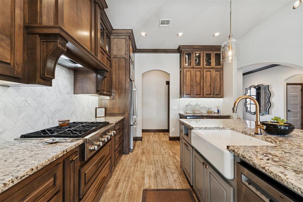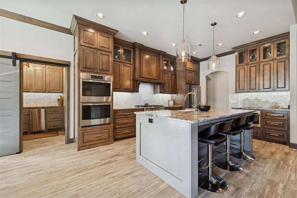 Exquisite luxury residence nestled within one of the area’s most prestigious gated communities, featuring a golf practice area, fishing ponds, walking trails and an abundance of breathtaking landscaping. This meticulously maintained home sits on an oversized corner lot with exceptional curb appeal and a circular driveway that provides abundant parking for guests and family alike. Timeless wood-look tile flooring flows seamlessly throughout the main level, offering both beauty and durability. The chef’s kitchen is a standout, featuring a commercial-grade 6-burner cooktop, double ovens, a large island, and stunning cabinetry. Adjacent is an incredible walk-in pantry with custom floor-to-ceiling storage that will delight even the most organized buyer. Flexible floor plan includes an upstairs bonus room that can easily function as a 5th bedroom, media room, home theater, or private guest suite. The secondary bedrooms are generously sized and share a well-appointed Jack-and-Jill bathroom with private vanities for each room. The downstairs main suite is a true retreat, boasting a spa-like bath with deep soaking tub, oversized European-style walk-in shower, dual vanities, and ceiling-high storage. The enormous main closet conveniently connects directly to the laundry room for ultimate convenience. Outdoor entertainment is elevated with a spacious covered patio complete with fireplace, perfect for year-round enjoyment, all set on a generous lot with room for a pool. Extensively upgraded with a whole-home generator, in-ground storm shelter, water softener system, oversized insulated garage and many additional high-end features that elevate comfort, safety, and convenience. You must see to believe it so schedule your private showing today.