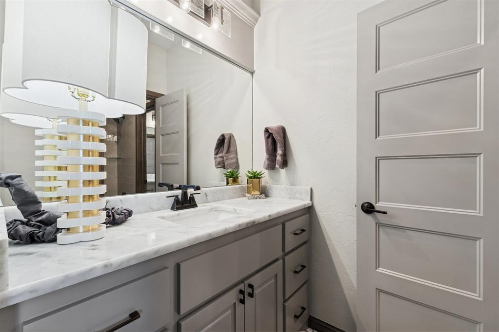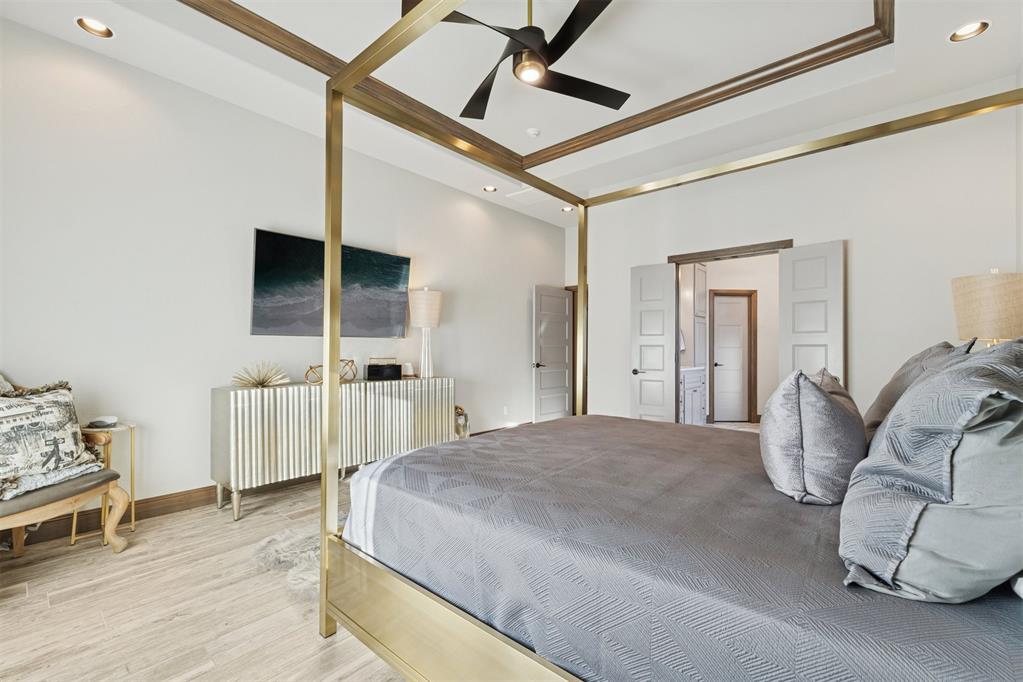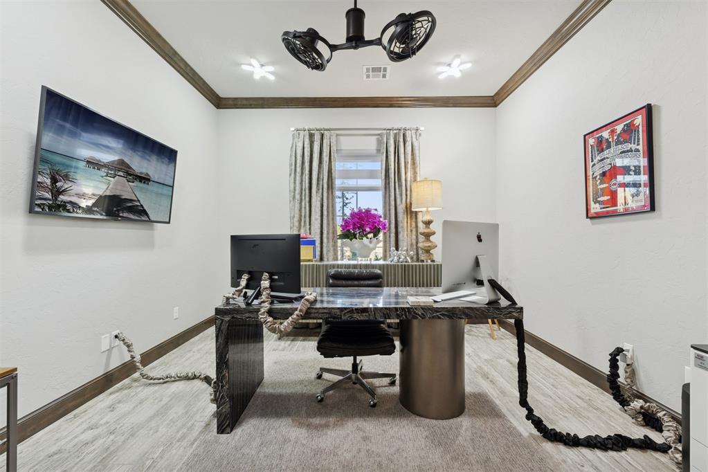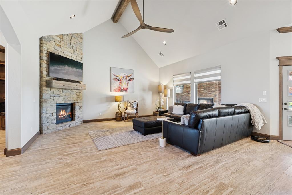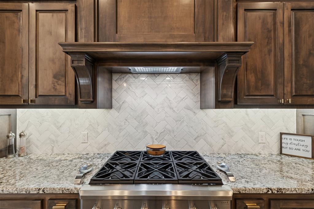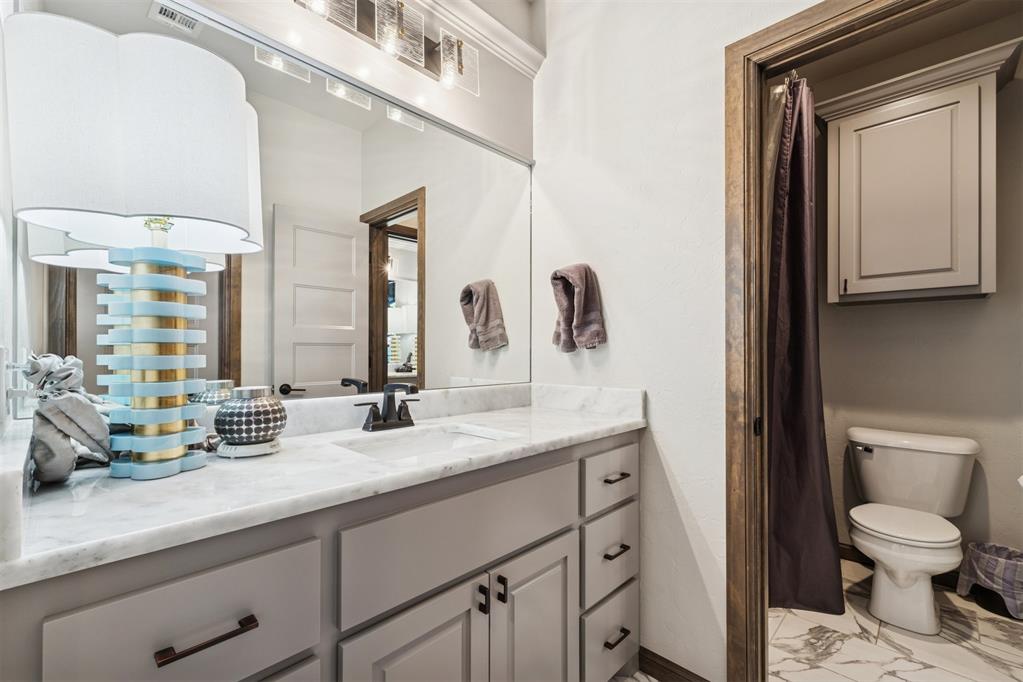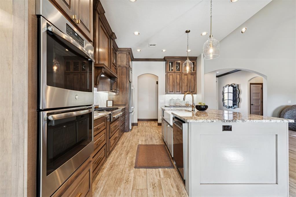 Exquisite luxury residence nestled within one of the area’s most prestigious gated communities, featuring a golf practice area, fishing ponds, walking trails and an abundance of breathtaking landscaping. This meticulously maintained home sits on an oversized corner lot with exceptional curb appeal and a circular driveway that provides abundant parking for guests and family alike. Timeless wood-look tile flooring flows seamlessly throughout the main level, offering both beauty and durability. The chef’s kitchen is a standout, featuring a commercial-grade 6-burner cooktop, double ovens, a large island, and stunning cabinetry. Adjacent is an incredible walk-in pantry with custom floor-to-ceiling storage that will delight even the most organized buyer. Flexible floor plan includes an upstairs bonus room that can easily function as a 5th bedroom, media room, home theater, or private guest suite. The secondary bedrooms are generously sized and share a well-appointed Jack-and-Jill bathroom with private vanities for each room. The downstairs main suite is a true retreat, boasting a spa-like bath with deep soaking tub, oversized European-style walk-in shower, dual vanities, and ceiling-high storage. The enormous main closet conveniently connects directly to the laundry room for ultimate convenience. Outdoor entertainment is elevated with a spacious covered patio complete with fireplace, perfect for year-round enjoyment, all set on a generous lot with room for a pool. Extensively upgraded with a whole-home generator, in-ground storm shelter, water softener system, oversized insulated garage and many additional high-end features that elevate comfort, safety, and convenience. You must see to believe it so schedule your private showing today.