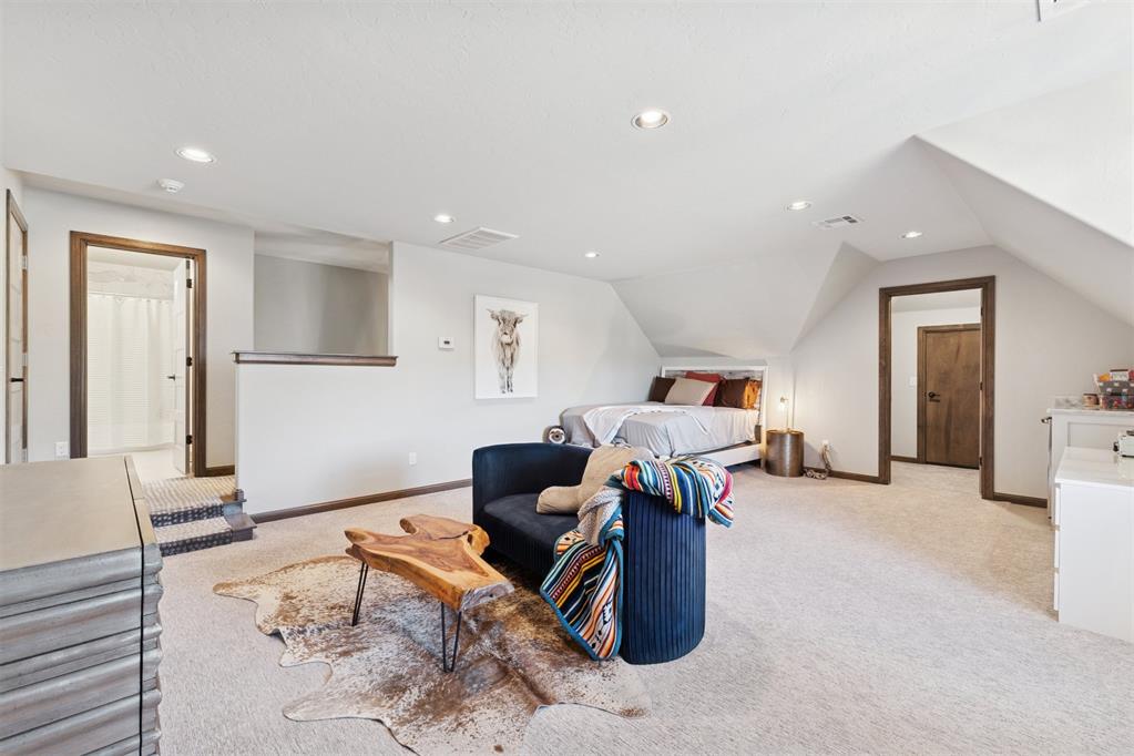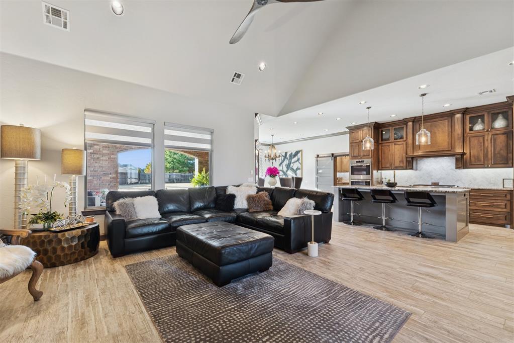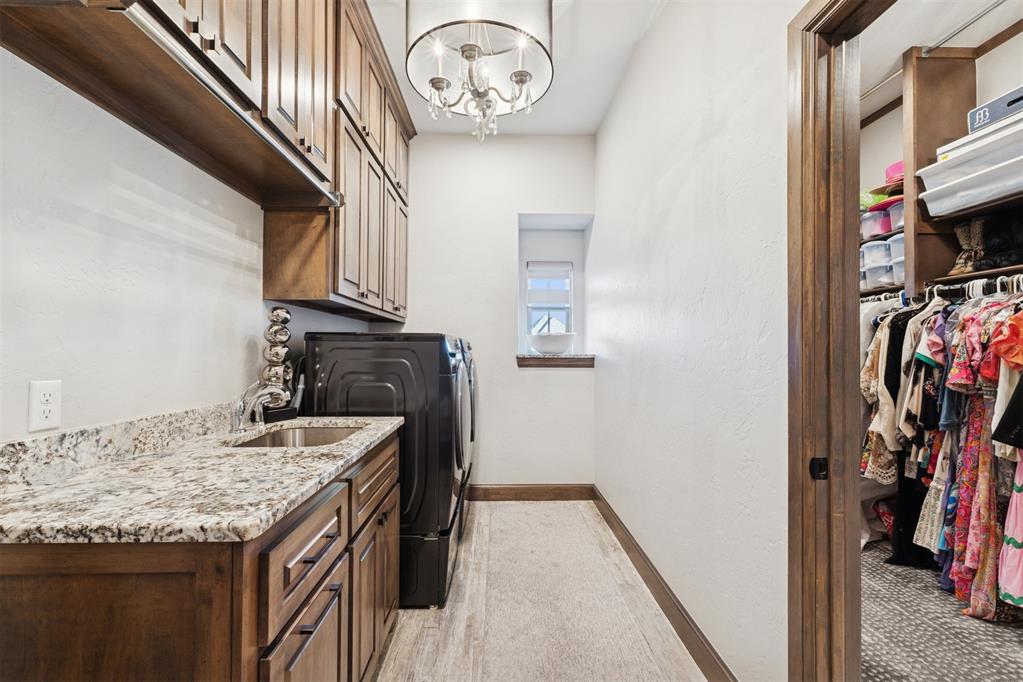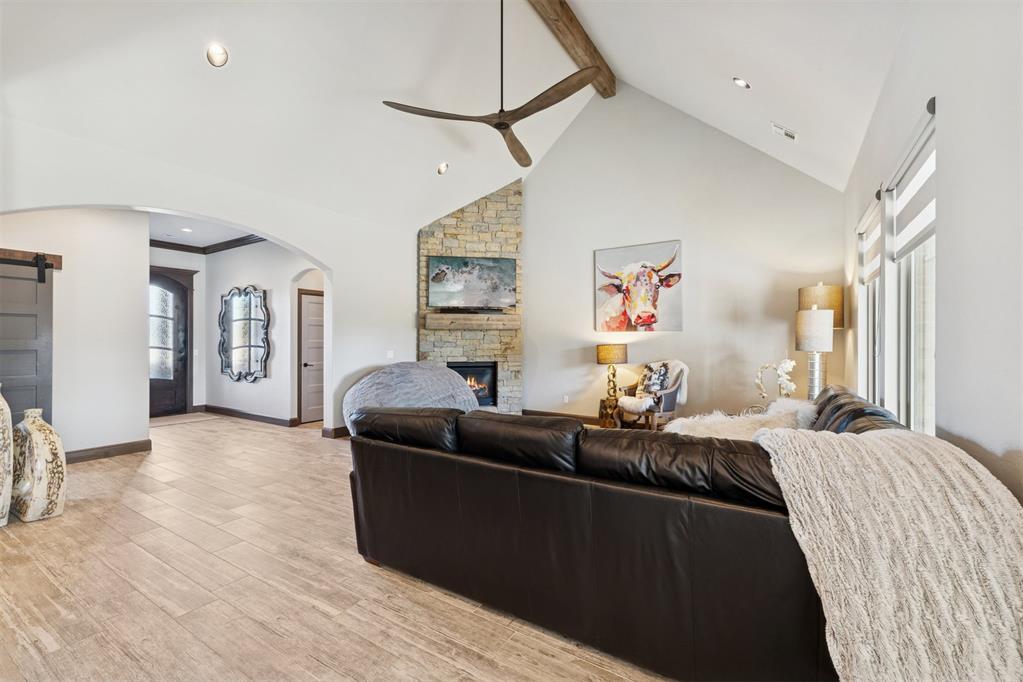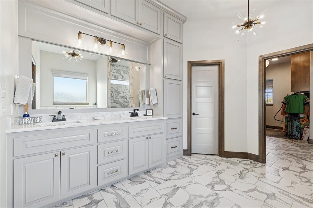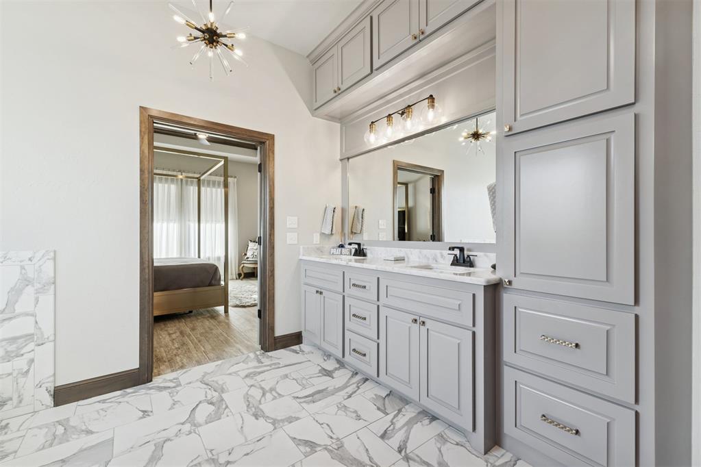 Exquisite luxury residence nestled within one of the area’s most prestigious gated communities, featuring a golf practice area, fishing ponds, walking trails and an abundance of breathtaking landscaping. This meticulously maintained home sits on an oversized corner lot with exceptional curb appeal and a circular driveway that provides abundant parking for guests and family alike. Timeless wood-look tile flooring flows seamlessly throughout the main level, offering both beauty and durability. The chef’s kitchen is a standout, featuring a commercial-grade 6-burner cooktop, double ovens, a large island, and stunning cabinetry. Adjacent is an incredible walk-in pantry with custom floor-to-ceiling storage that will delight even the most organized buyer. Flexible floor plan includes an upstairs bonus room that can easily function as a 5th bedroom, media room, home theater, or private guest suite. The secondary bedrooms are generously sized and share a well-appointed Jack-and-Jill bathroom with private vanities for each room. The downstairs main suite is a true retreat, boasting a spa-like bath with deep soaking tub, oversized European-style walk-in shower, dual vanities, and ceiling-high storage. The enormous main closet conveniently connects directly to the laundry room for ultimate convenience. Outdoor entertainment is elevated with a spacious covered patio complete with fireplace, perfect for year-round enjoyment, all set on a generous lot with room for a pool. Extensively upgraded with a whole-home generator, in-ground storm shelter, water softener system, oversized insulated garage and many additional high-end features that elevate comfort, safety, and convenience. You must see to believe it so schedule your private showing today.