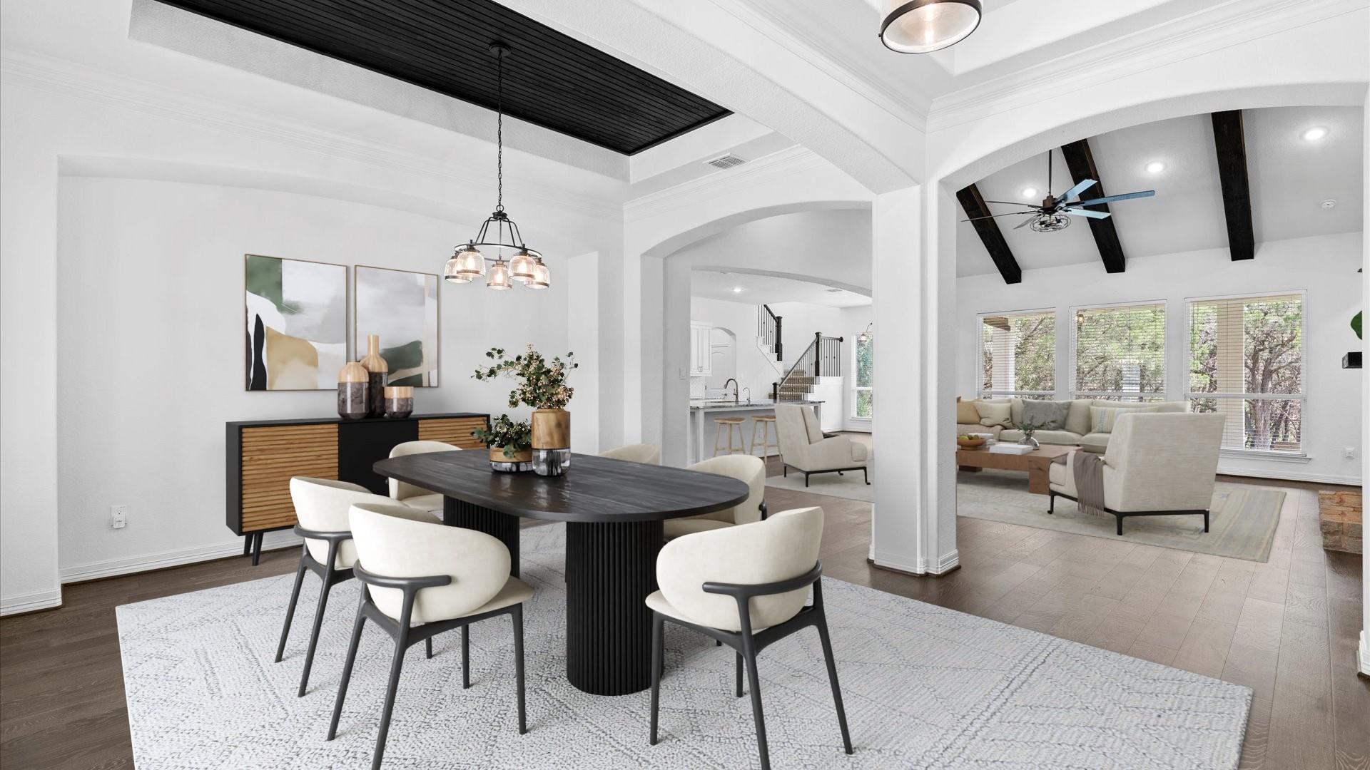 Nestled on nearly an acre and a half in the gated community of The Preserve at Mission Valley, this stunning Hill Country home offers the perfect balance of luxury, comfort, and timeless design. The two-story layout is thoughtfully planned, with the spacious primary suite and three additional bedrooms located on the main level, while a large upstairs family room features custom built-ins and a convenient half bath—ideal for a game room, media space, 5th bedroom or home office. At the heart of the home, an expansive open-concept living area features soaring beamed ceilings, a dramatic floor-to-ceiling rock gas fireplace, and oversized windows that flood the space with natural light and offer picturesque views of the backyard. The chef’s kitchen is a dream, complete with a large center island, high-end appliances, custom cabinetry, and abundant counter space. Adjacent to the kitchen are both a formal dining room and a charming breakfast nook, providing multiple options for entertaining and everyday dining. The primary suite is a private retreat with vaulted, beamed ceilings, large windows, and a spa-inspired en-suite bath that includes a jetted garden tub, walk-in shower, dual vanities, and an impressive walk-in closet with built-ins. Two additional full guest baths serve the secondary bedrooms, offering comfort and convenience for family or guests. Step outside to enjoy a generous covered patio with ceiling fans and an additional uncovered area perfect for a hot tub. Among the mature trees in the backyard, you'll find a cozy firepit—perfect for entertaining under the stars. With plenty of room for a private pool and an oversized three-car garage, this home offers space to grow and enjoy. Located just minutes from New Braunfels, Gruene, and the scenic beauty of the Hill Country, this exceptional property combines privacy, elegance, and functionality in one of the area’s most desirable communities.