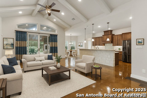 Interior Features : One Living Area, Eat-In Kitchen, Island Kitchen, Breakfast Bar, Walk-In Pantry, Study/Library, Game Room, Media Room, Shop, Utility Room Inside, 1st Floor Lvl/No Steps, High Ceilings, Open Floor Plan, Pull Down Storage, Cable TV Available, High Speed Internet, All Bedrooms Downstairs, Laundry Main Level, Laundry Room, Telephone, Walk in Closets, Attic - Pull Down Stairs