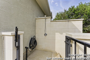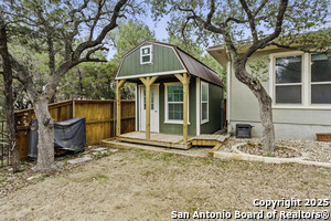 Exterior Features :Patio Slab, Covered Patio, Privacy Fence, Wrought Iron Fence, Partial Fence, Double Pane Windows, Storage Building/Shed, Has Gutters, Mature Trees