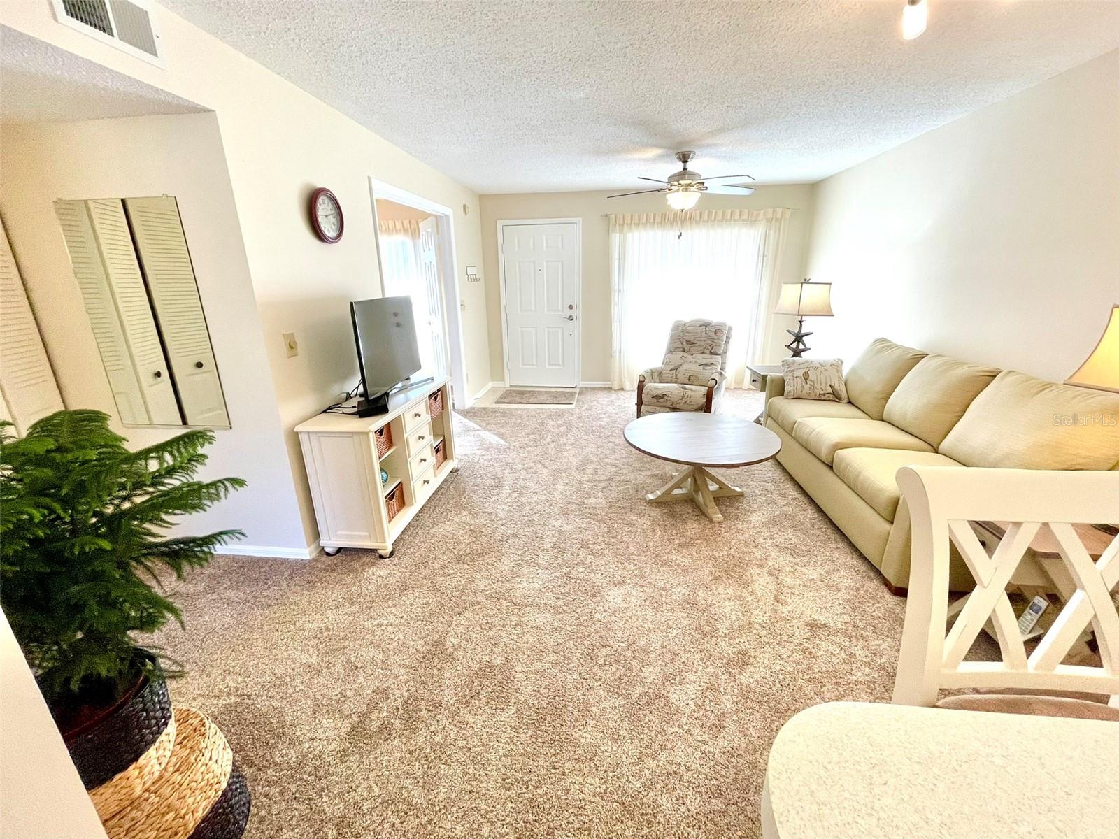 Looking for maintenance free living, in a quiet, second floor condo, only about TEN STEPS from the elevator? Want to live in a gated community in a building that stayed high and dry during the hurricanes of 2024?? Yes please!! Welcome to unit 223 at 4529 Whitton Way!! The building has a NEWER ROOF AND GUTTERS, replaced the end of 2023! This two bedroom, one bath condominium is on the second floor, and is bright and airy and ready for someone new to call it home! Bedrooms are split for privacy, and laundry is just off the kitchen for convenience. Open floorplan makes this condo cozy yet convenient for company. HVAC 2020, Water Heater 2023, New carpeting was installed in 2022!! Dishwasher and fridge just upgraded to stainless!!! WANT TO PURCHASE FURNISHED AND READY TO GO? THIS IS THE PLACE FOR YOU, as that is an option! Condo living means maintenance free living for full time or part time residents. Enjoy your morning coffee on your screened in porch right off the kitchen, then head down to the pool and get some sun! Amenities include two pools, fitness center, library, clubhouse, planned activities, exterior maintenance, grounds maintenance, trash, cable and internet! Gated community as well, for that extra level of security. The community is very active and has lots of planned activities for residents on a regular basis. This building DOES have an elevator for grocery day, moving day, or if you just prefer or need easier access. Milestone inspection is also complete. Two minute ride to shops, and five minutes from major grocery and store chains. Trinity is a booming area and this condo is about 15 minutes east of the coast, which means a quick drive to the beach! Come take a peek, and feel free to bring your buyer agent!!