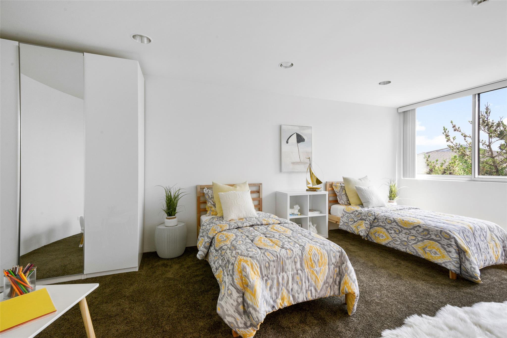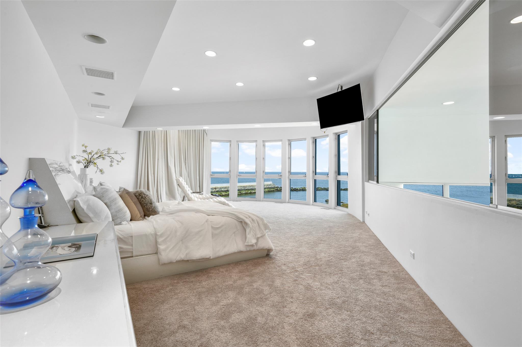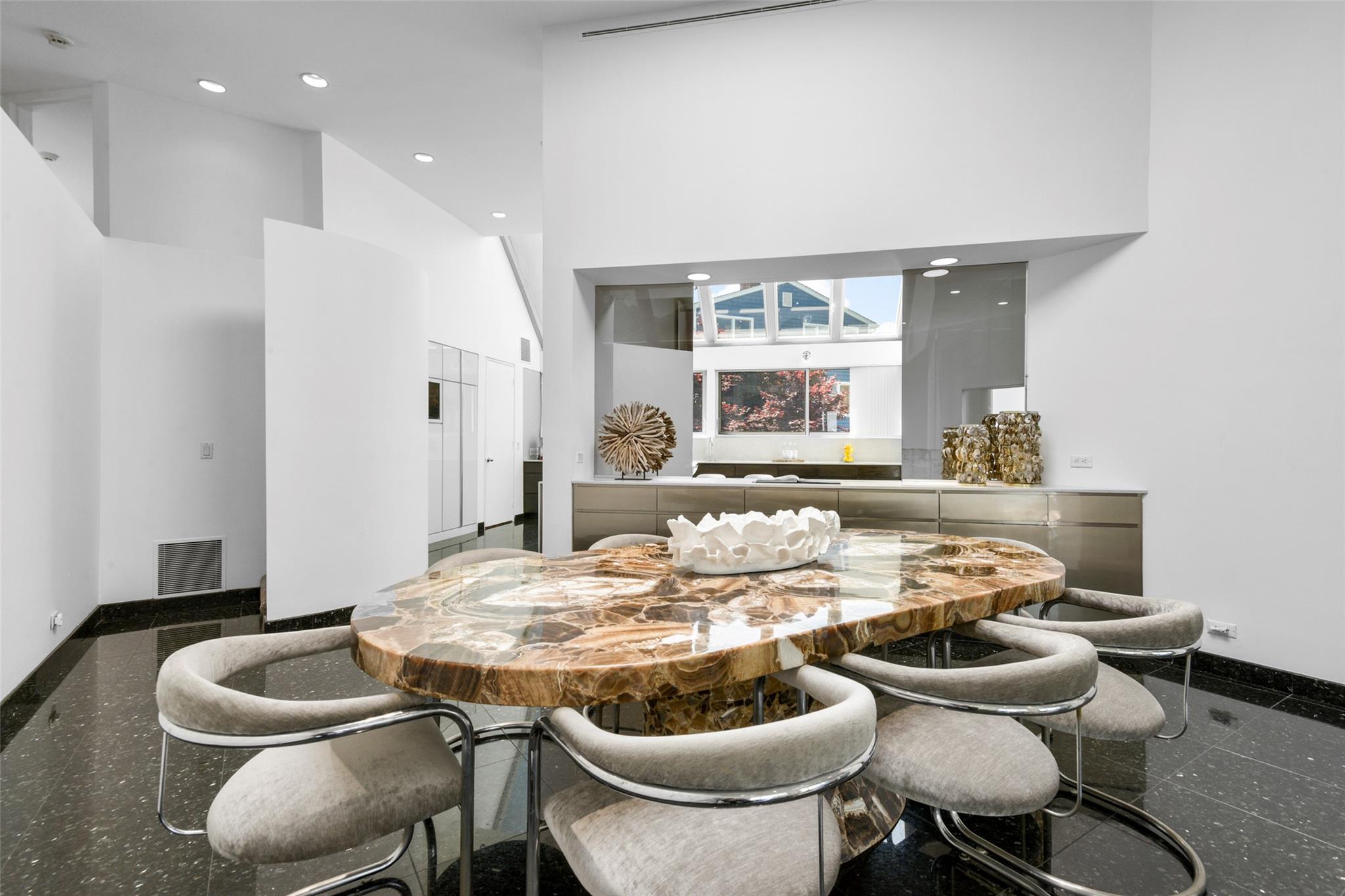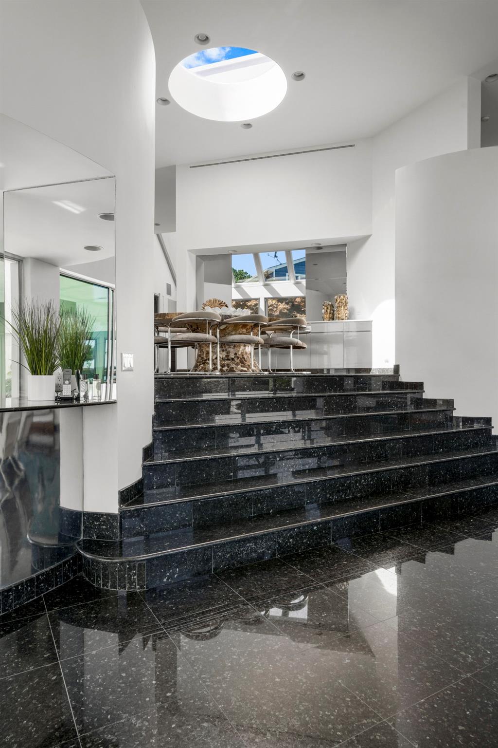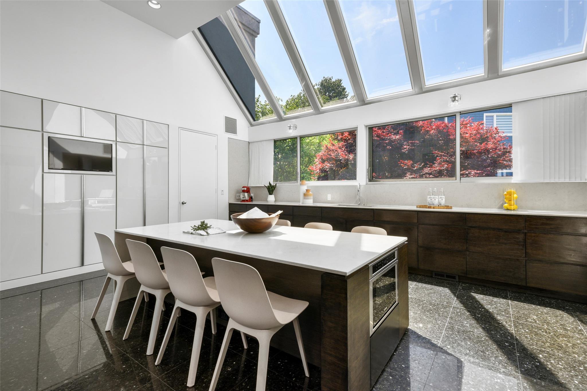 Waterfront Modernist Icon with Private Beach & Endless Views. Offered for the first time by its original owners, this architecturally significant waterfront home boasts over 118 feet of private shoreline and secluded sandy beach, with uninterrupted open ocean views across Long Island Sound. Designed in 1982 by renowned architect Myron Goldfinger and expanded in 1999, the residence is quietly tucked within an exclusive gated enclave of just 12 properties—only 35 minutes from midtown Manhattan by car. Featured in multiple design publications, this almost 6,000 sq ft modernist masterpiece showcases sculptural lines and curves, with soaring ceilings and skylights. Walls of glass blur the boundary between indoors and out, flooding the home with natural light and capturing breathtaking water views from nearly every room of this livable work-of-art home. Enter into the dramatic open living spaces, including a soaring living room with bar area, sunken conversation pit and fireplace, striking dining room, and designer eat-in kitchen. Host unforgettable gatherings year-round with the adjacent glass-clad indoor pool and jacuzzi room, or entertain on a grand scale from the expansive waterfront patio atop a steel beam and reinforced concrete constructed sea-wall. The design blends intimate and expansive public spaces - with sculptural curved stairways leading to four bedrooms thoughtfully spaced across two wings, and connected by a sensational family room on the third floor that feels suspended above the sea. Additional spaces include a home office, two powder rooms, au-pair suite off the kitchen, and two car garage. This one-of-a-kind property is located in an X-500 FEMA zone, so no flood insurance is required. Swim, kayak, or paddleboard from your private beach, forage among the rockpools, or take advantage of the additional association beach area and jetty with mooring rights. A rare chance to own an iconic modernist home with an unparalleled private beach and waterfront views in close proximity to NYC - where architecture, privacy, and nature meet in perfect harmony.