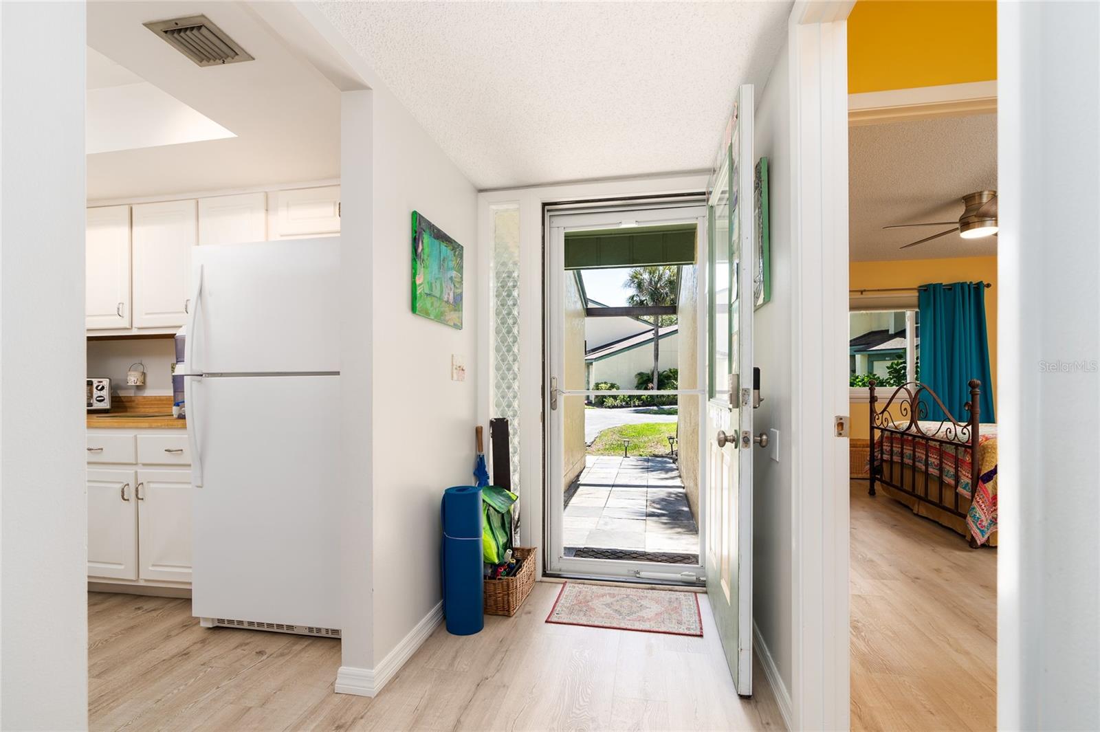 Welcome to effortless living in this beautifully updated, move-in ready condo nestled within the highly sought-after Pine Valley enclave of the private, gated Sugar Mill community. Designed for comfort and ease, this bright and airy single-level residence features an open floor plan that seamlessly flows to a serene poolside view—perfect for both everyday living and entertaining. This charming home offers one spacious bedroom, one full bathroom, and two convenient half baths. Recent upgrades ensure modern comfort, including a new AC system (2019), new roof (2023), and brand-new vinyl sliders and windows (2024) for enhanced energy efficiency and natural light. The tile flooring (2019) complements the freshly painted interior, creating a warm and inviting ambiance throughout. The well-equipped kitchen features a new refrigerator (2023) and a nearly new dishwasher, while the washer (2024) adds a practical touch to this turnkey residence. Thoughtfully designed living room features two single Murphy beds side by side, offering flexible sleeping arrangements without compromising space. An attached golf cart garage offers added convenience for enjoying the lifestyle this exclusive golf community affords. Just a short stroll to the Pine Valley community pool, residents also enjoy optional membership to access to the full suite of Sugar Mill Country Club amenities, including fine dining, fitness center, tennis, pickleball, and 27 holes of championship golf. Located within a secure, 24-hour guard-gated community, Sugar Mill offers the perfect blend of luxury, leisure, and peace of mind. Don’t miss this opportunity to live in one of the area's premier private golf communities—schedule your private tour today.