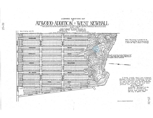 Breathtaking views can be yours from this 1.2-acre parcel located in the Atwood Addition of West Newhall, within the City of Santa Clarita. This exceptional future homesite, zoned UR1 (Urban Residential 1), adjoins the prestigious Belle Vista gated community. The hillside topography offers stunning valley vistas, ideal for a distinguished residence. Utilities are located nearby in the adjoining neighborhood, and though physical access remains undeveloped, it is mapped in the Record of Survey for the Atwood Addition. This parcel presents a fantastic opportunity for skilled architects, designers, civil engineers, or custom homebuilders to unlock its full potential and create a unique and remarkable homesite. Prospective buyers are encouraged to conduct due diligence with the City of Santa Clarita regarding all aspects of developing the access and the building site, particularly considering the presence of oak trees. *Buyer to make their own independent investigations regarding Zoning and General Plan Designations, Environmental and Hazard Zones, Access and Development costs, Availability and Costs of Utilities.