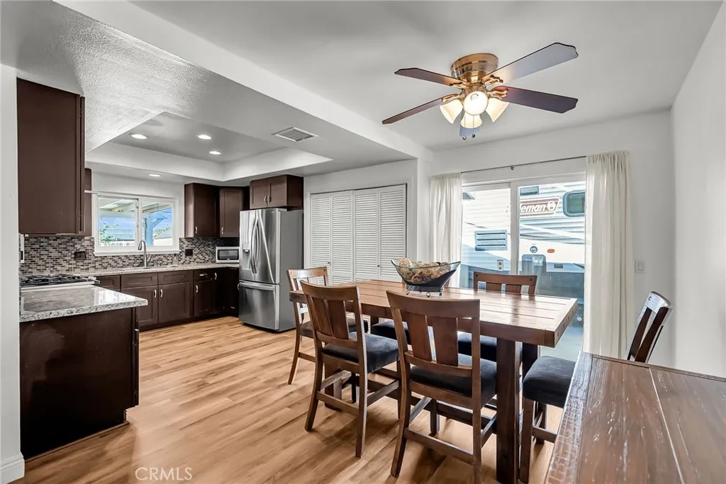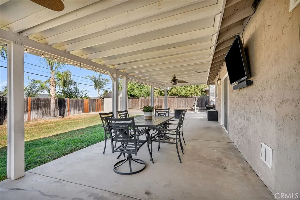 Discover the charm and elevated comfort where thoughtful updates meet scenic living. This single-story home sits above neighboring properties, offering a rare sense of privacy and a picturesque view from the family room, kitchen window, and backyard. Step inside to a warm, vaulted wood-beamed ceiling in the family room, anchored by a brick fireplace and direct access to a covered patio with dual ceiling fans, perfect for relaxing or entertaining. The formal dining or living room offers flexible space to suit your lifestyle, while the kitchen features granite counters, a custom-fit oven, and a side slider leading to the gated, paved RV area making loading and unloading a breeze. Recent upgrades include stylish new flooring and a remodeled guest bathroom enhancing the homes fresh and inviting feel. The primary bedroom also opens to the backyard through its own slider, creating a seamless indoor-outdoor connection. Additional highlights include plantation shutters, a laundry closet, outdoor electrical outlets for lighting and TVs, a storage shed, and a 2-car attached garage. With no HOA, low property taxes, and minimal special assessments, this home offers exceptional value. Leave the car behind and save gas! This home is ideally situated near a local park, Rileys Gym, Highland Elementary School, and favorite dining destinations, not to mention gas stations, and community churches conveniently nearby. Plus, with quick access to the freeway, commuting is a breeze. This is a rare opportunity to own a well-maintained home in the heart of Norco with character, comfort, and conveni