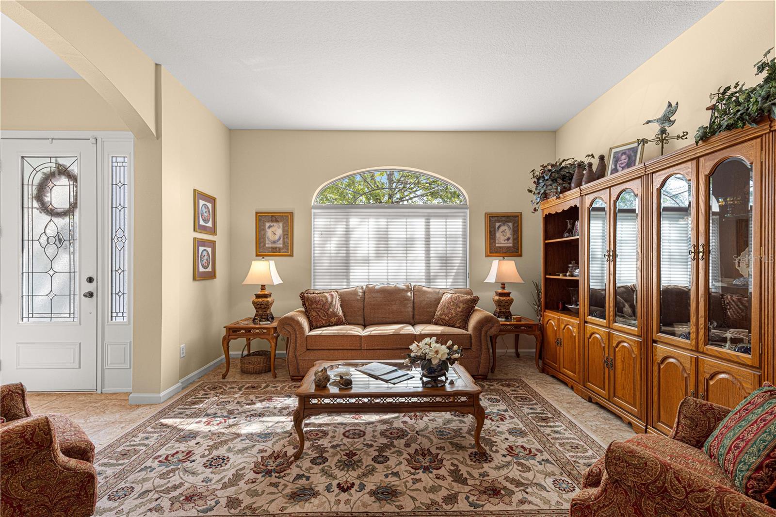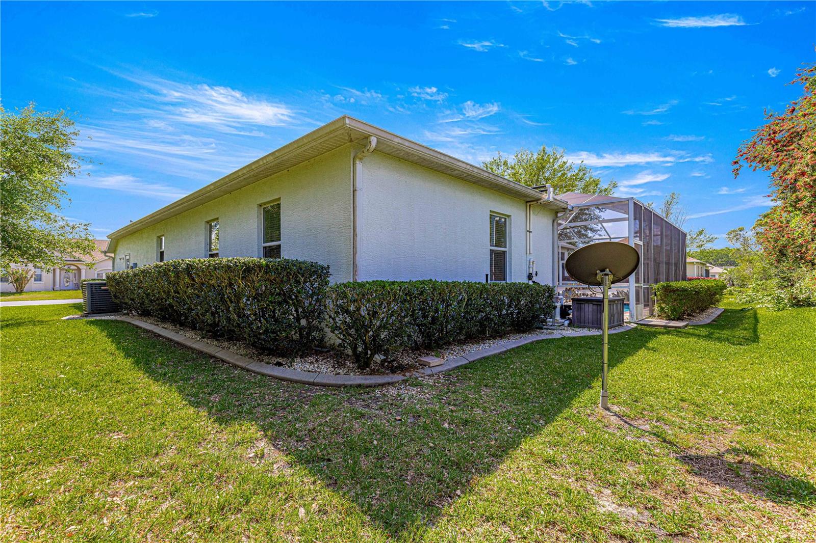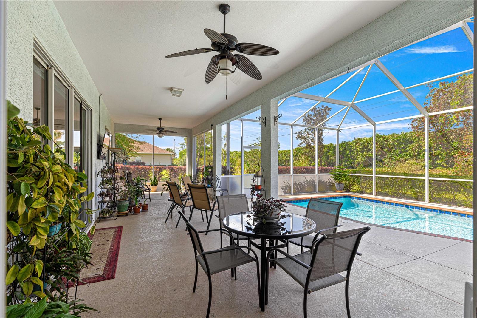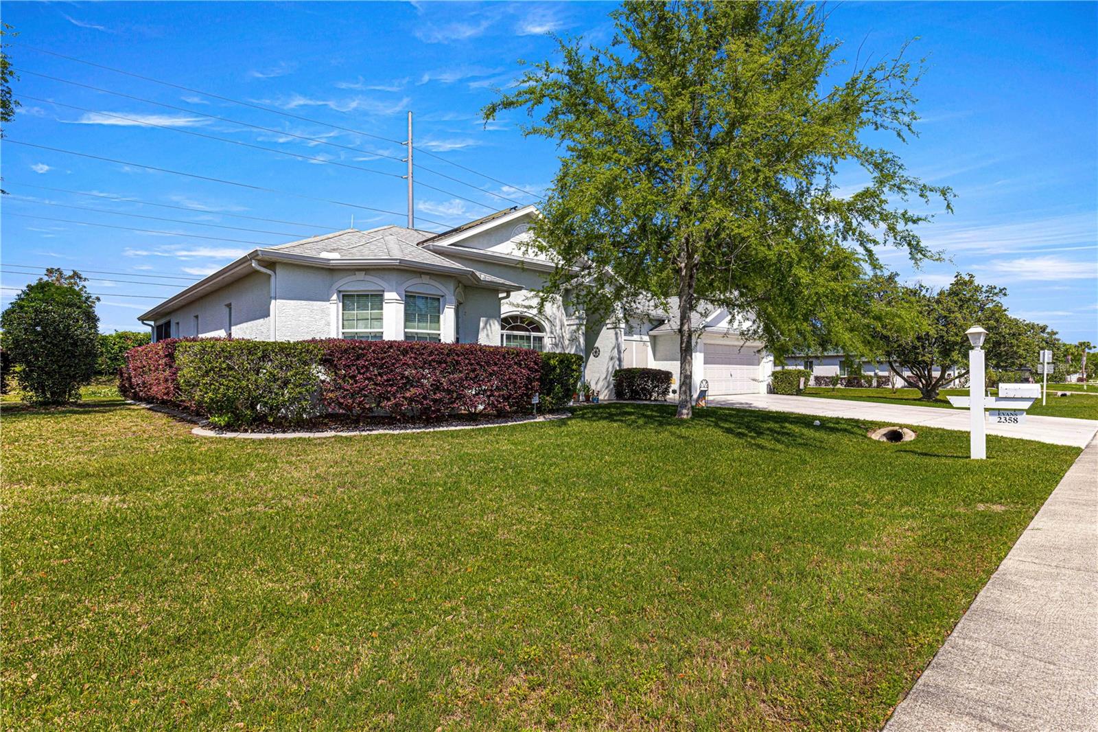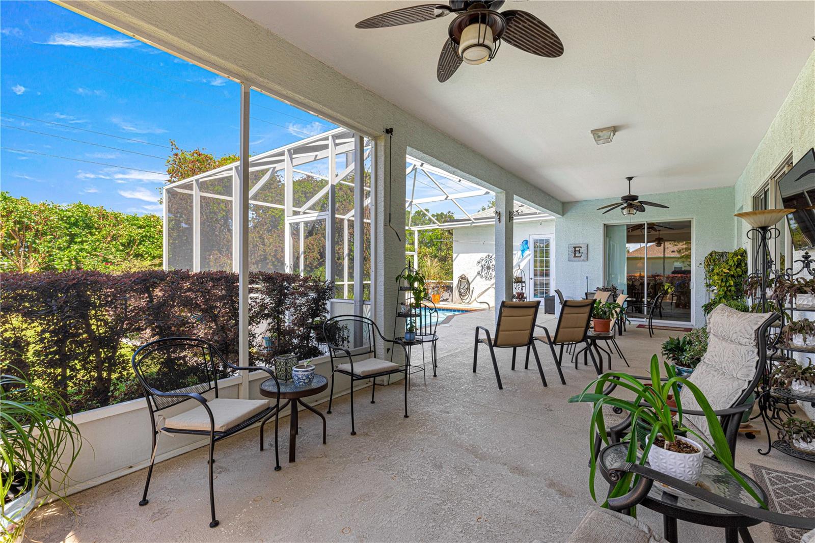 DON'T MISS THIS ELEGANT GOLF COMMUNITY GEM! Discover luxury living in this spacious 2,350 square foot residence nestled in a popular gated golf community, complete with full time guard and upscale restaurant on site, and situated on a beautiful double lot, .49 acres! Step inside to find the stylish formal living and dining rooms, complemented by a family room that flows seamlessly into the kitchen - perfect for entertaining. This meticulously maintained home boasts a split bedroom floor plan offering privacy and comfort, while you will also enjoy beautiful hard flooring throughout - no carpet anywhere! The outdoor living also shines with a screened pool and large enclosed lanai, ideal for year-round enjoyment, while the irrigation system keeps landscaping lush with minimal effort. Recently refreshed with new interior paint throughout, this turnkey property includes an inside laundry room and generous garage space - a full 2-car garage plus a dedicated golf cart bay.