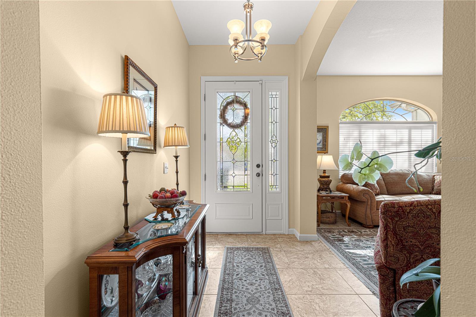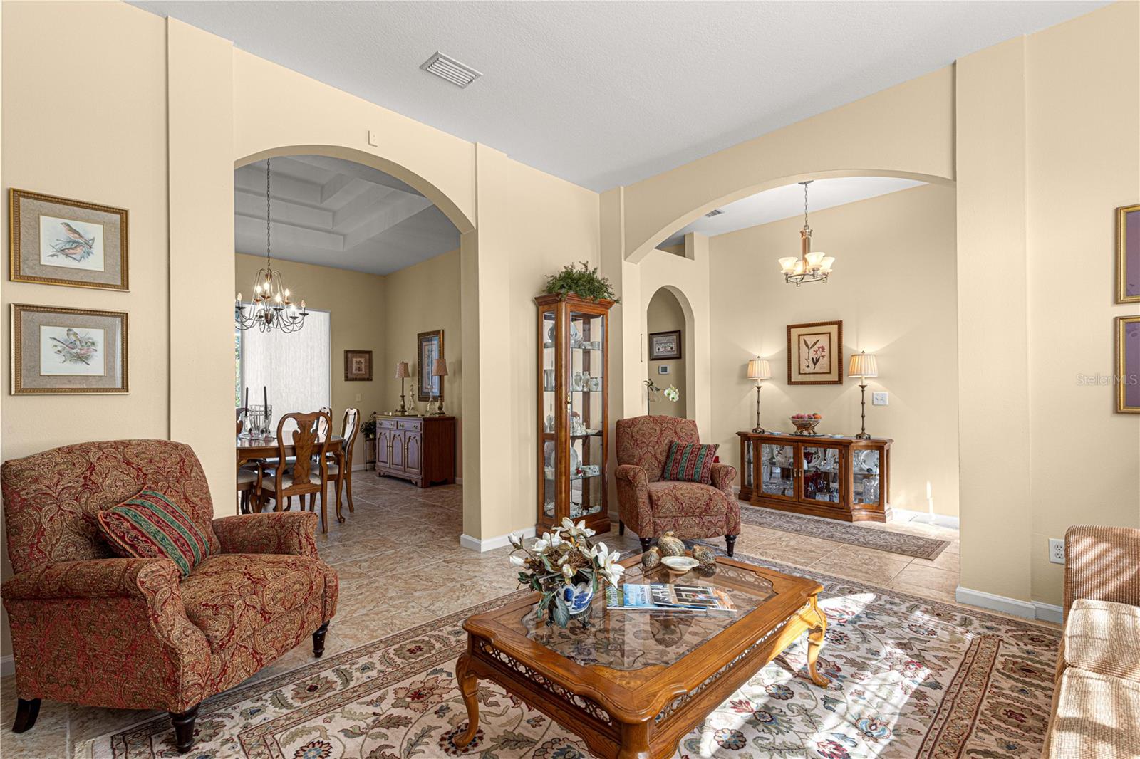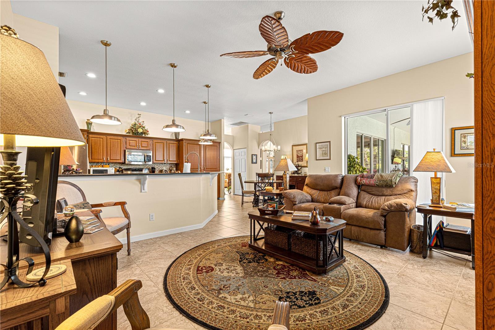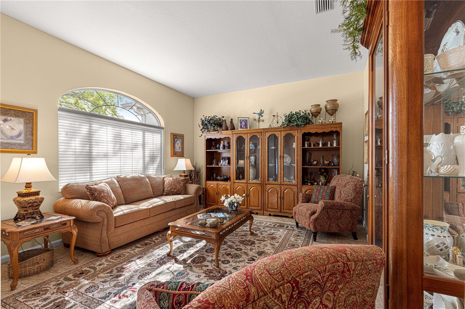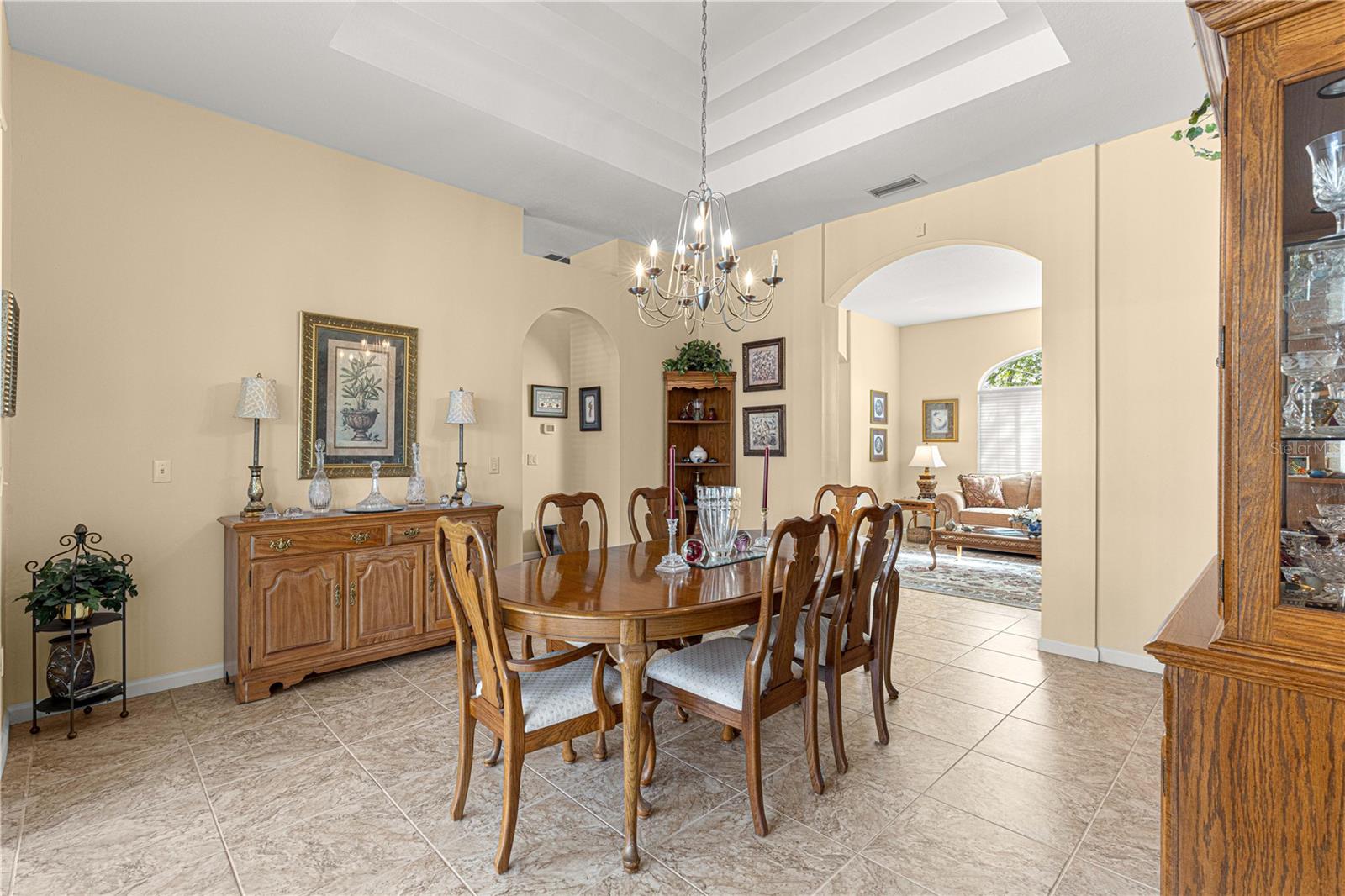 DON'T MISS THIS ELEGANT GOLF COMMUNITY GEM! Discover luxury living in this spacious 2,350 square foot residence nestled in a popular gated golf community, complete with full time guard and upscale restaurant on site, and situated on a beautiful double lot, .49 acres! Step inside to find the stylish formal living and dining rooms, complemented by a family room that flows seamlessly into the kitchen - perfect for entertaining. This meticulously maintained home boasts a split bedroom floor plan offering privacy and comfort, while you will also enjoy beautiful hard flooring throughout - no carpet anywhere! The outdoor living also shines with a screened pool and large enclosed lanai, ideal for year-round enjoyment, while the irrigation system keeps landscaping lush with minimal effort. Recently refreshed with new interior paint throughout, this turnkey property includes an inside laundry room and generous garage space - a full 2-car garage plus a dedicated golf cart bay.
